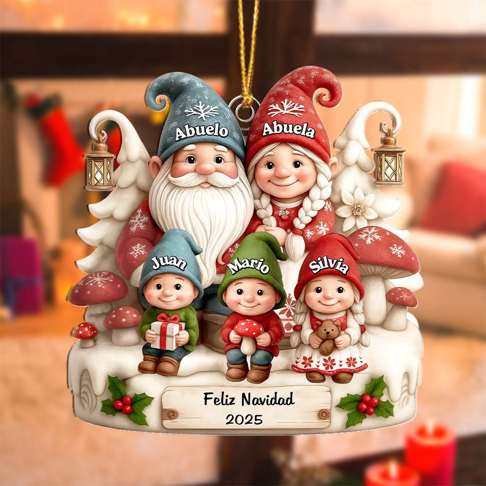 Navidad-Ornamentos Navideños de Acrílico Familia en Puerta con Perro 5 Nombres Personalizados con 2 Textos