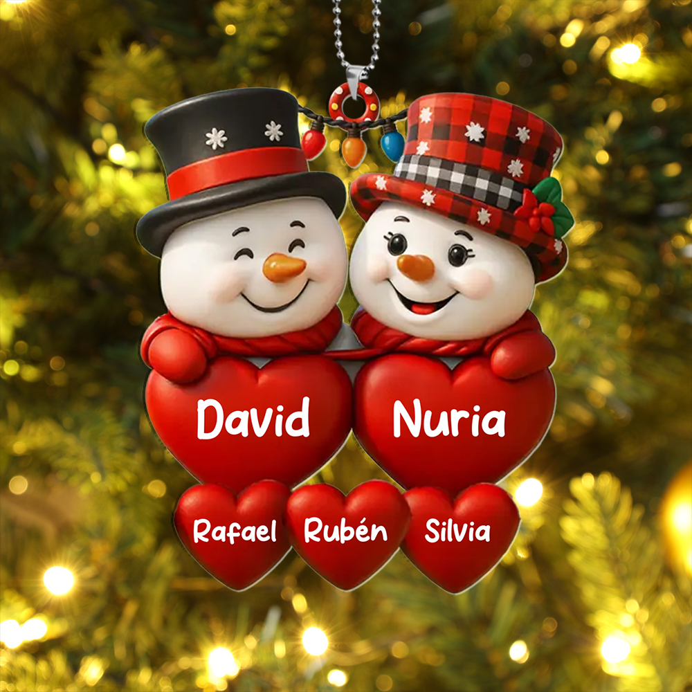 Adorno para árbol de Navidad personalizado de pareja de muñecos de nieve con corazón