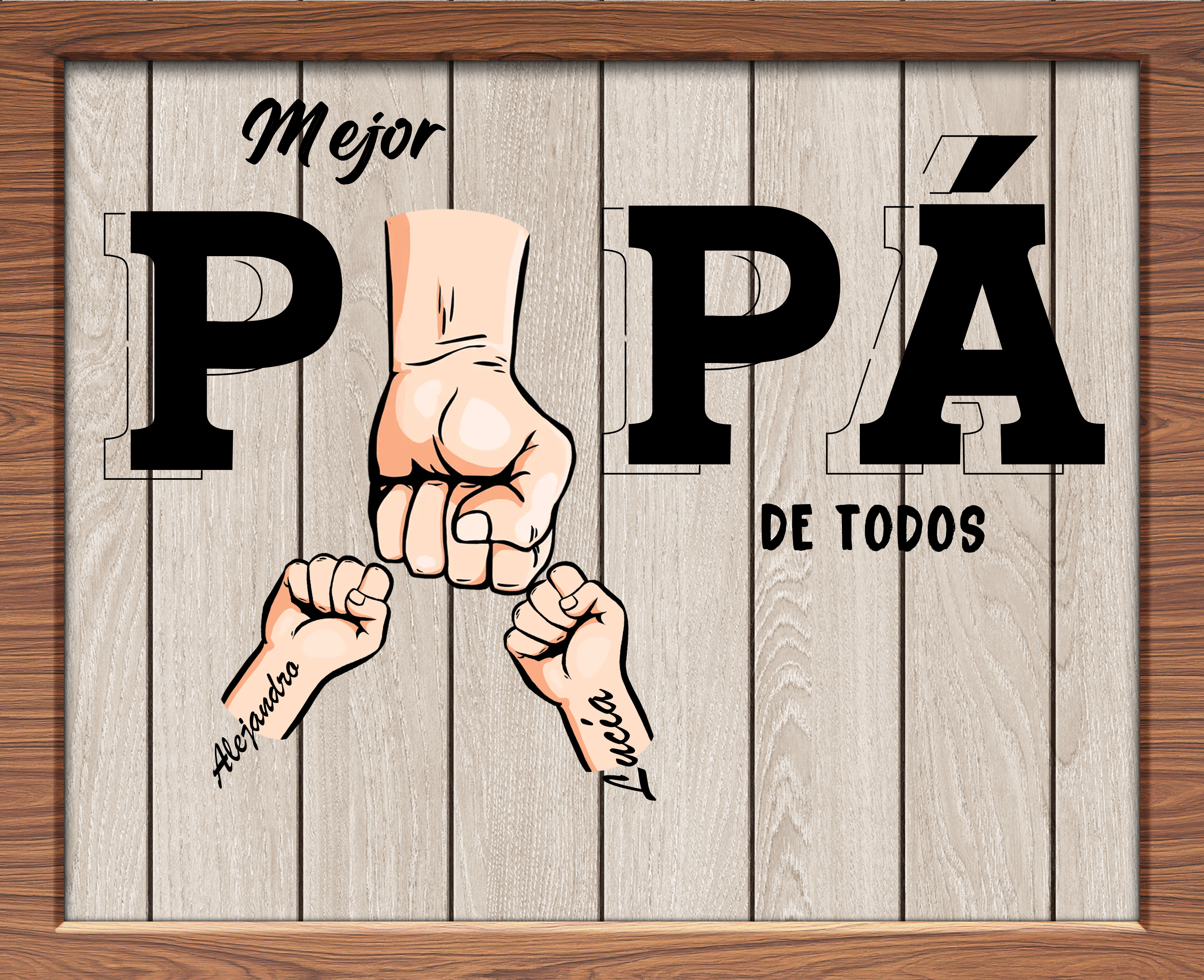 1-6 nombres y puños -Placa de madera personalizada "El mejor papá de todos" - Regalo para el Día del Padre | Jessemade
