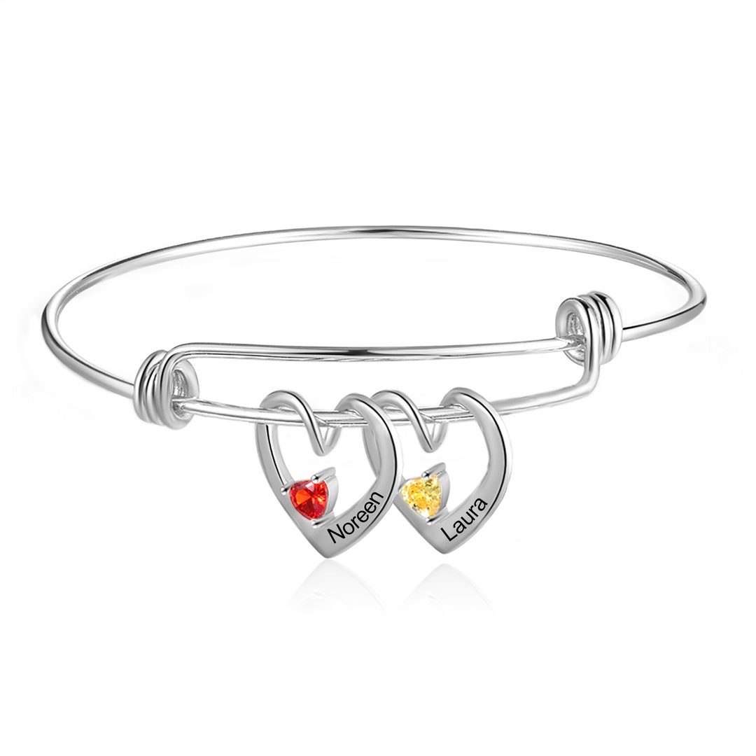Brazalete pulsera para mujer con corazón 2 nombres personalizados con 2 piedras de nacimiento