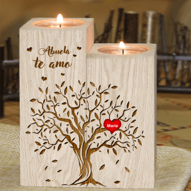 El portavelas de madera personalizado es un regalo auténtico, natural y profundamente simbólico. La madera evoca el hogar, el calor y la intimidad, y el grabado añade un toque de amor.