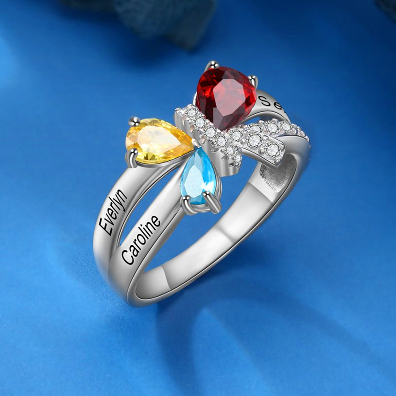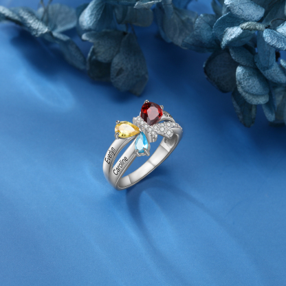 Anillo de mariposa de plata 925 con 3 nombres personalizados y 3 piedras de nacimiento