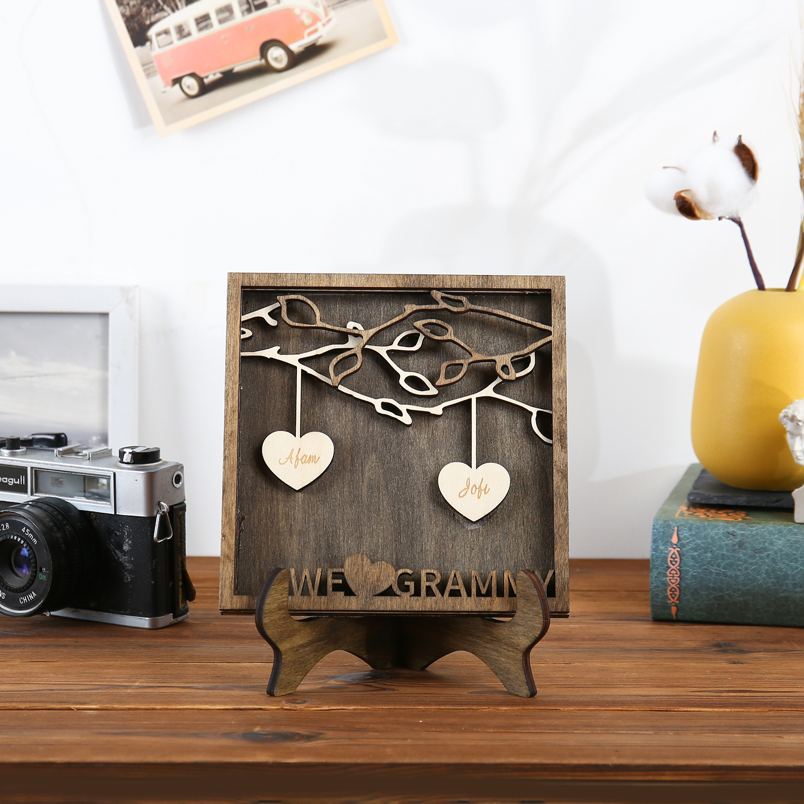 A la familia-Marco de madera 2 nombres personalizados con 1 texto Árbol de la Vida Árbol Genealógico