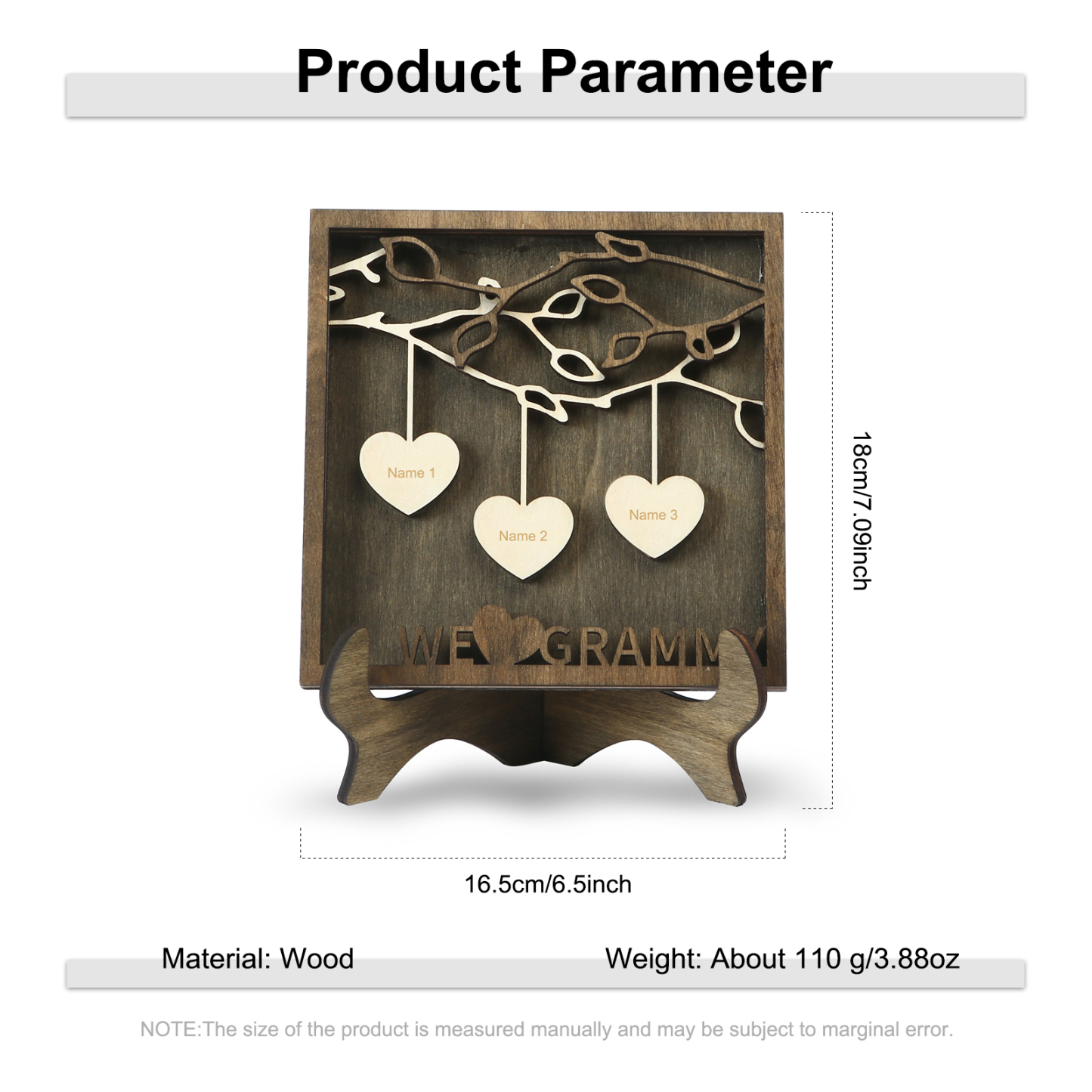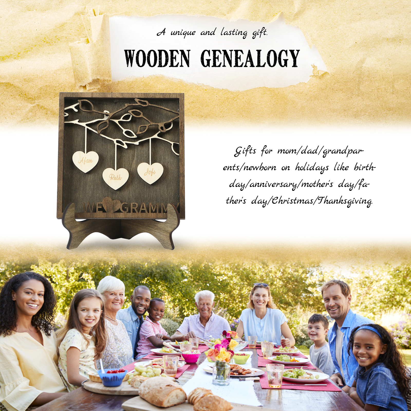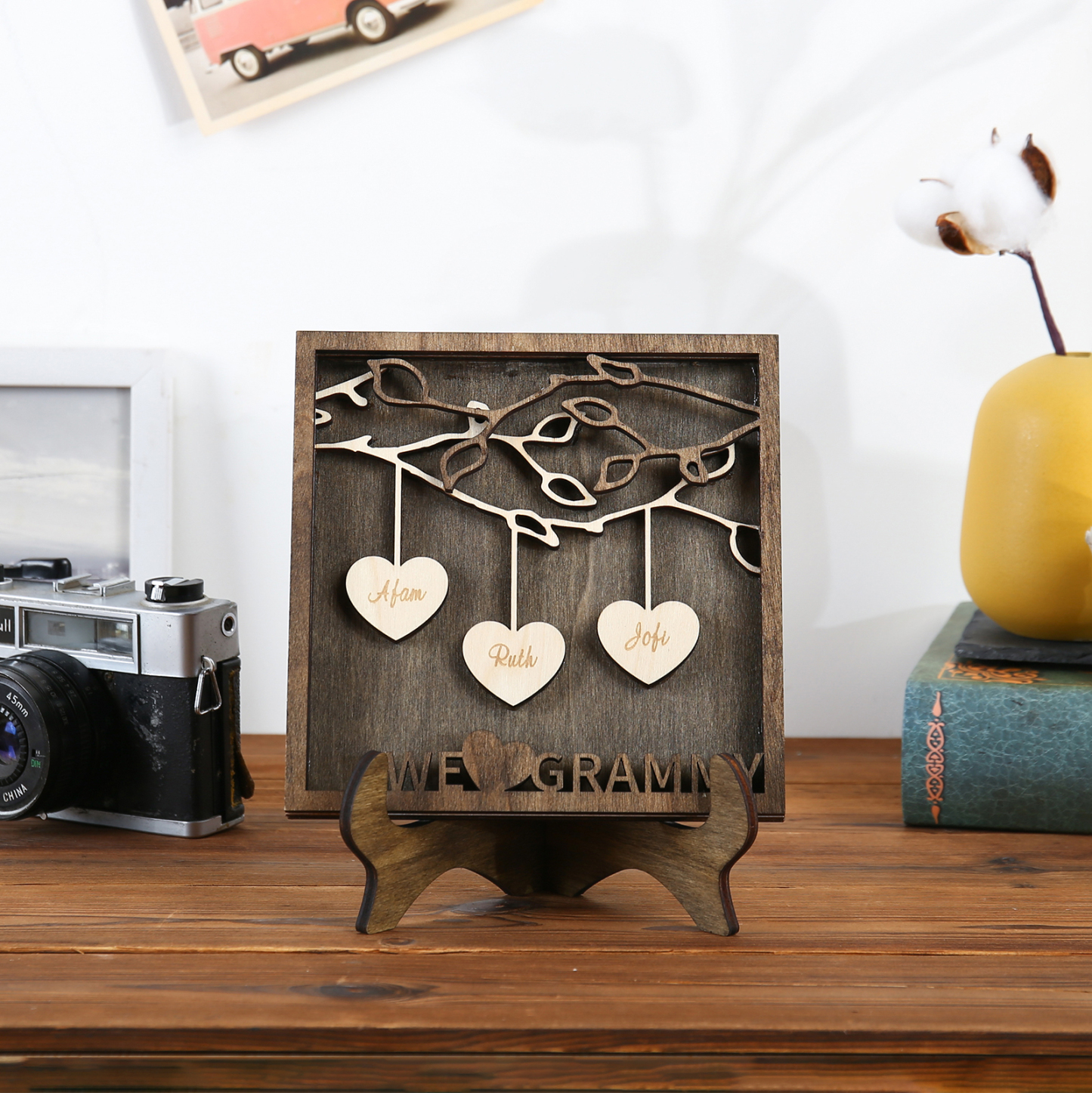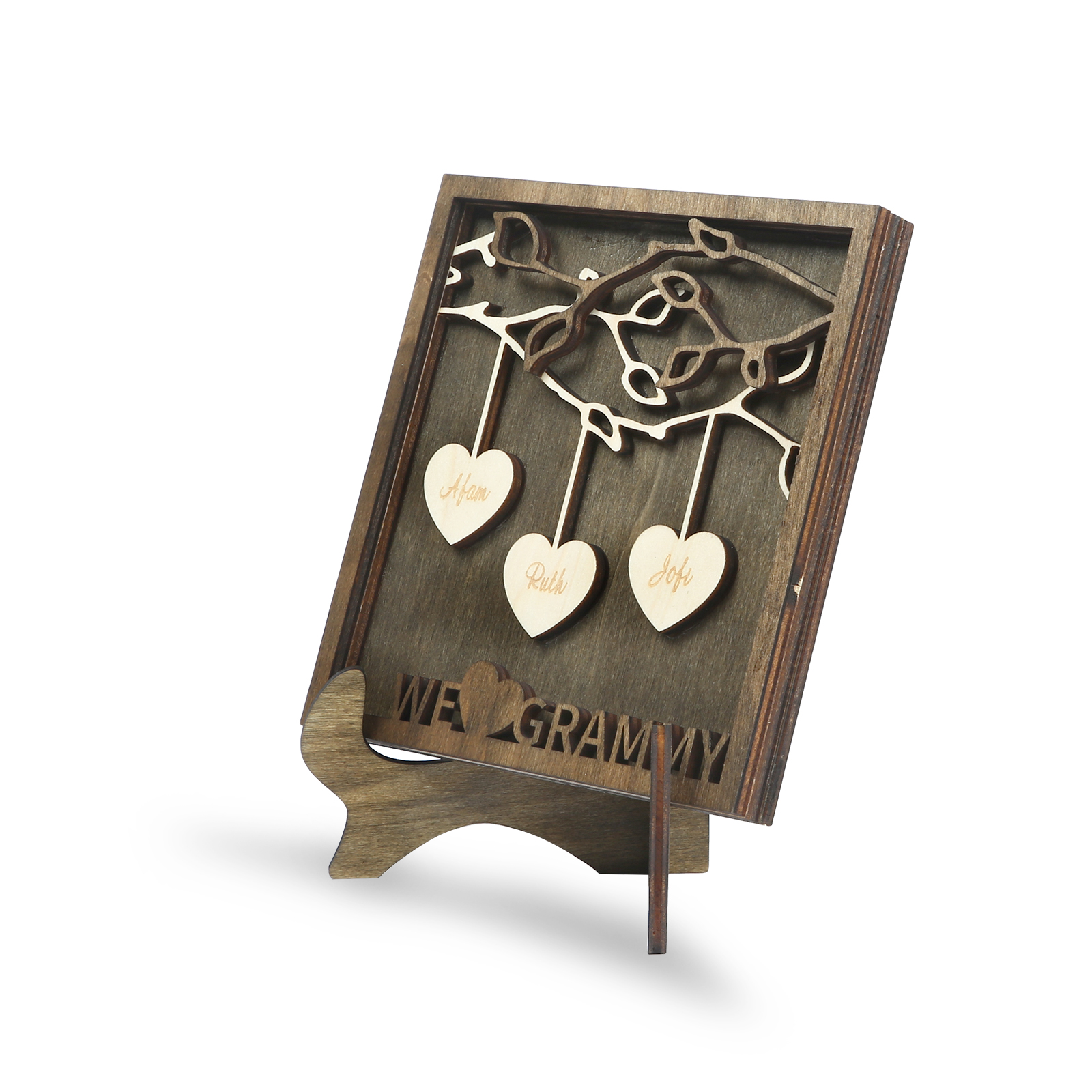 A la familia-Marco de madera 3 nombres personalizados con 1 texto Árbol de la Vida