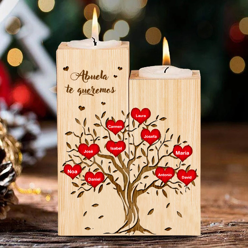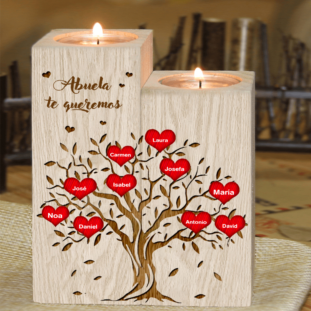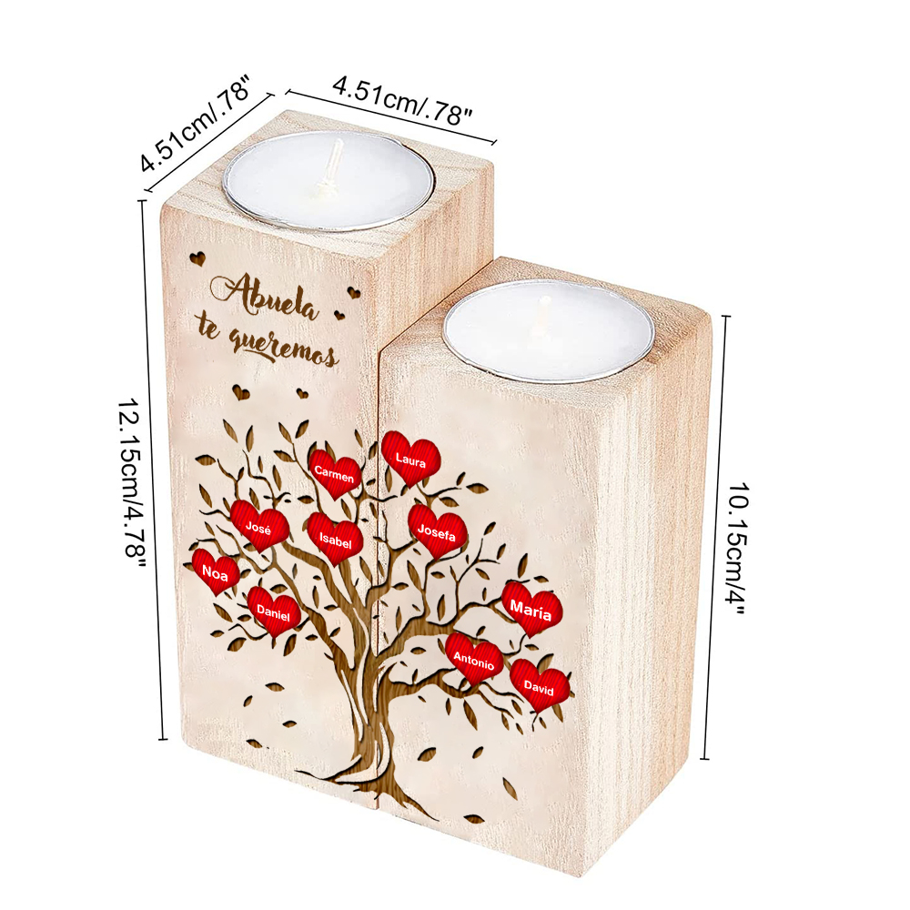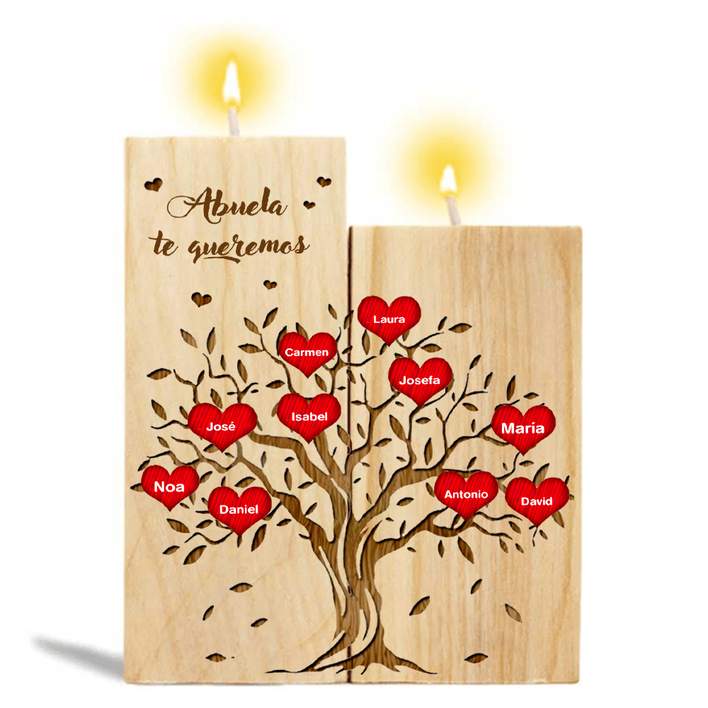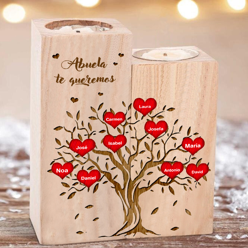 A mi abuela - Candelero de madera sin vela Árbol de la Vida Árbol Genealógico 10 nombres personalizados