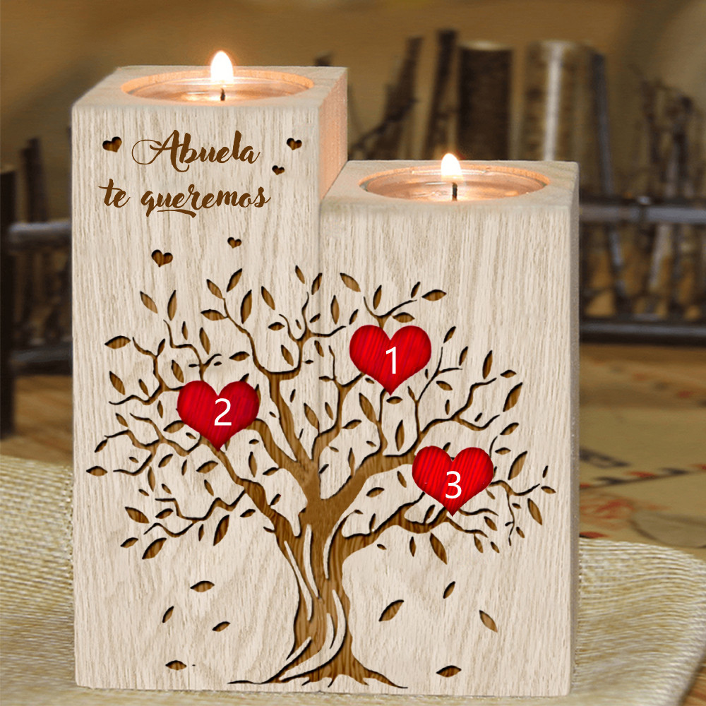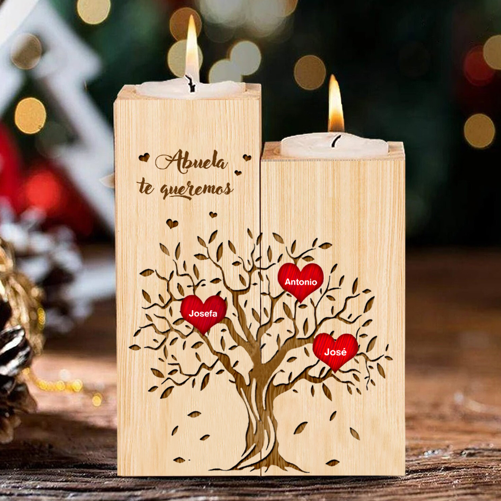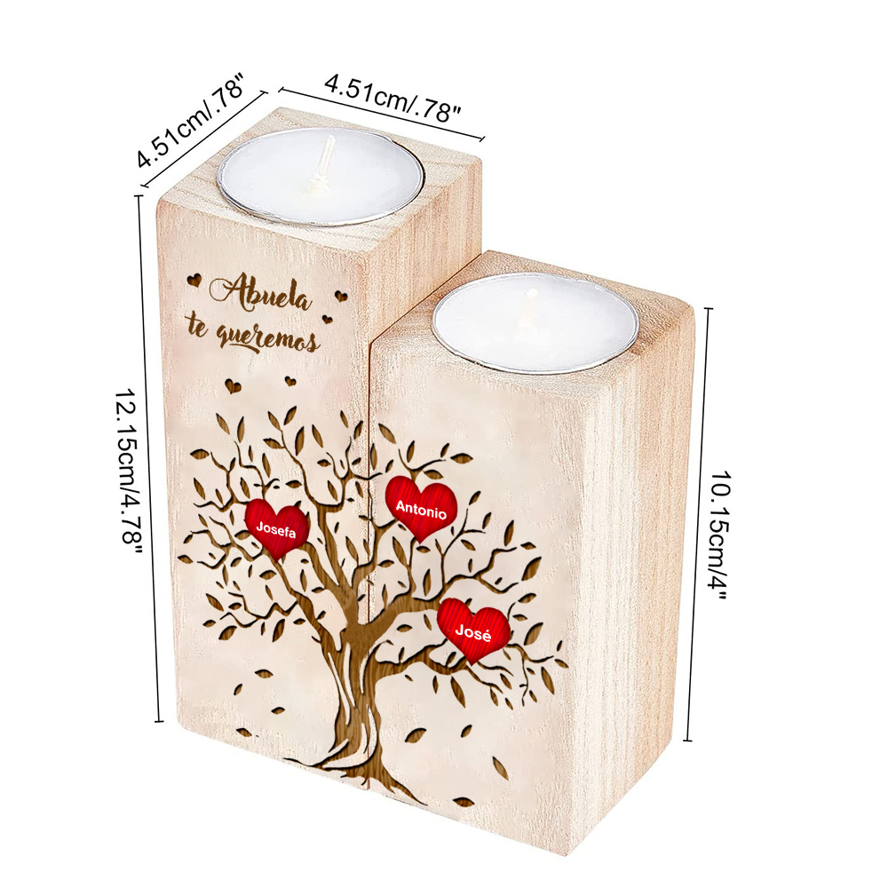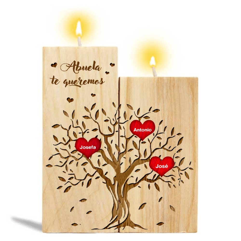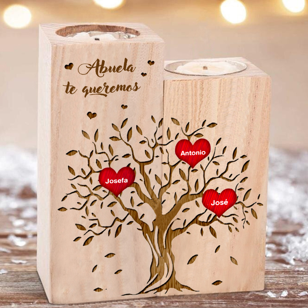 A mi abuela - Candelero de madera sin vela Árbol de la Vida Árbol Genealógico 3 nombres personalizados