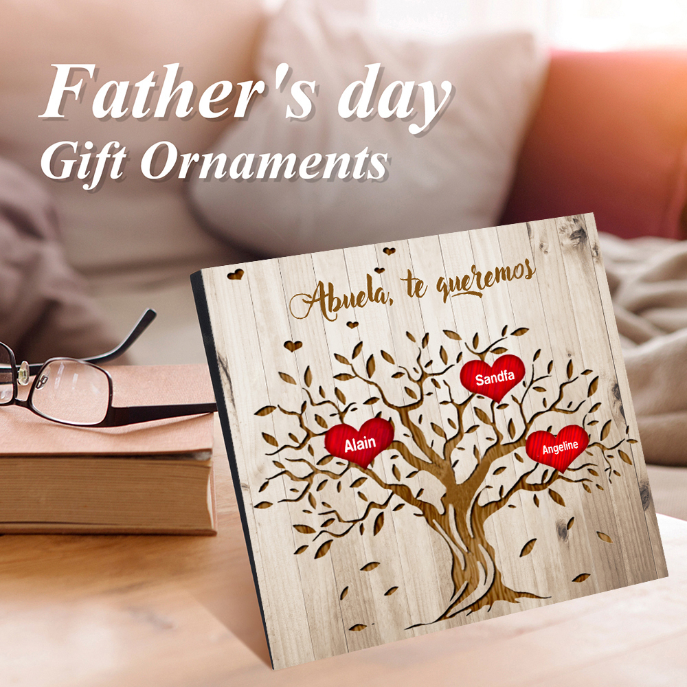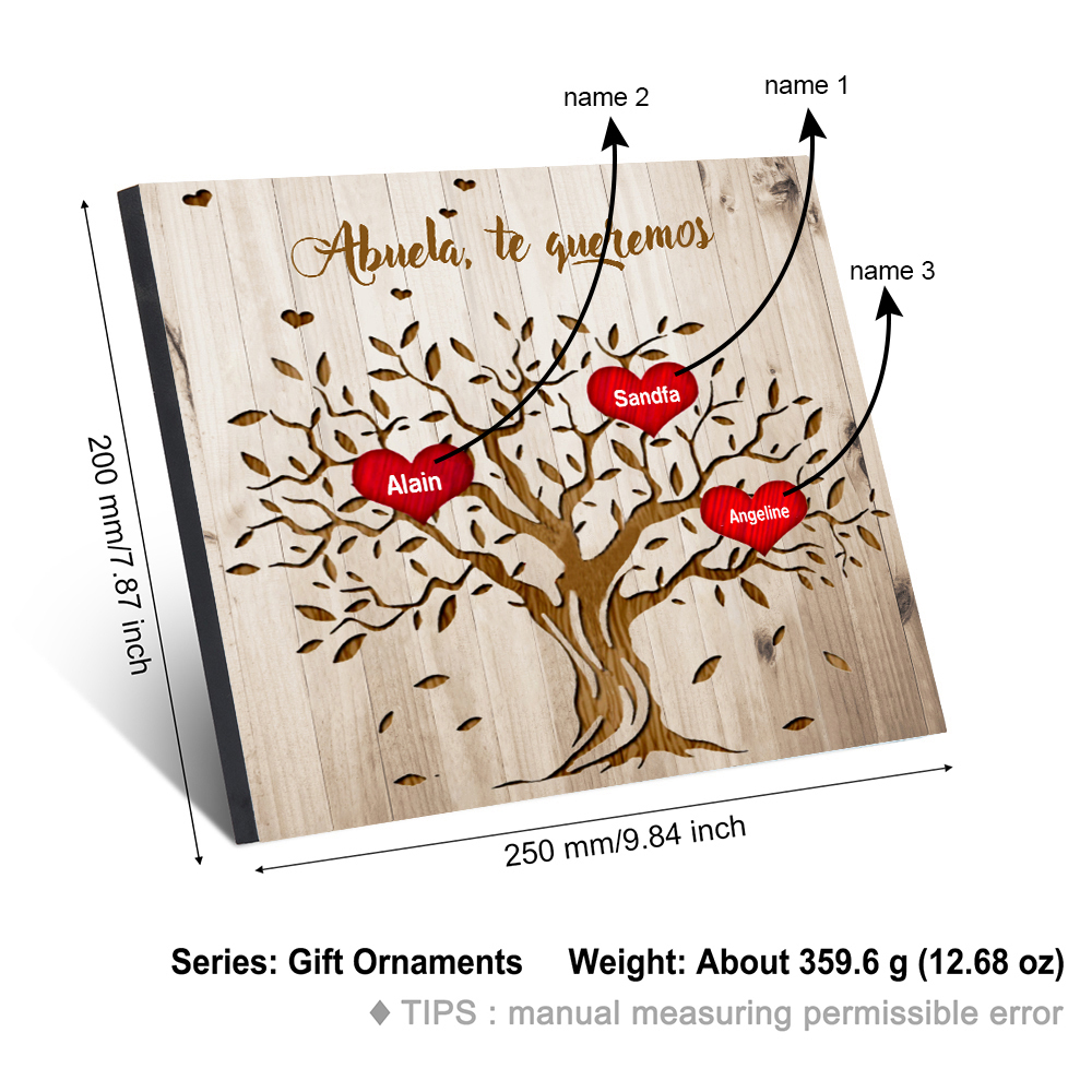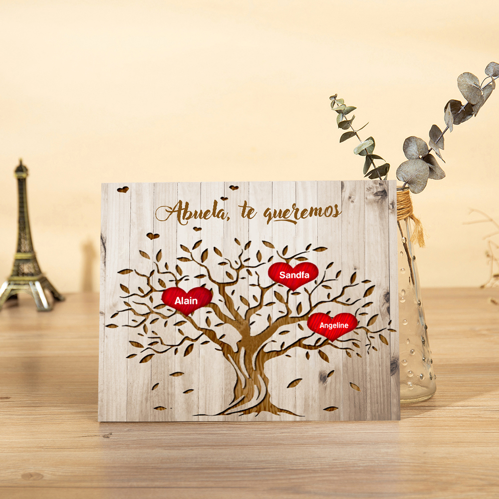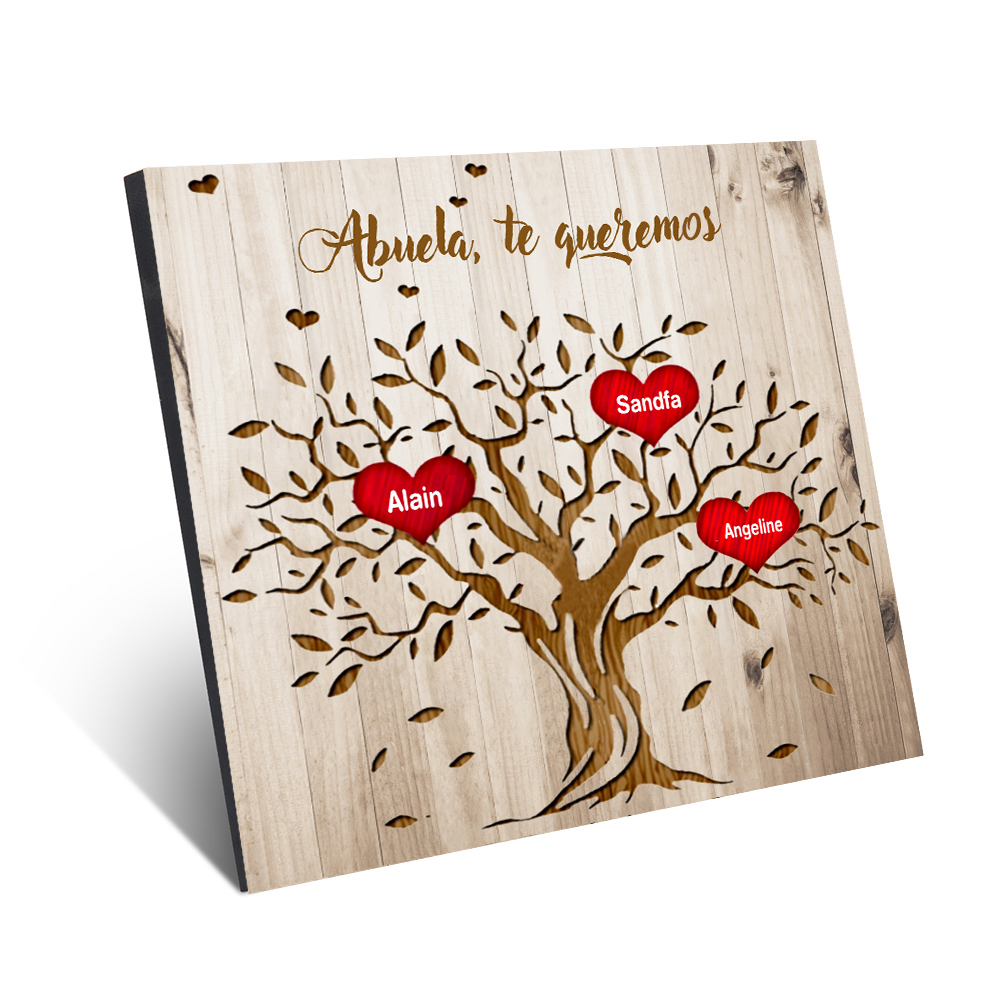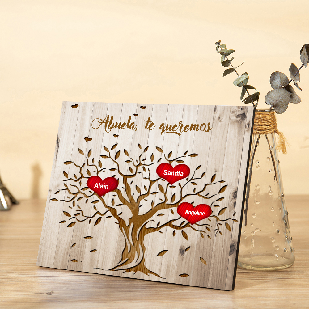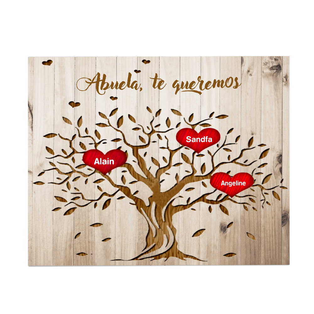 A mi abuela - Lámina marco de madera Árbol de la Vida Árbol Genealógico 3 nombres personalizados