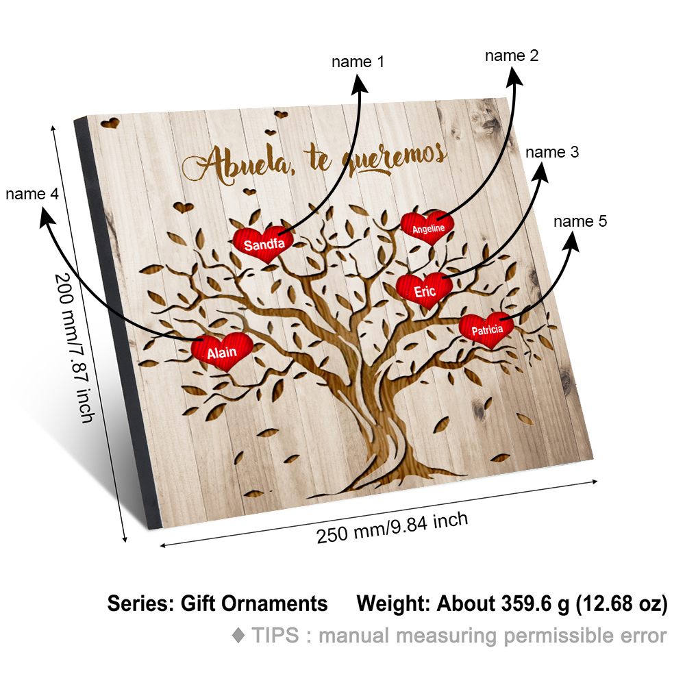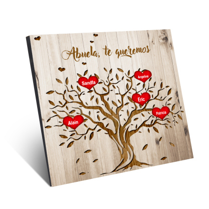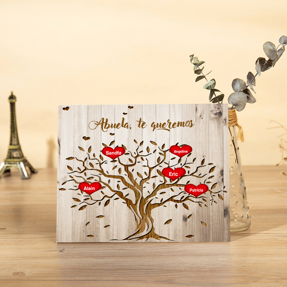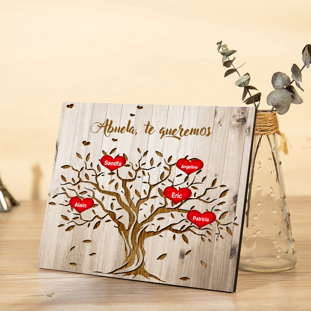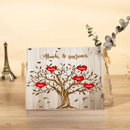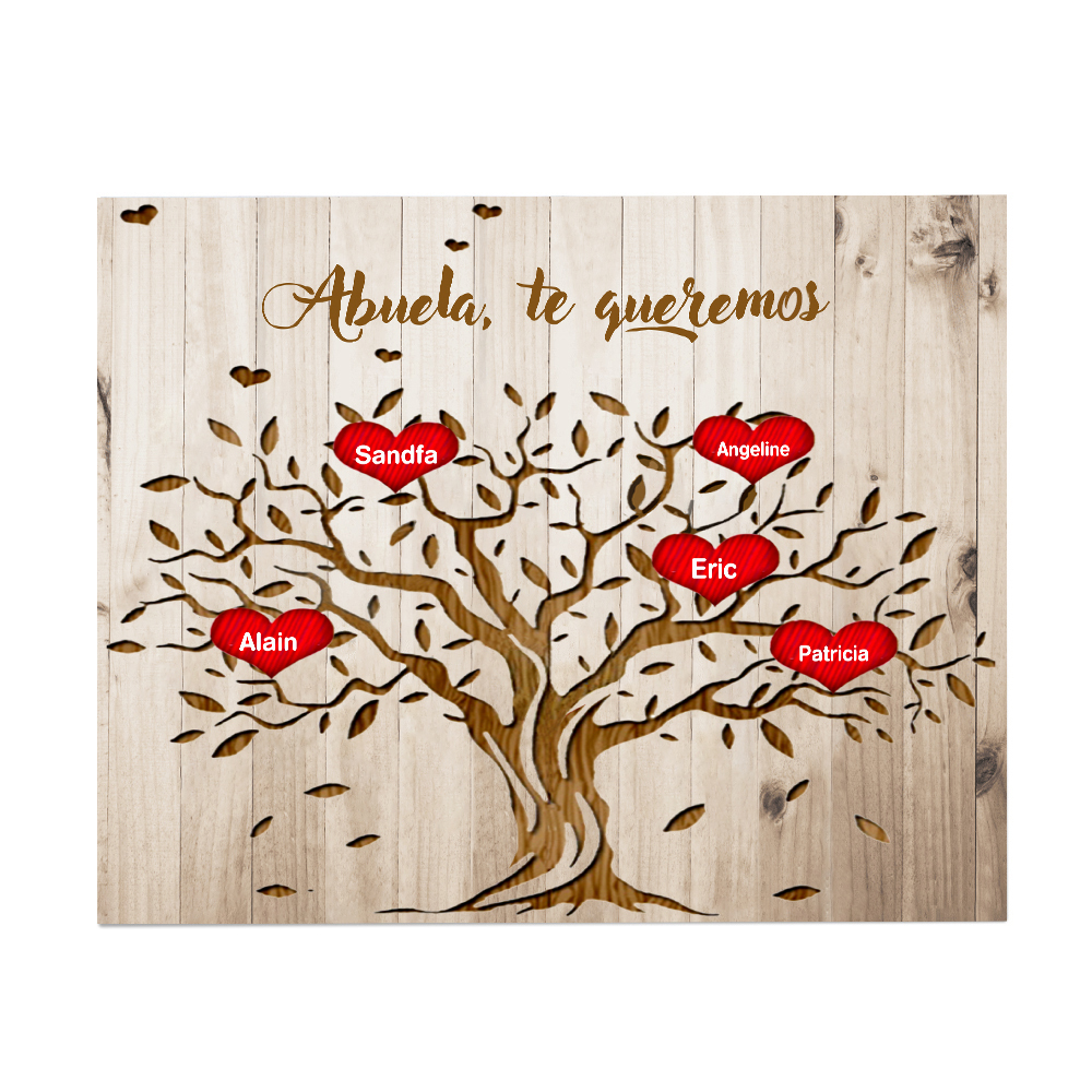 A mi abuela - Lámina marco de madera Árbol de la Vida Árbol Genealógico 5 nombres personalizados