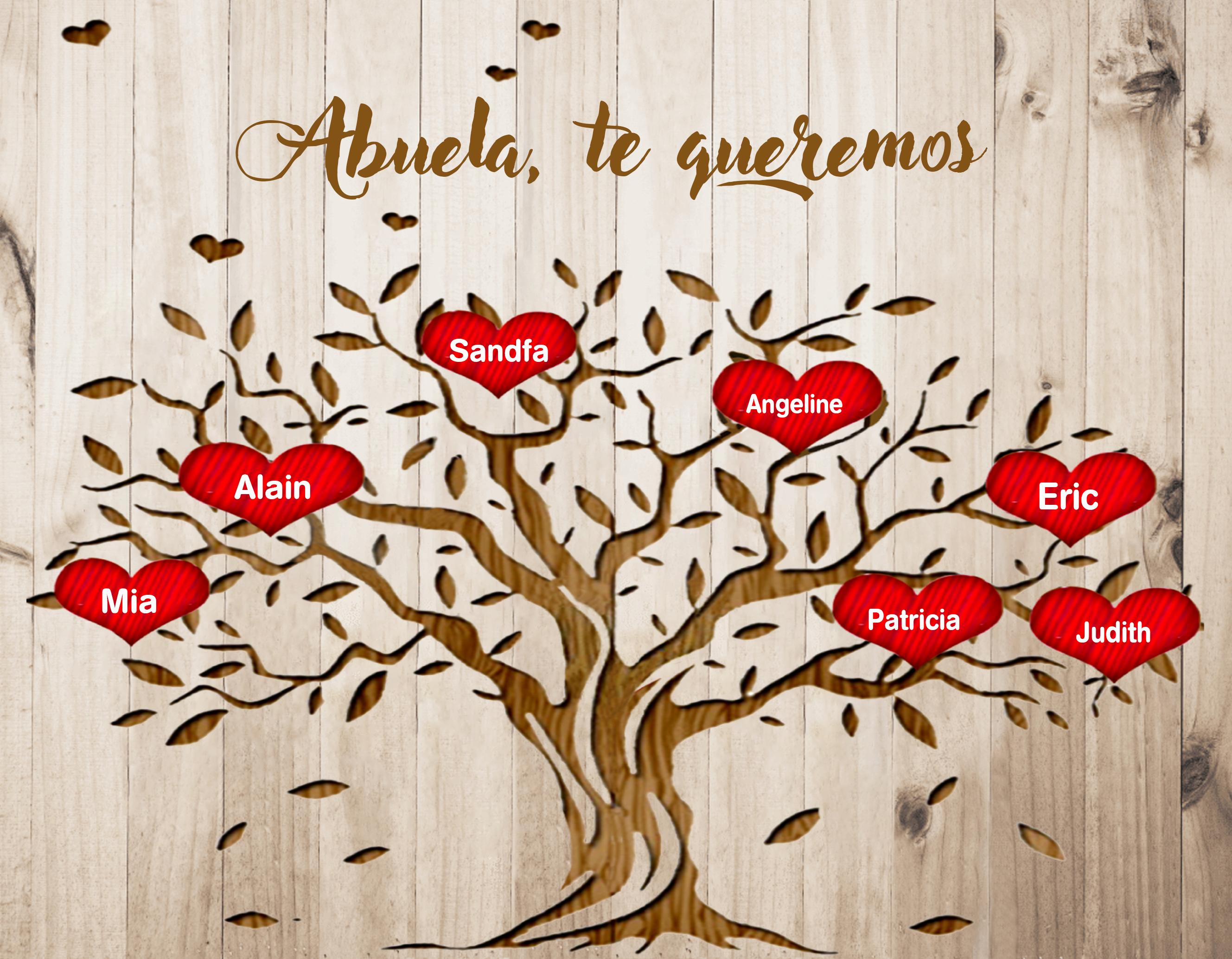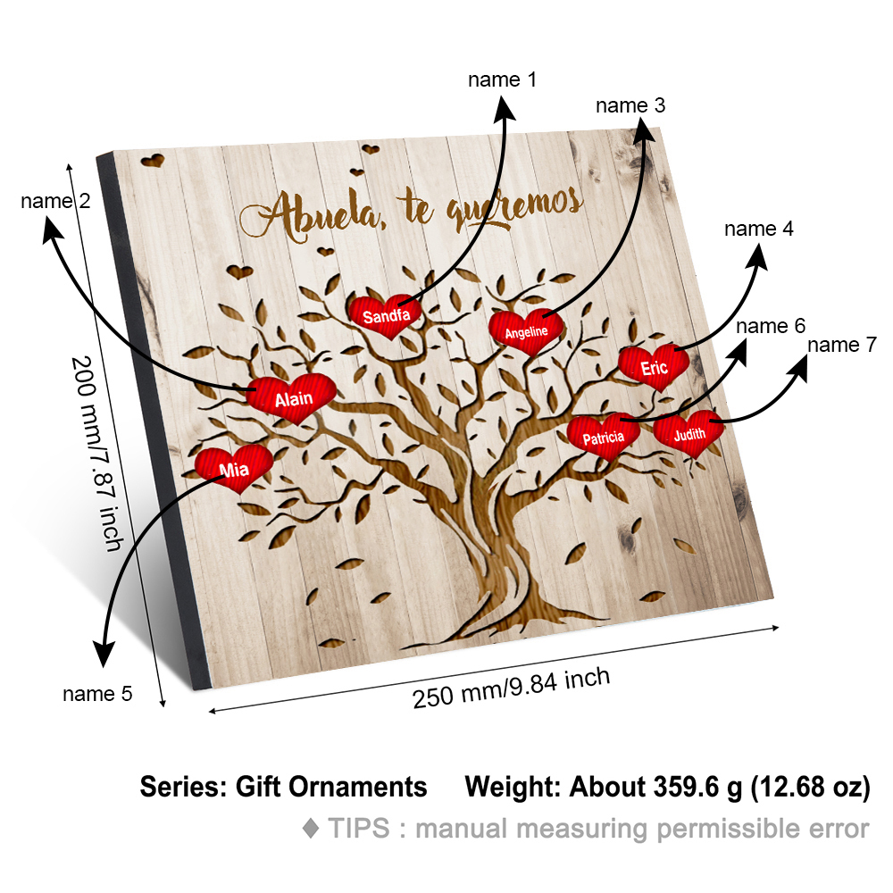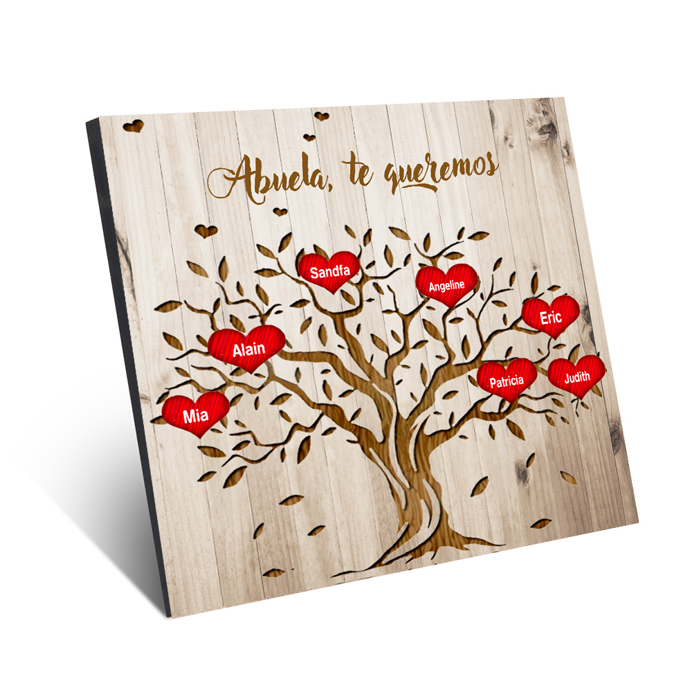 A mi abuela - Lámina marco de madera Árbol de la Vida Árbol Genealógico 7 nombres personalizados