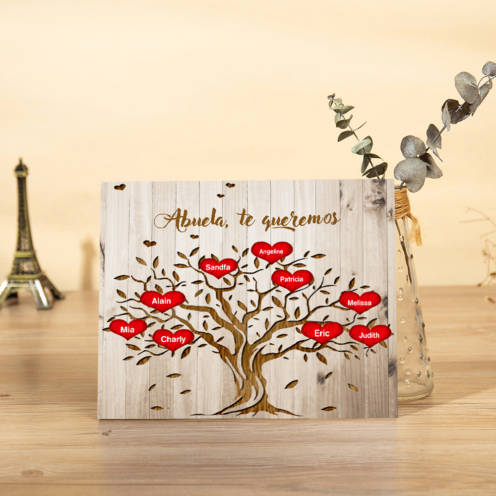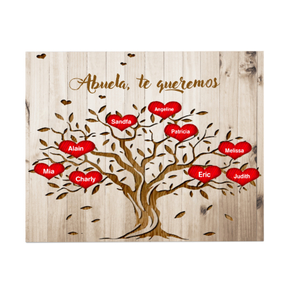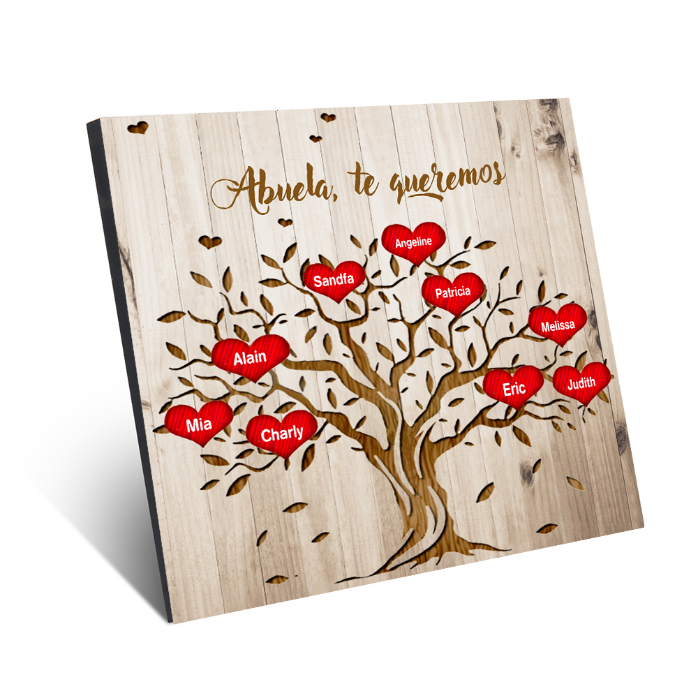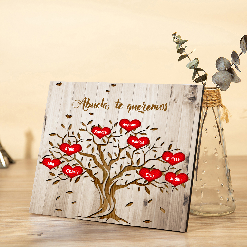 A mi abuela - Lámina marco de madera Árbol de la Vida Árbol Genealógico 9 nombres personalizados