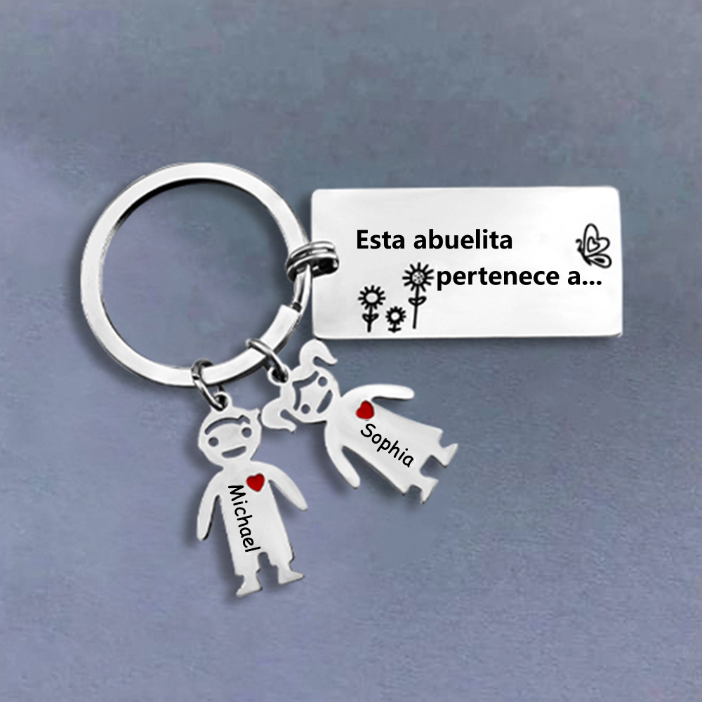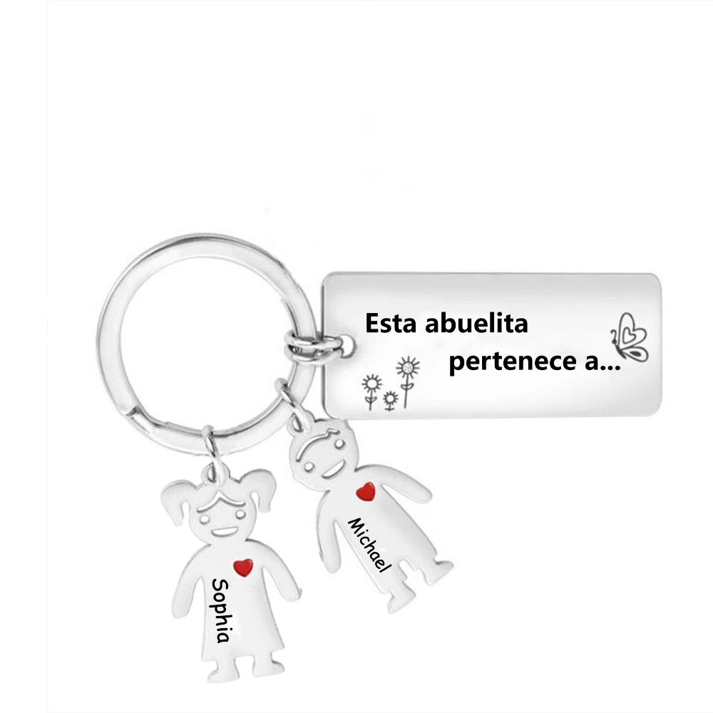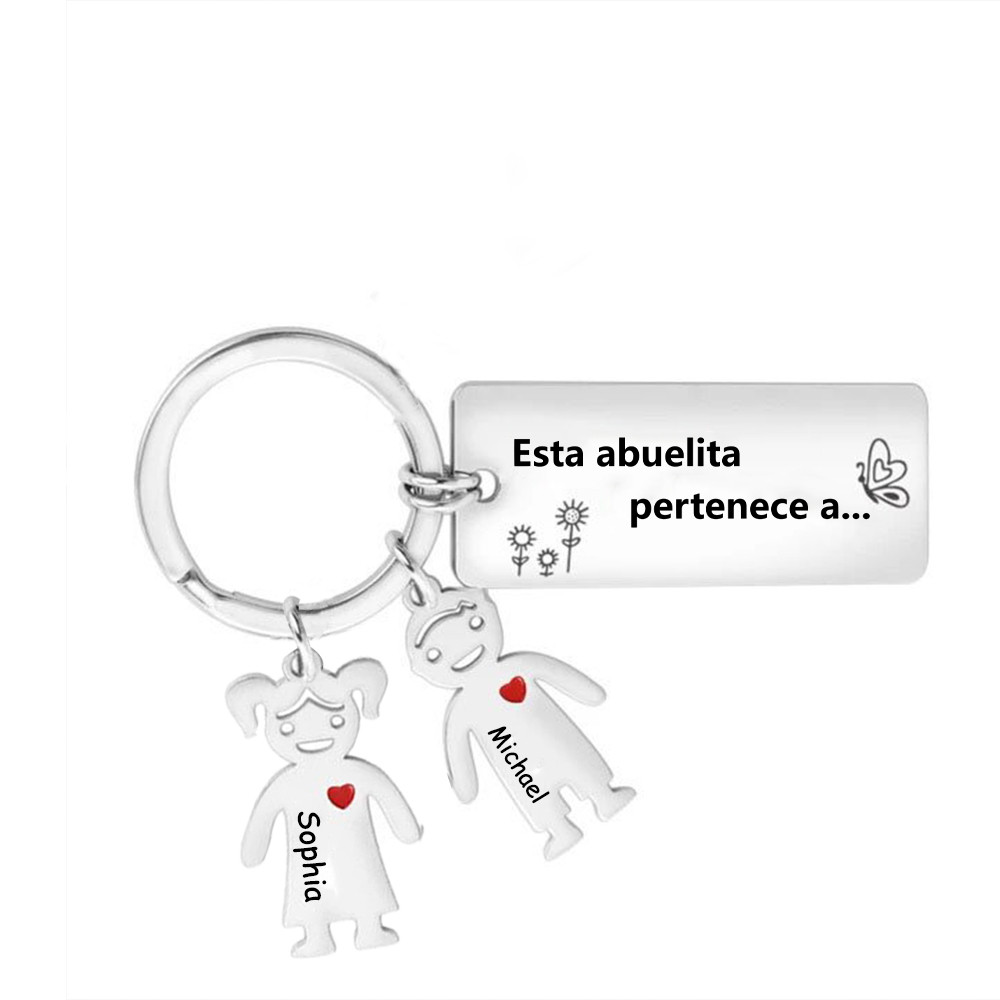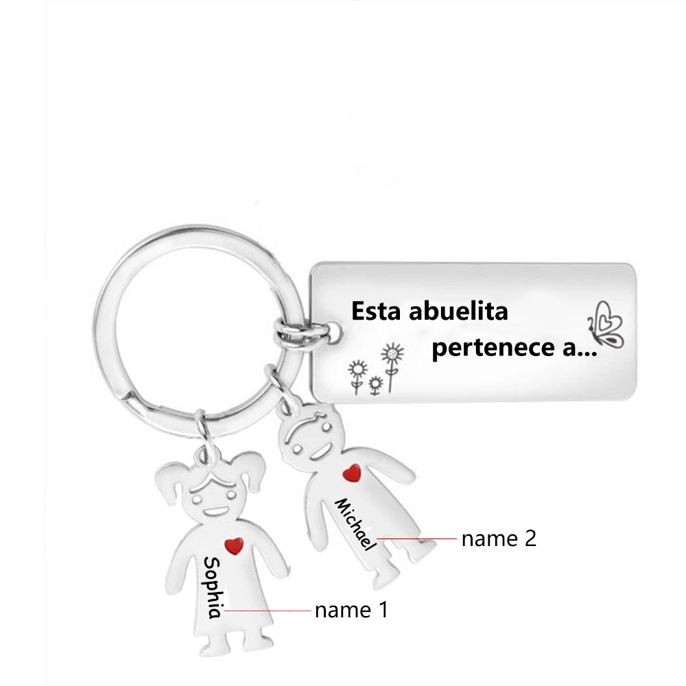 A mi abuela - llavero 2 nombres personalizados con 2 Charms Niños con placa de texto
