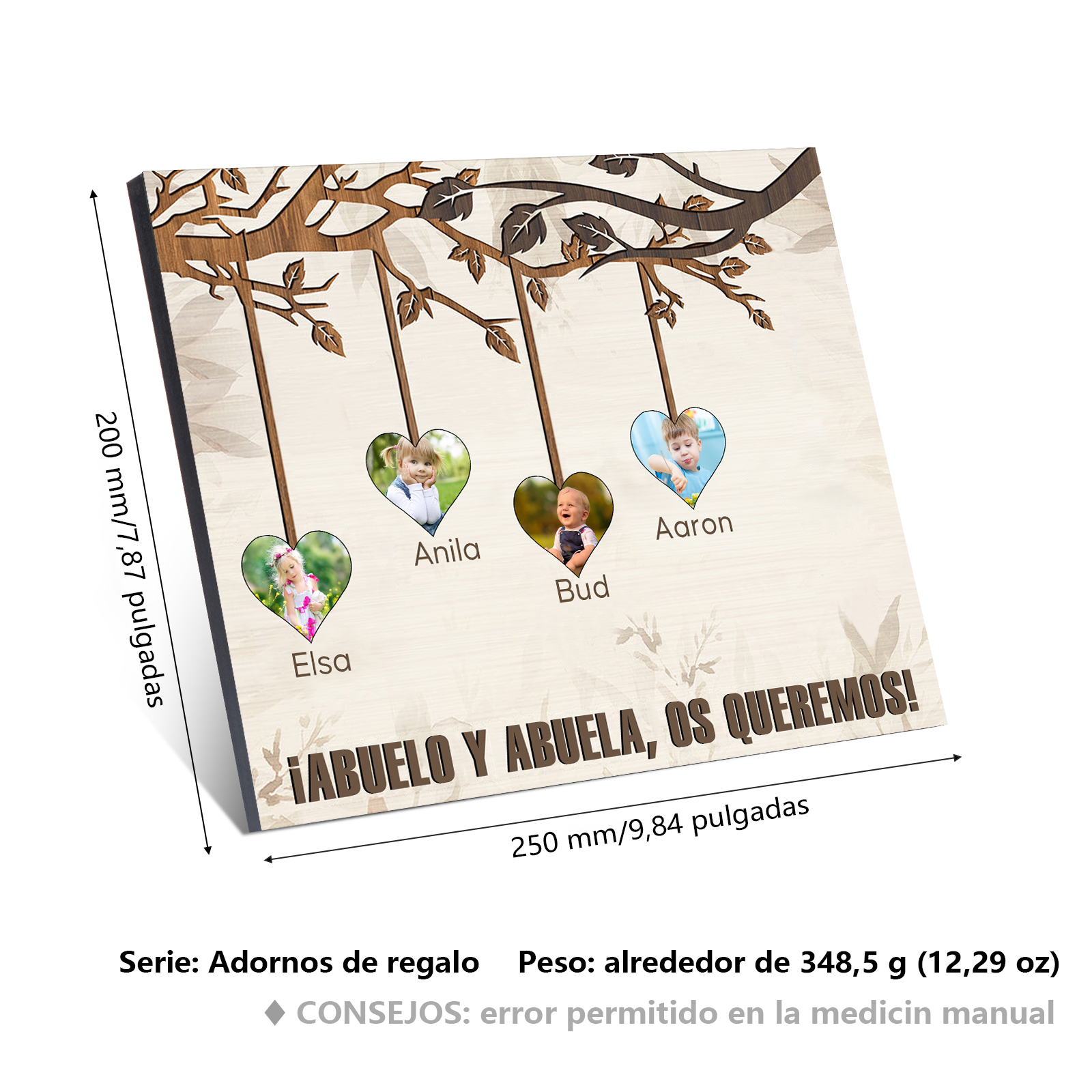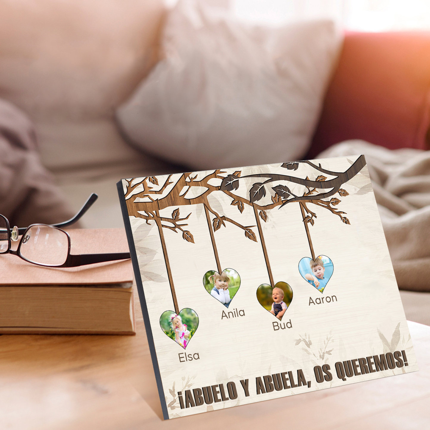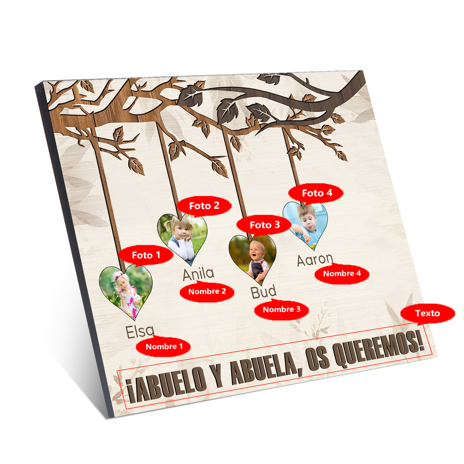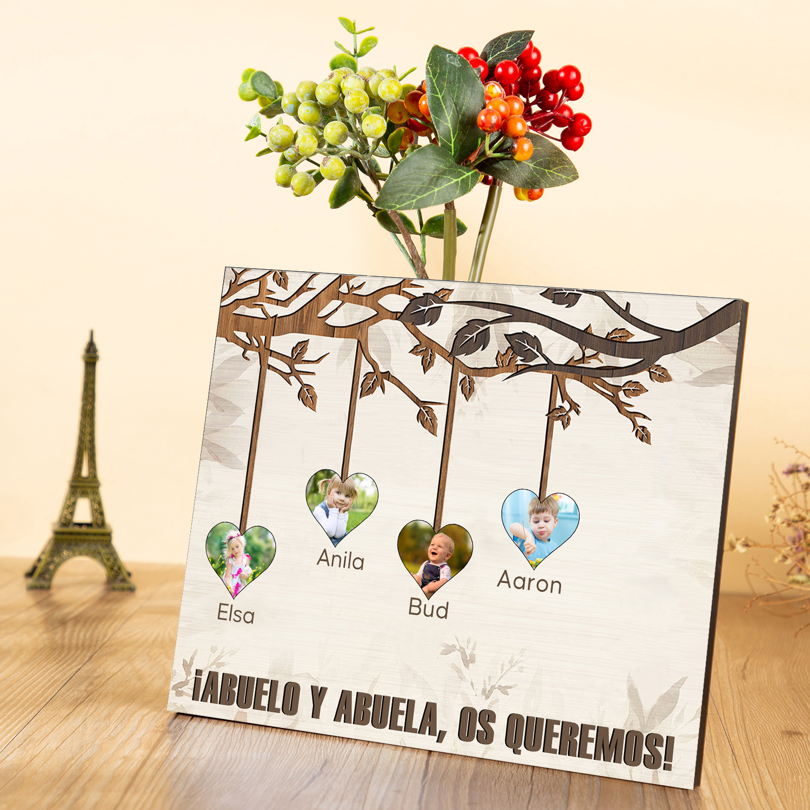 A mi familia- Lámina marco de madera frutas de árbol 4 nombres y 4 fotos personalizados con 1 texto