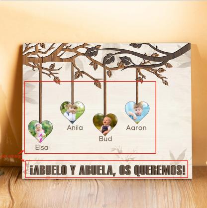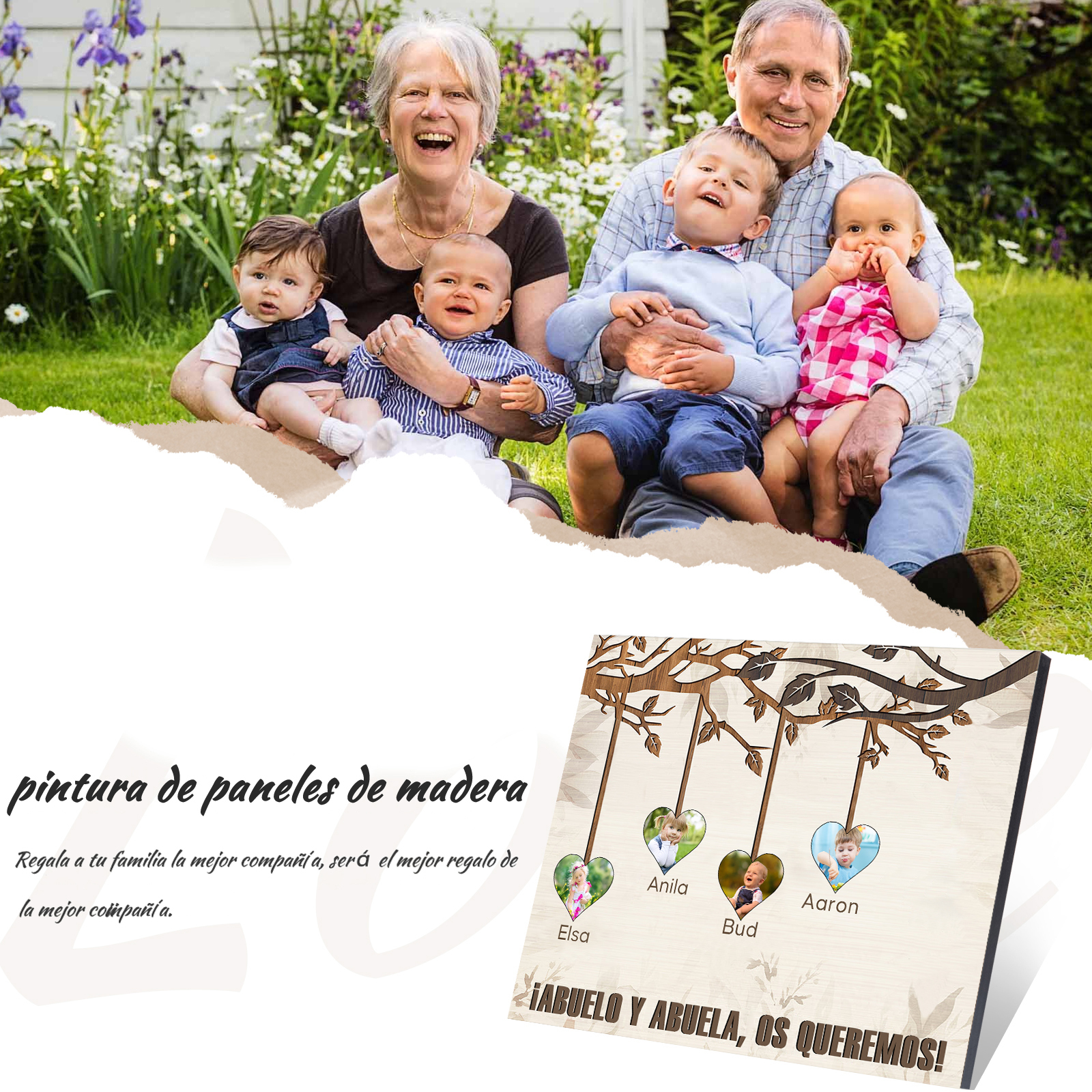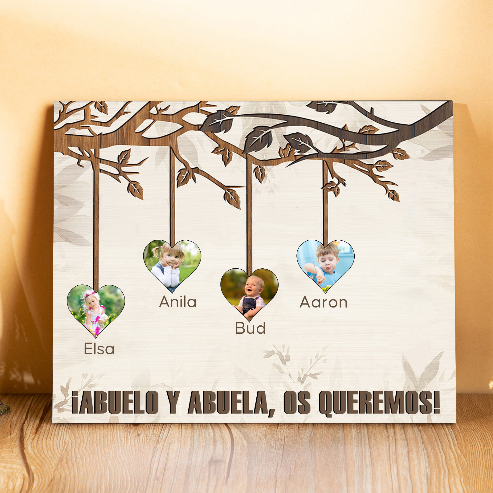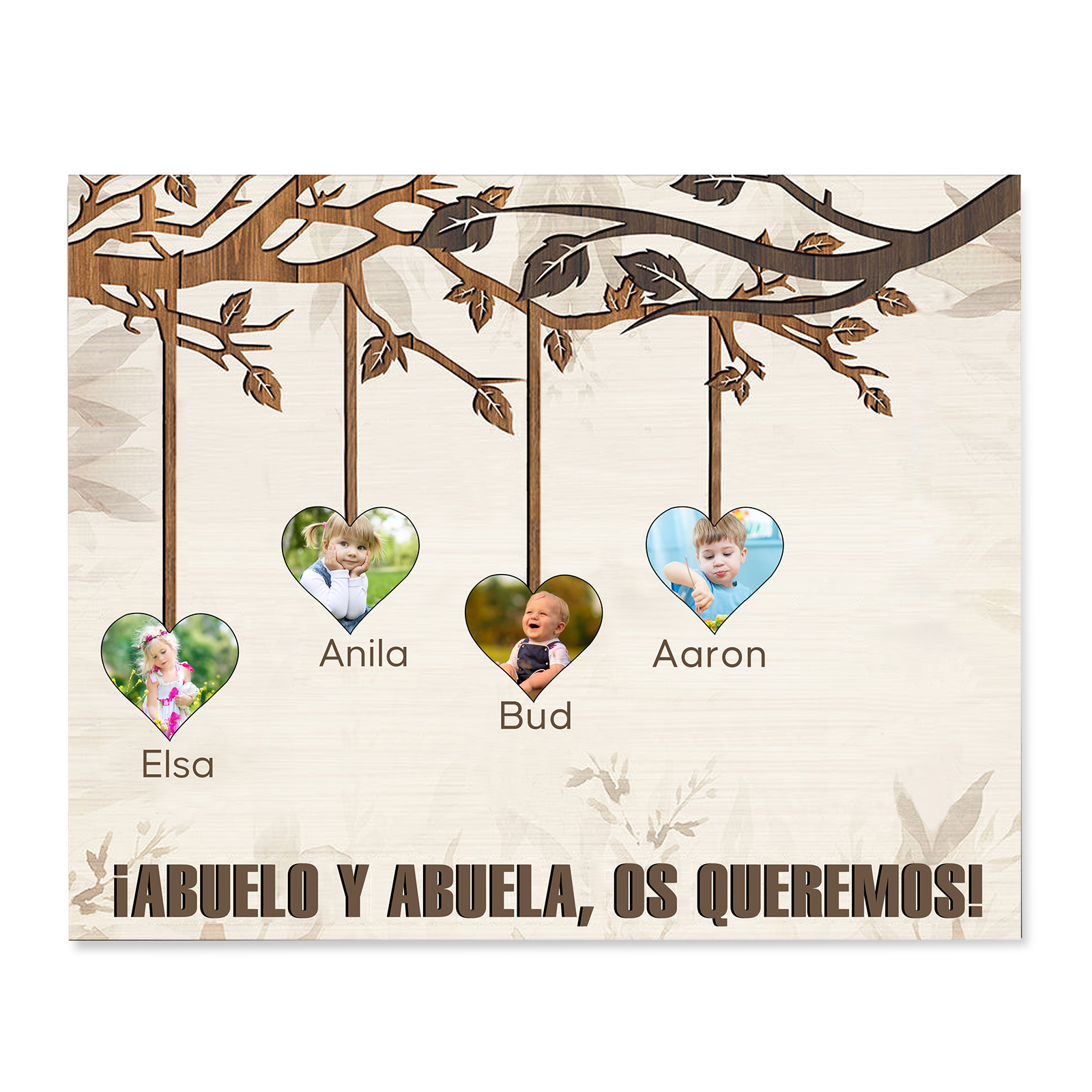 A mi familia- Lámina marco de madera frutas de árbol 4 nombres y 4 fotos personalizados con 1 texto