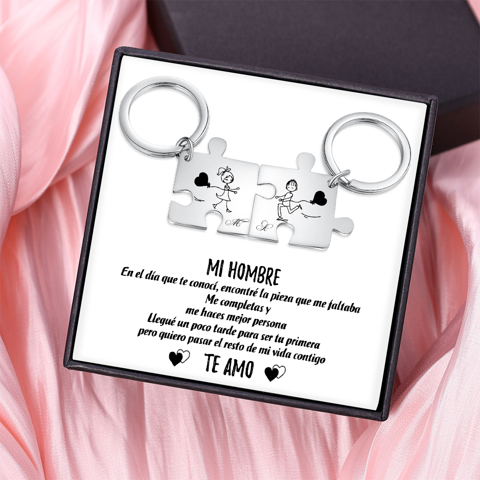 A mi hombre-Llavero para pareja de rompecabezas 2 letras personalizadas