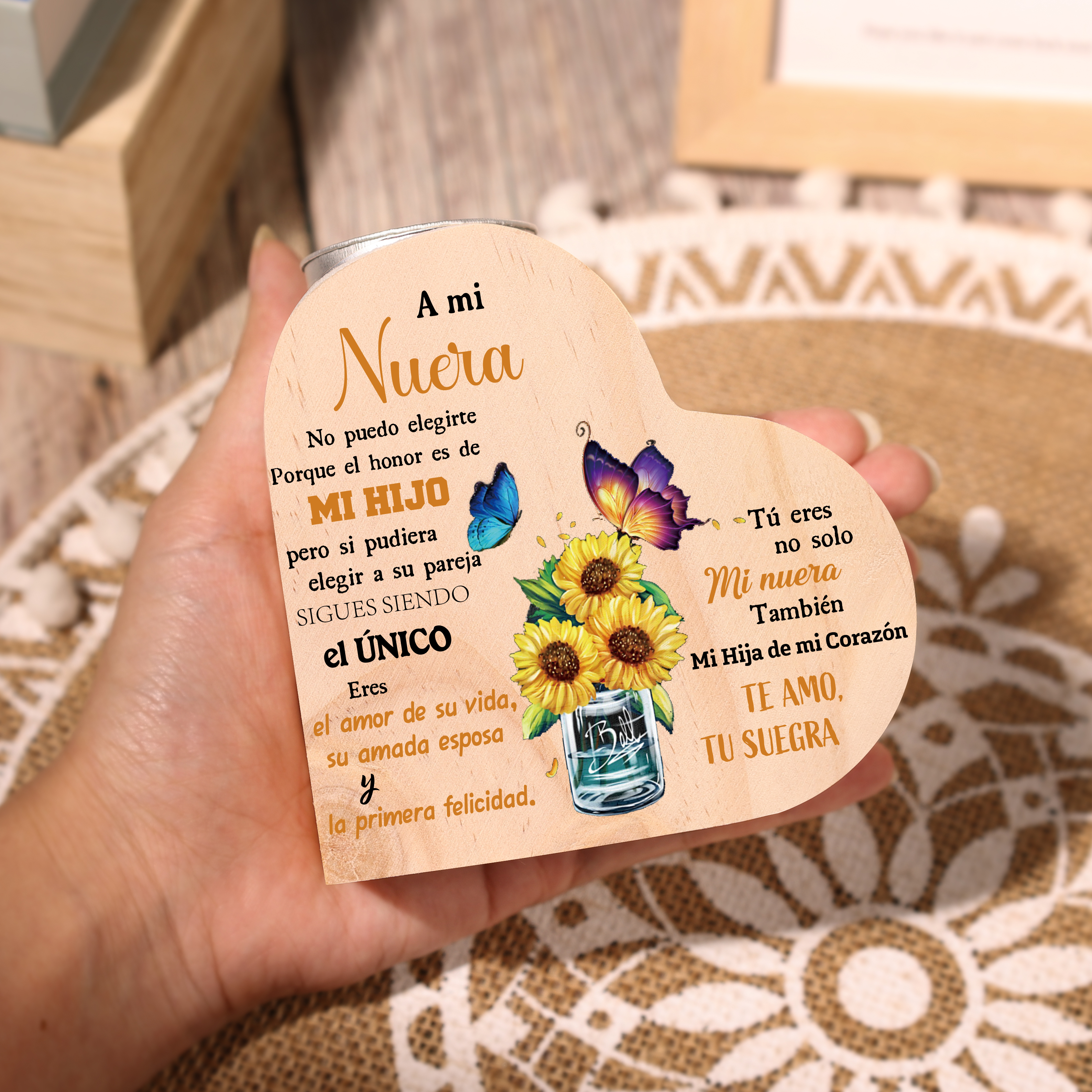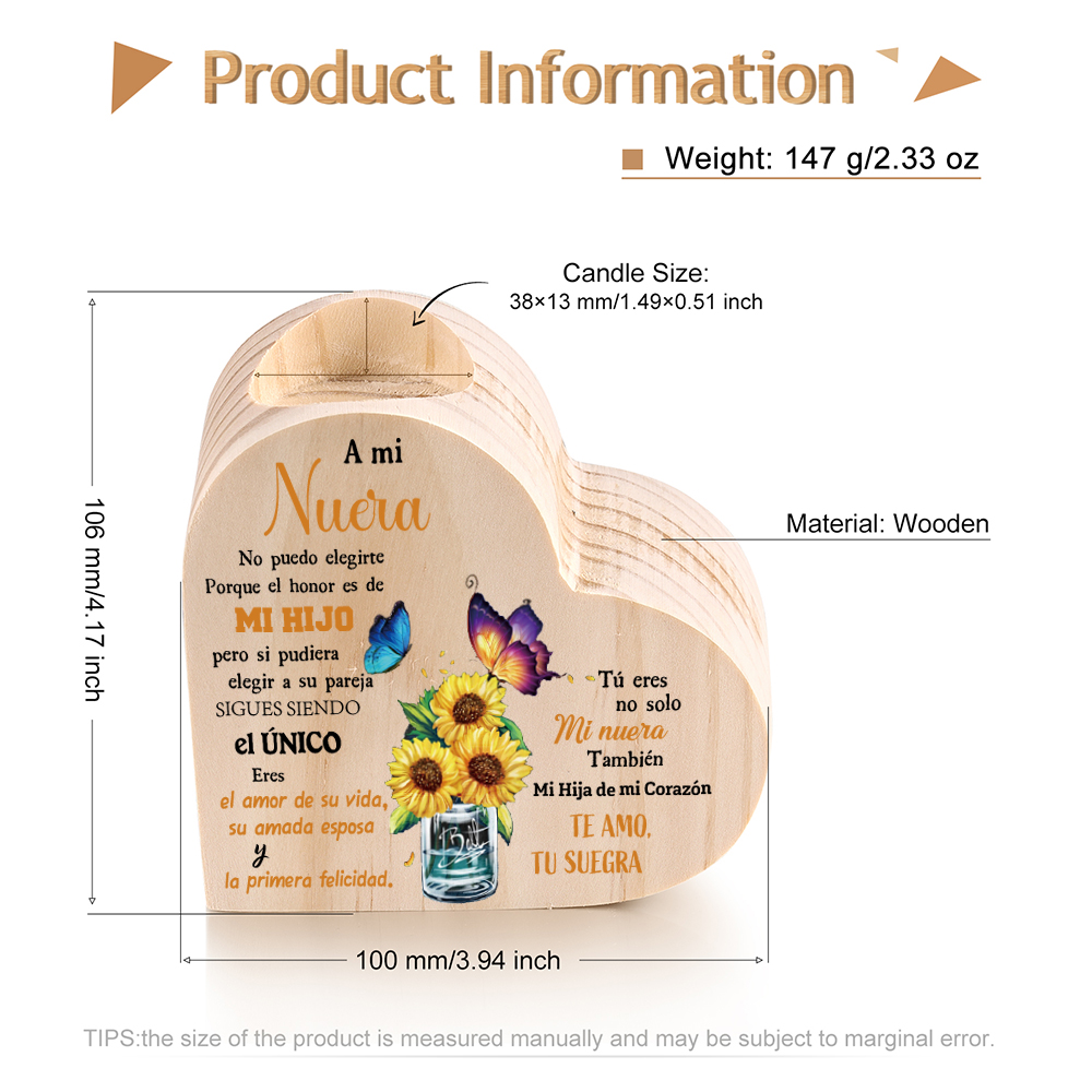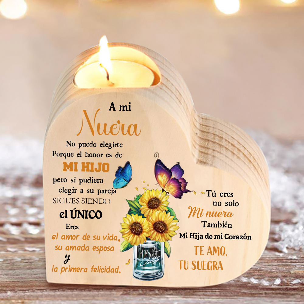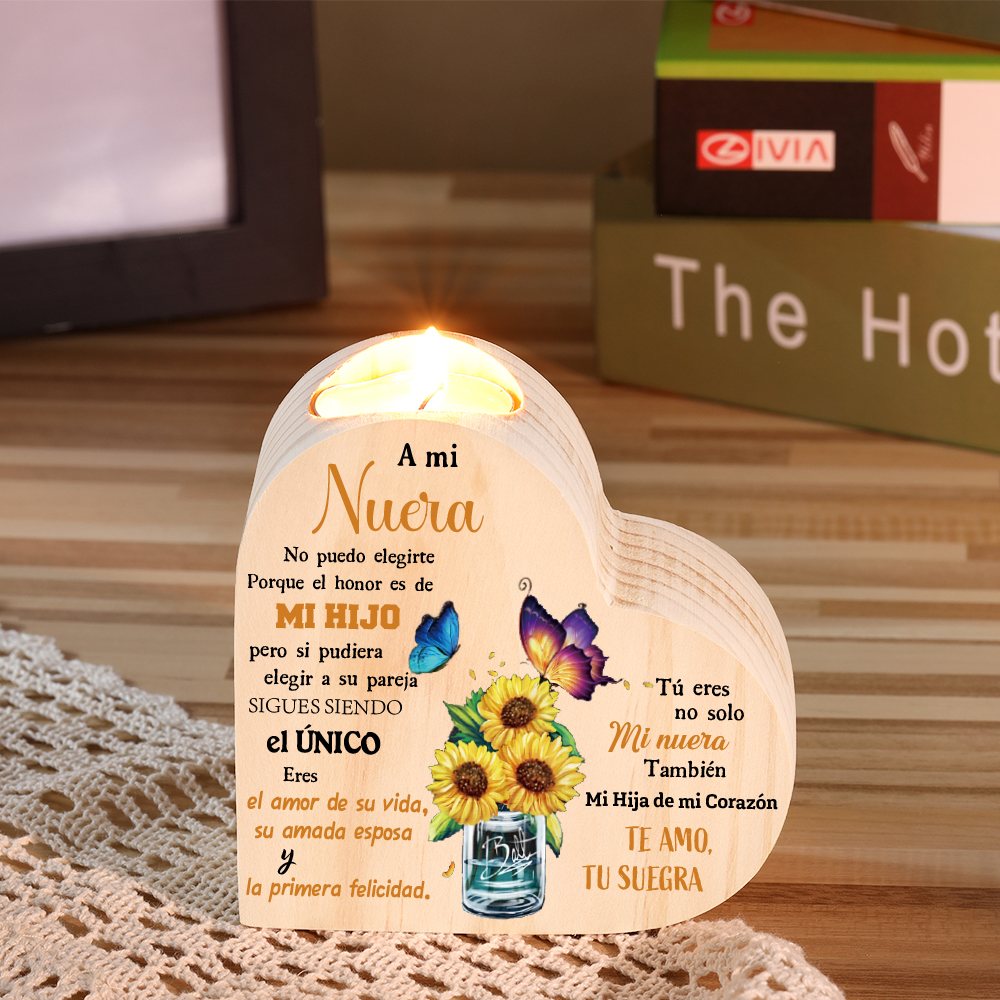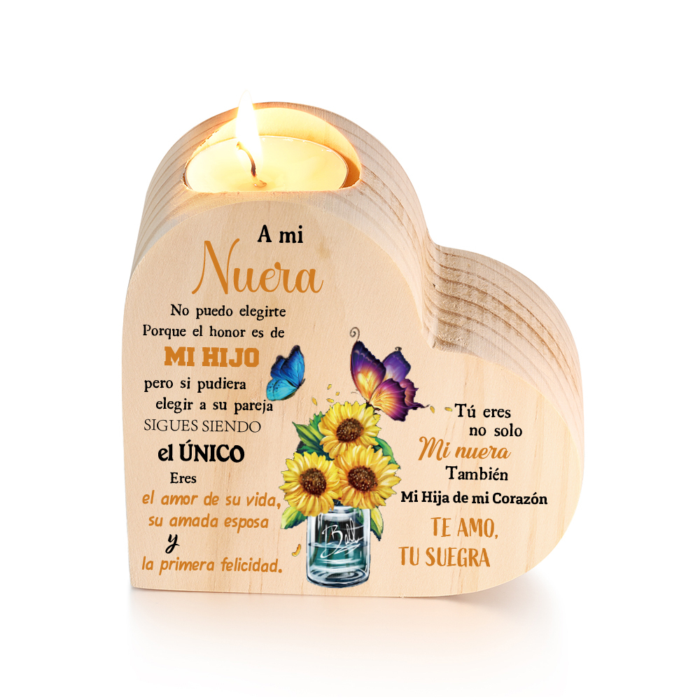 A mi nuera(de suegra)-Candelero de madera corazón sin candela