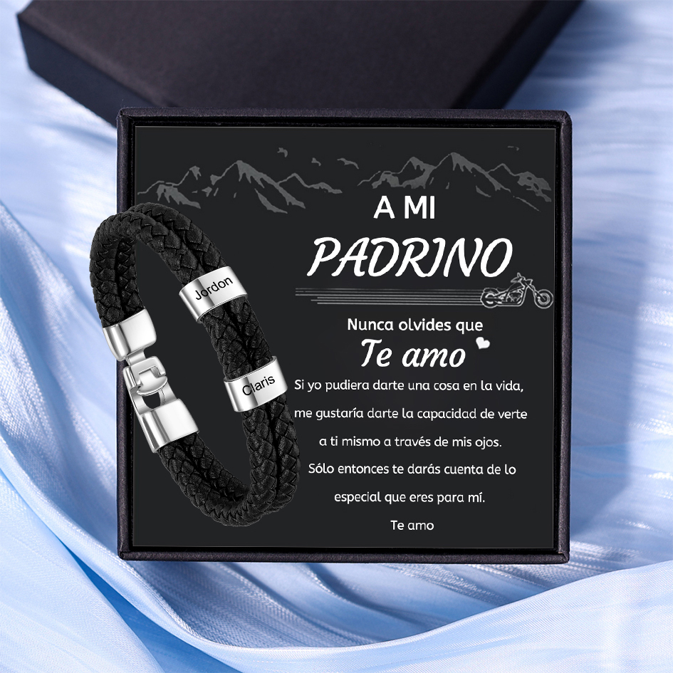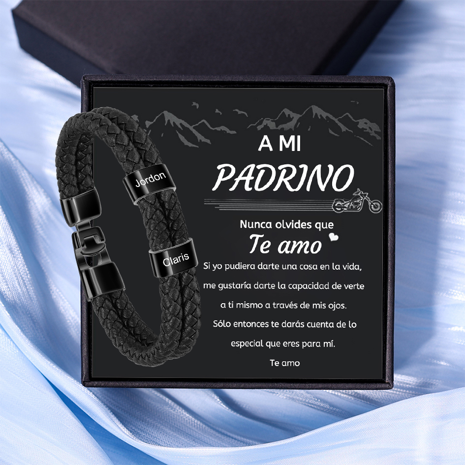 A mi padrino-Pulsera de cuero trenzado 2 aros con 2 nombres personalizados pulsera de hombre