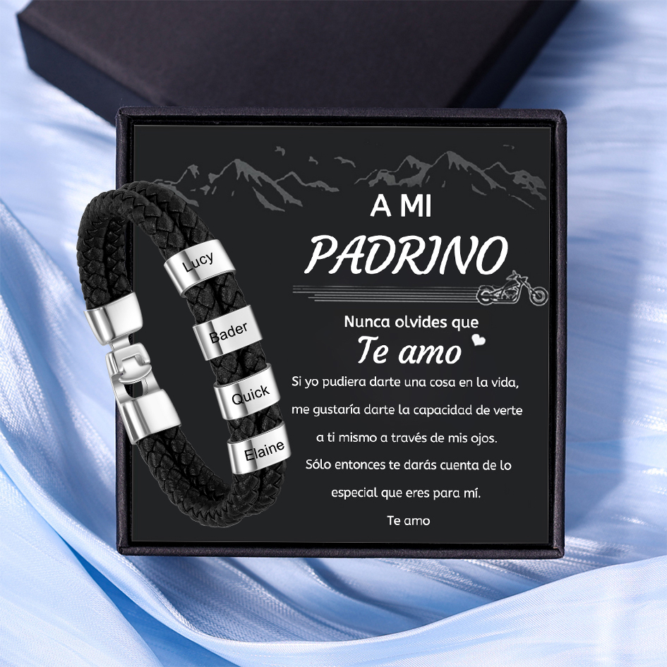 A mi padrino-Pulsera de cuero trenzado 4 aros con 4 nombres personalizados pulsera de hombre