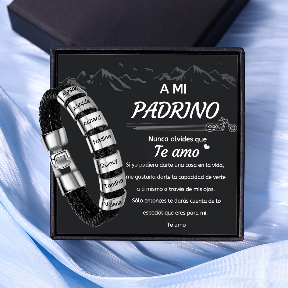 A mi padrino-Pulsera de cuero trenzado Pulsera de hombre con 7 aros personalizados con 7 nombres