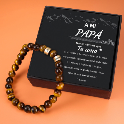 A MI PAPÁ-Pulsera de Piedras Ojo de Tigre Marrón 2 Nombres Personalizados para Hombre