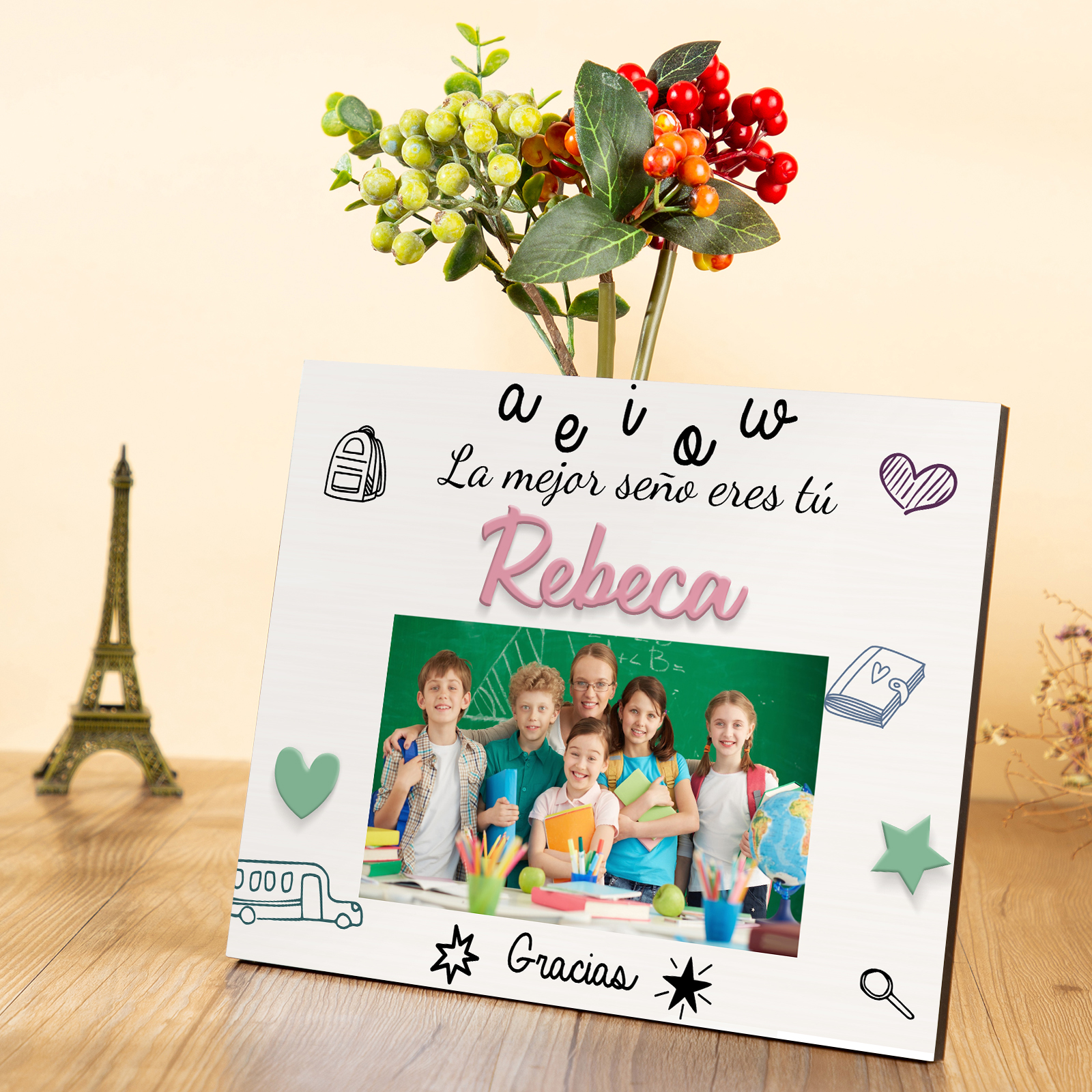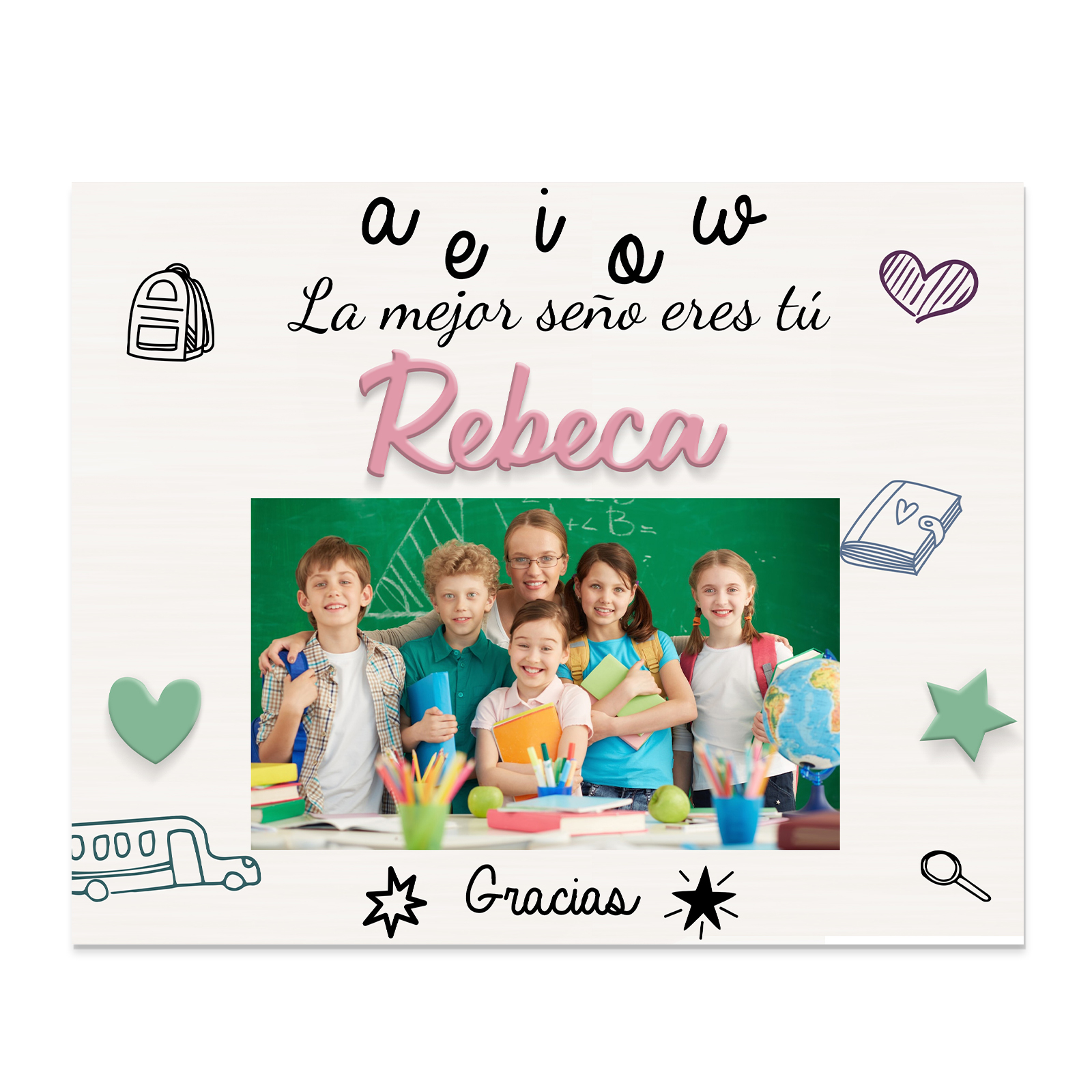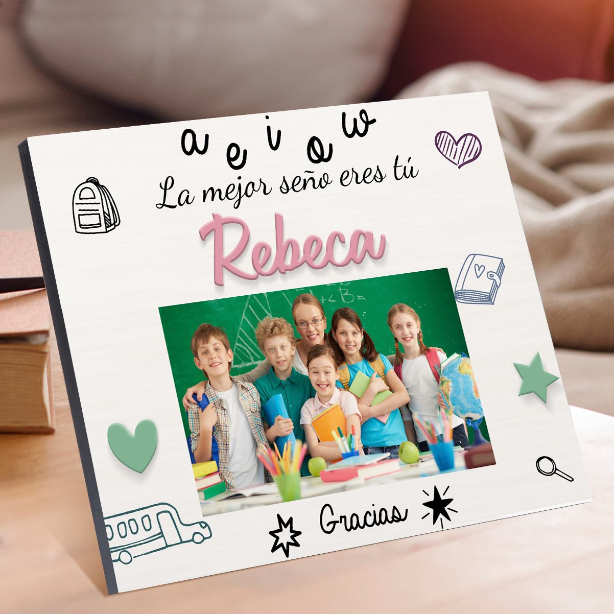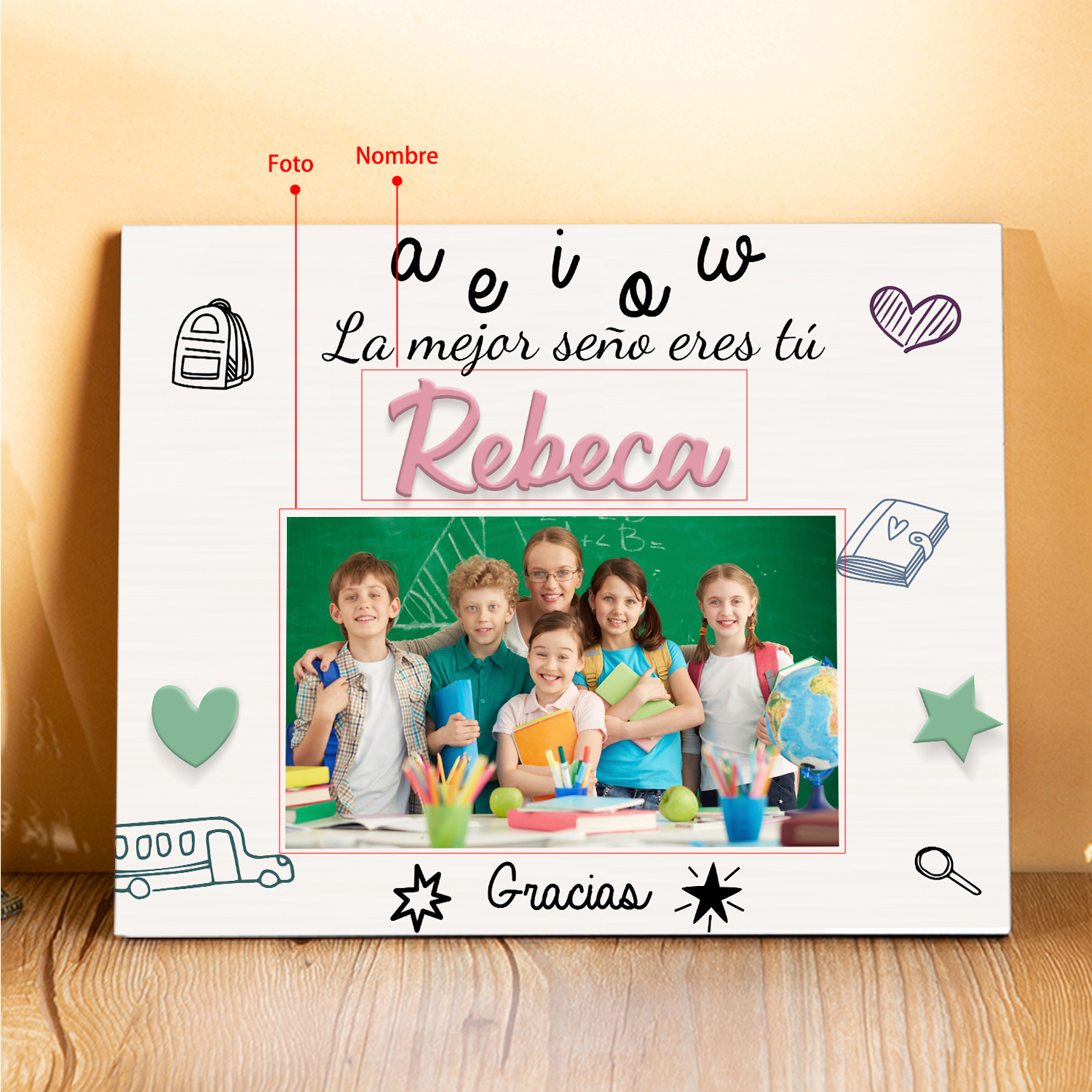 A mi profe-Lámina marco de madera Gracias Profe de 1 foto y 1 nombre