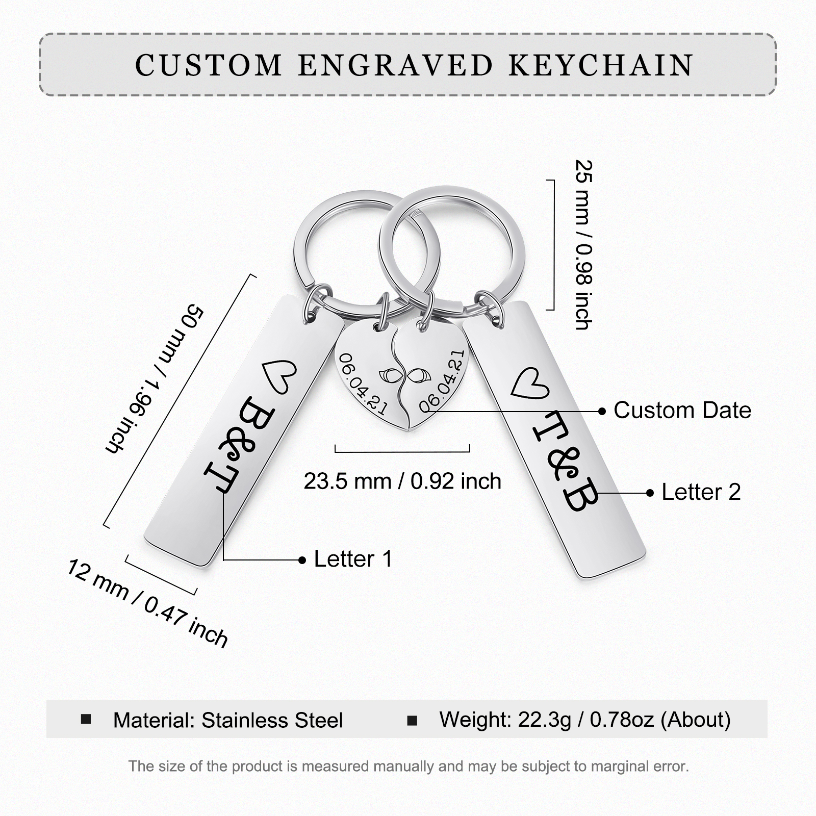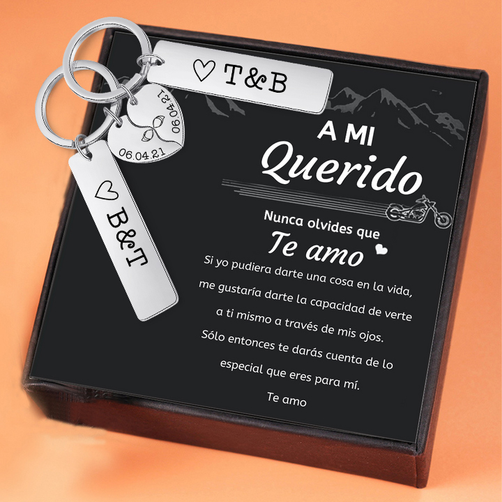 A mi querido-Llavero para pareja mano a mano 2 letras personalizadas con fecha