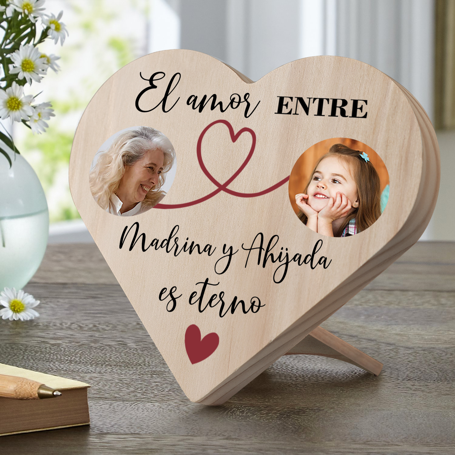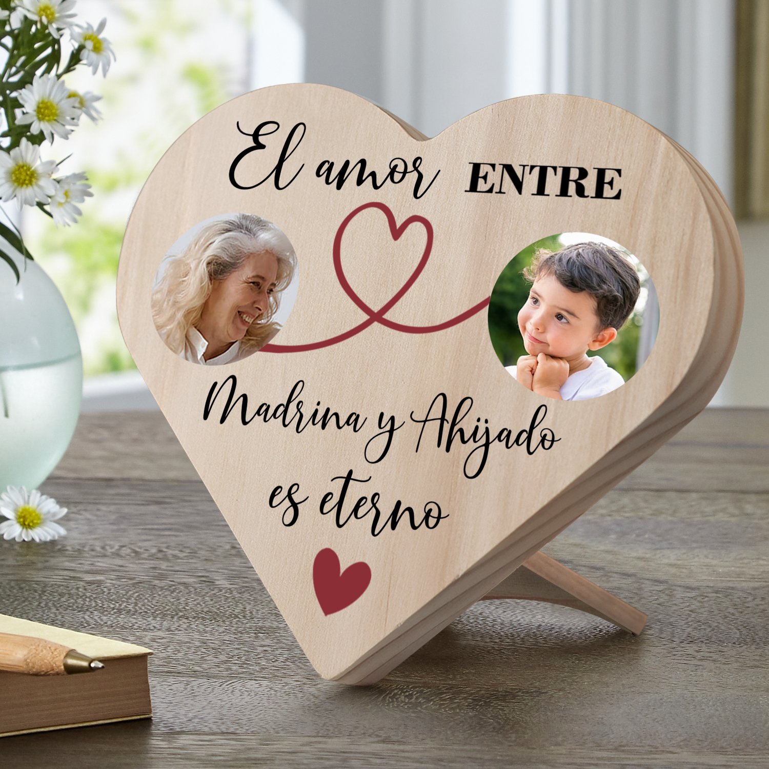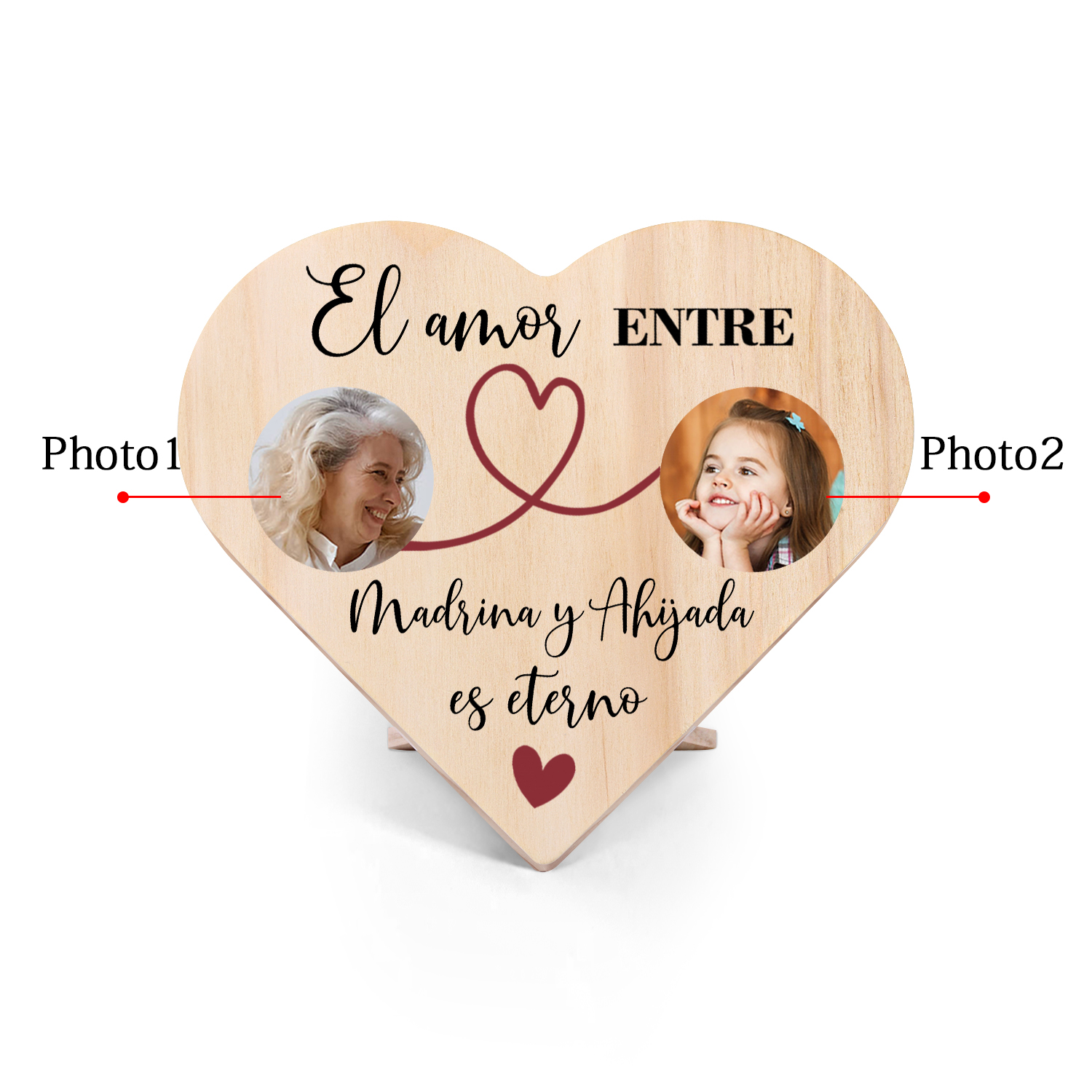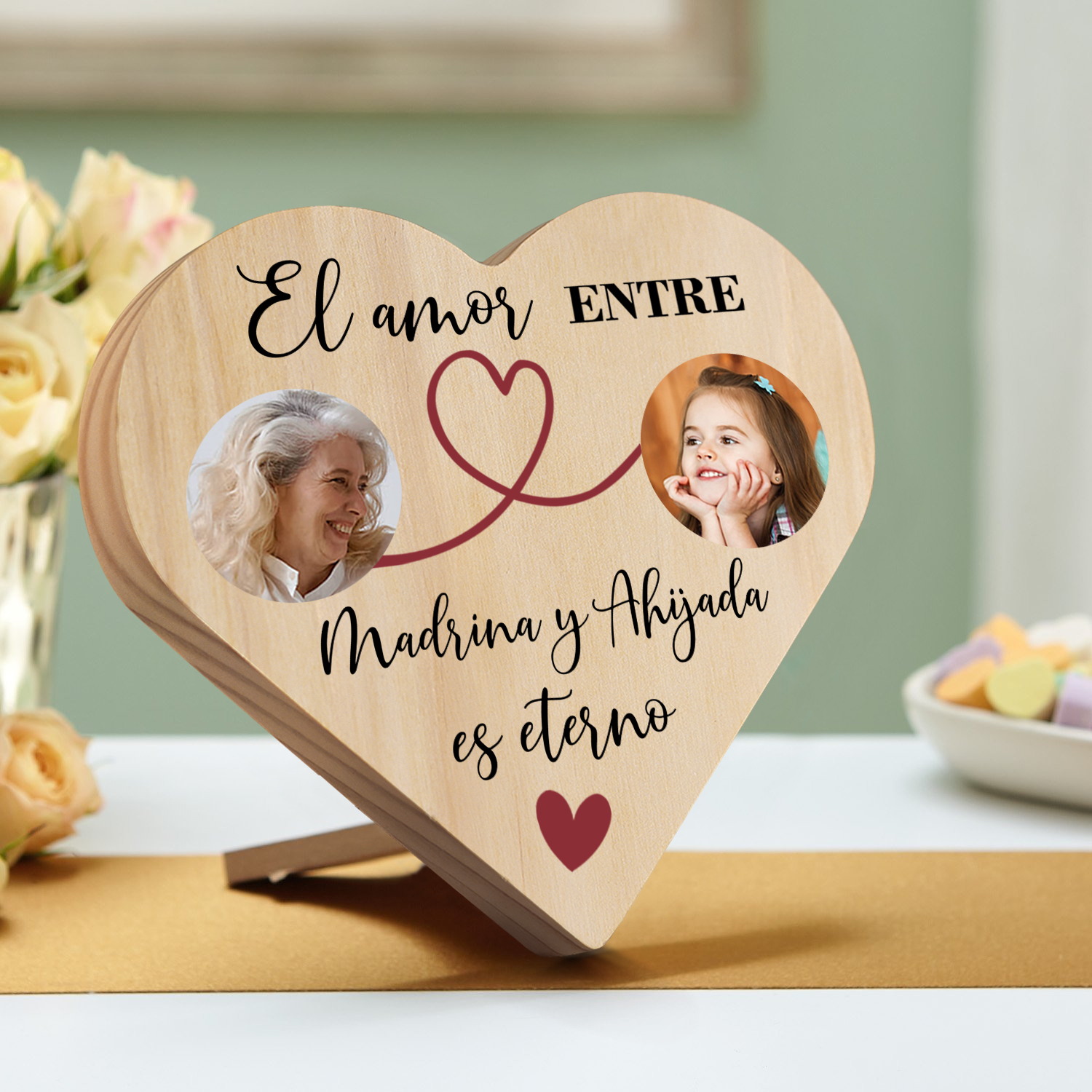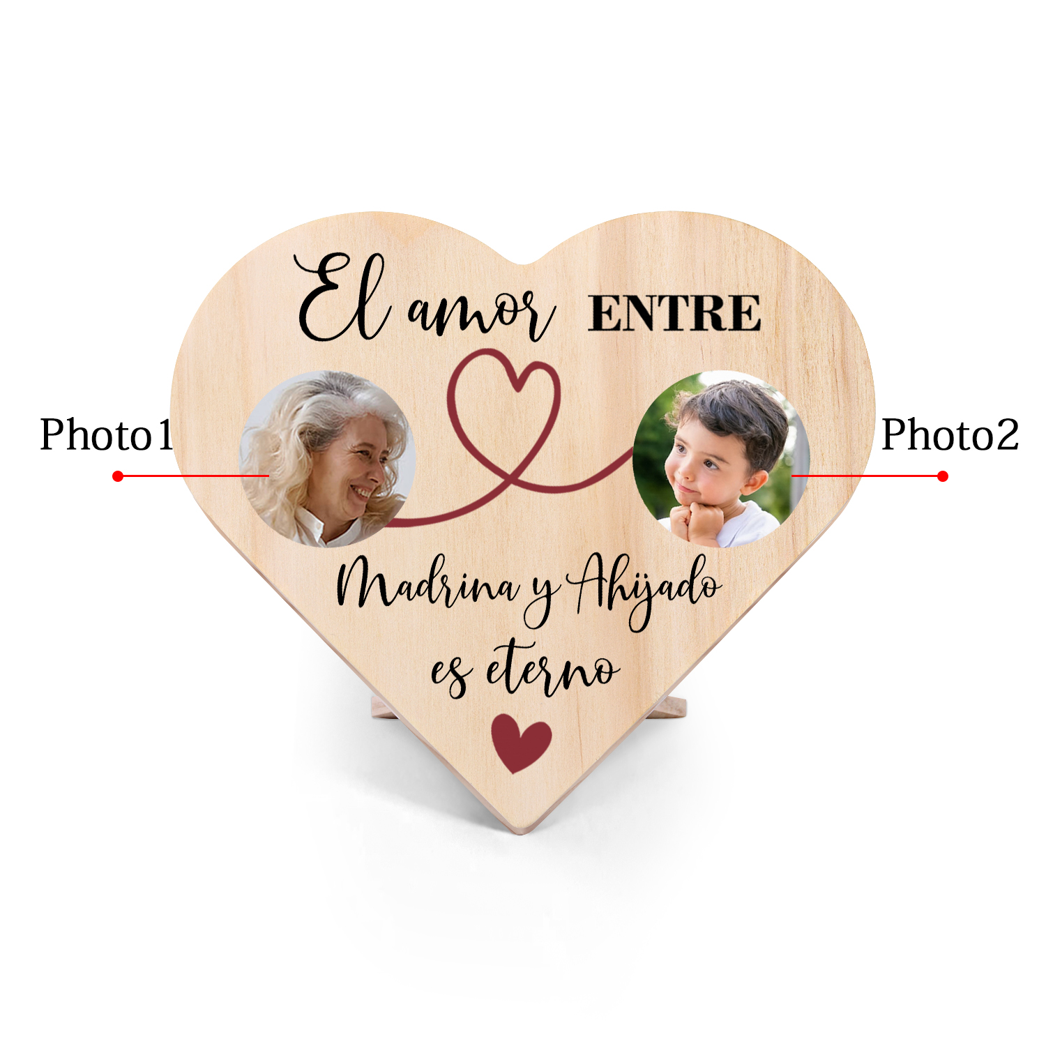 Adorno de madera en forma de corazón para madrina y ahijada/ahijado con 2 fotos