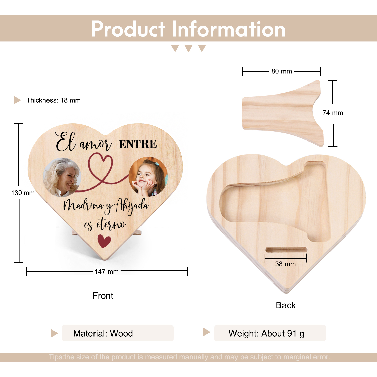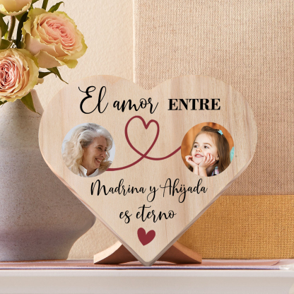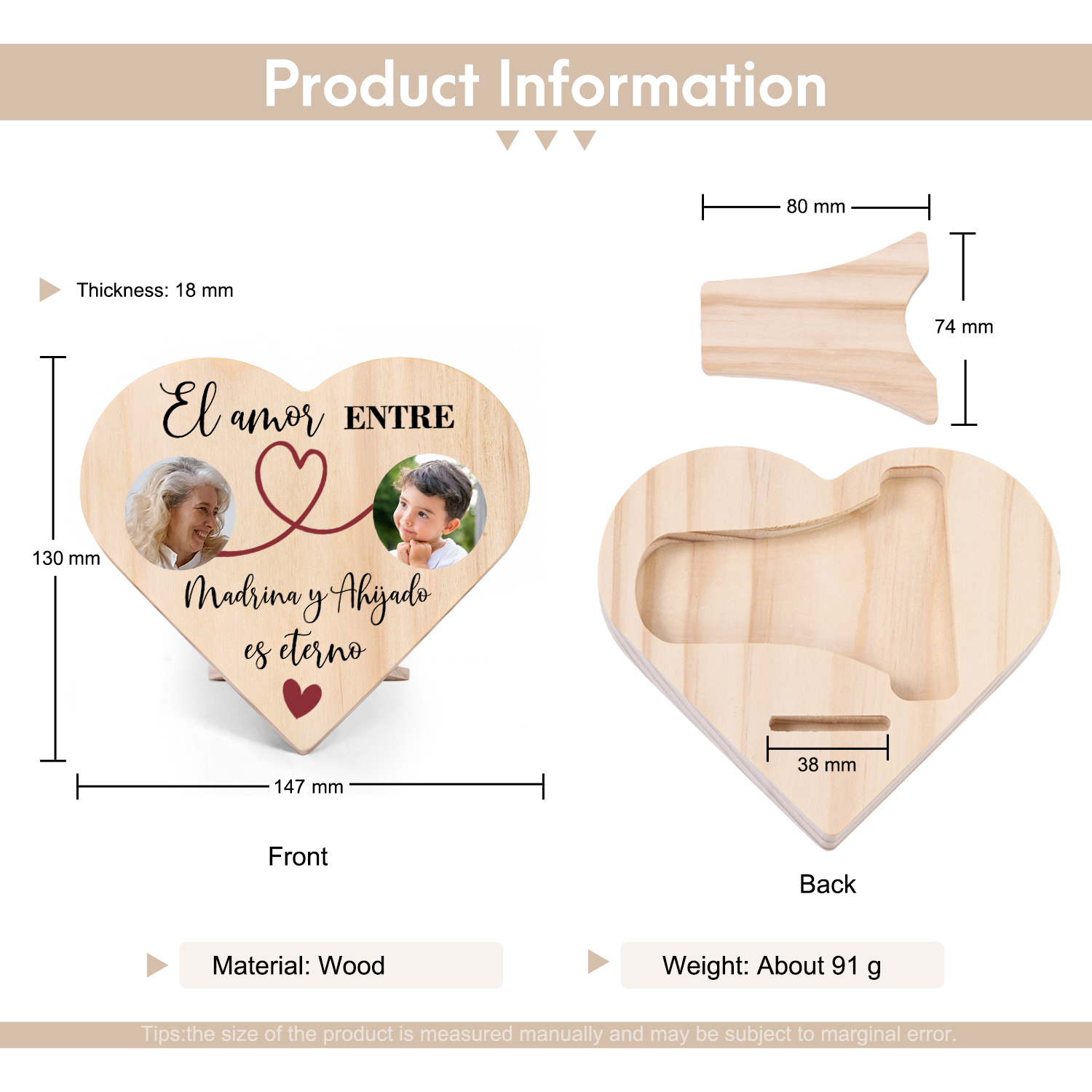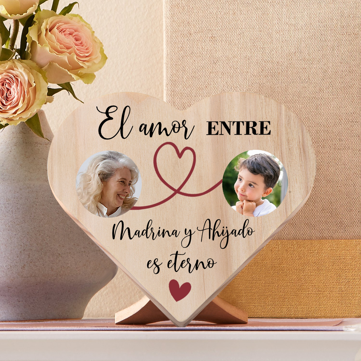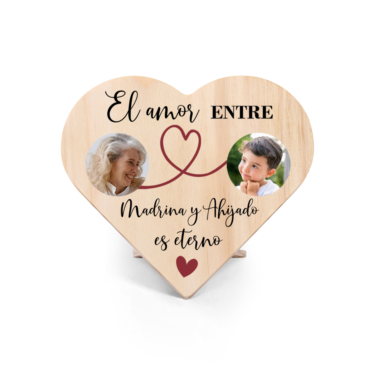 Adorno de madera en forma de corazón para madrina y ahijada/ahijado con 2 fotos