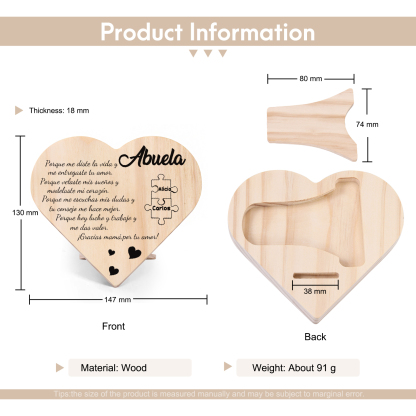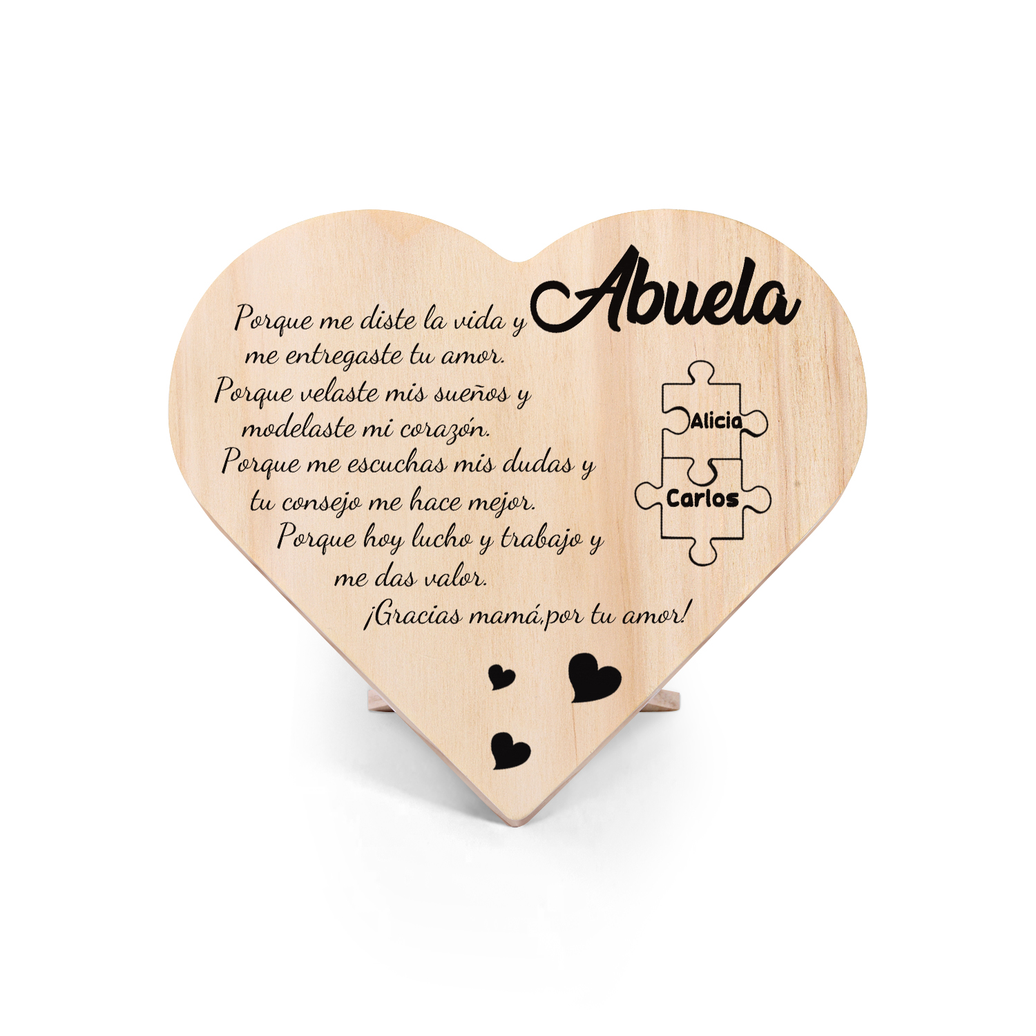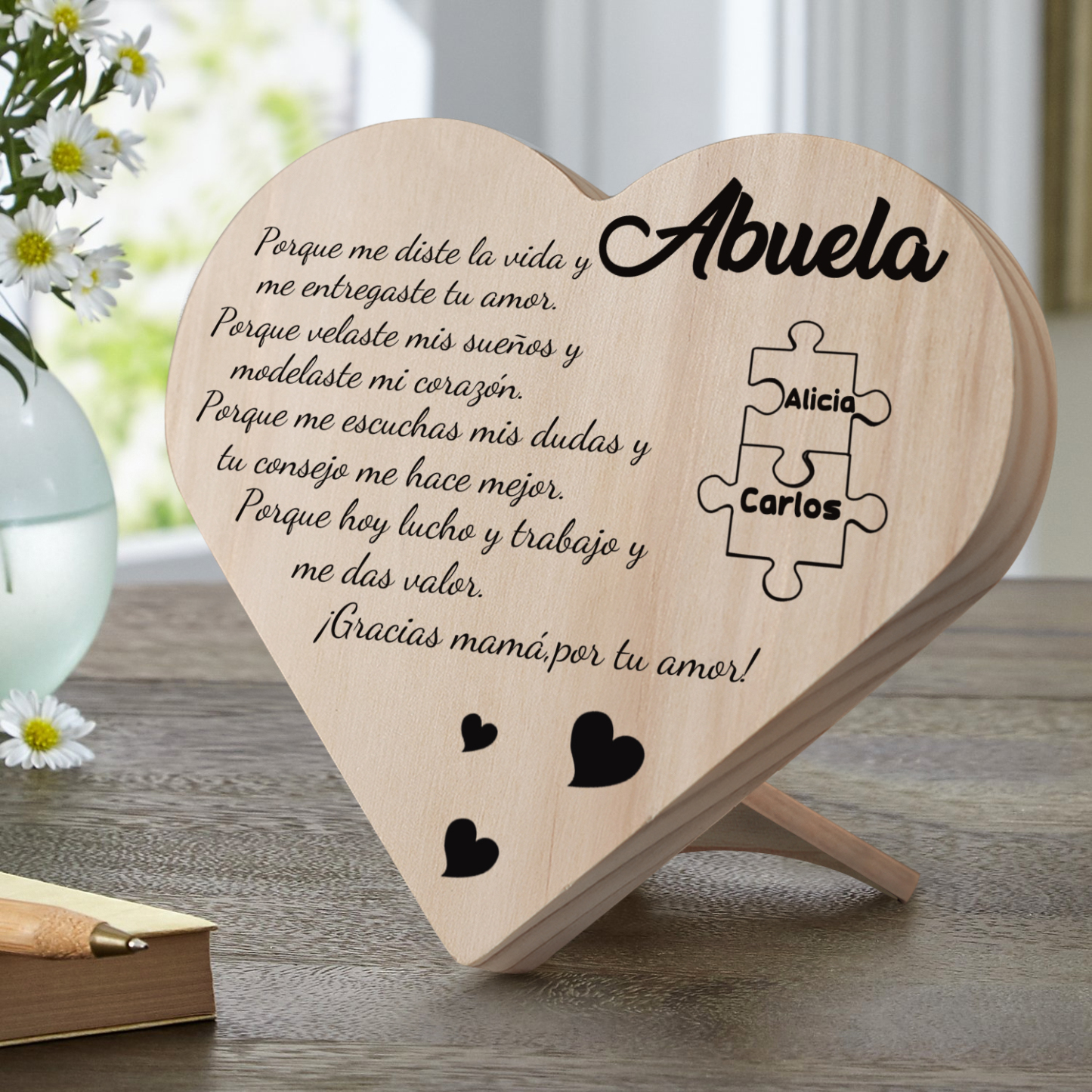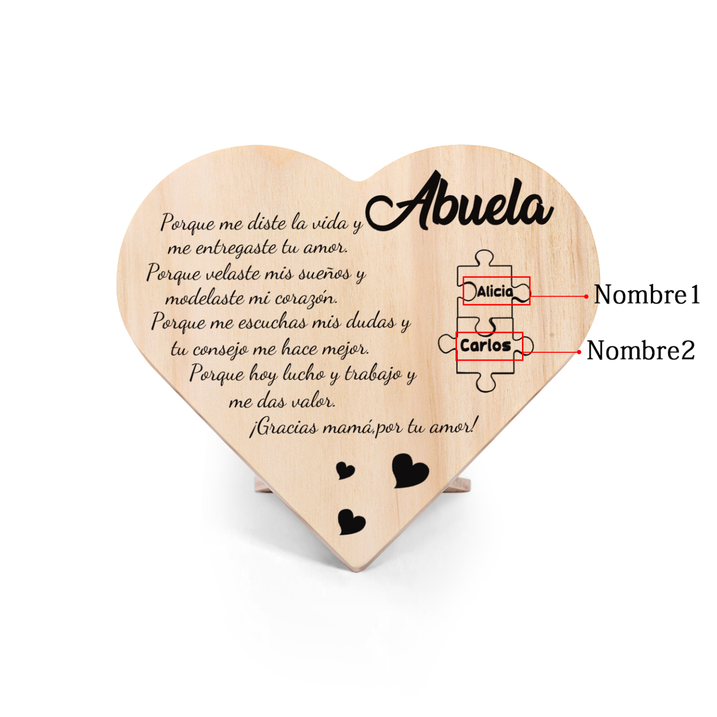 Adorno de madera en forma de corazón para mi abuela personalizado con 2 nombres