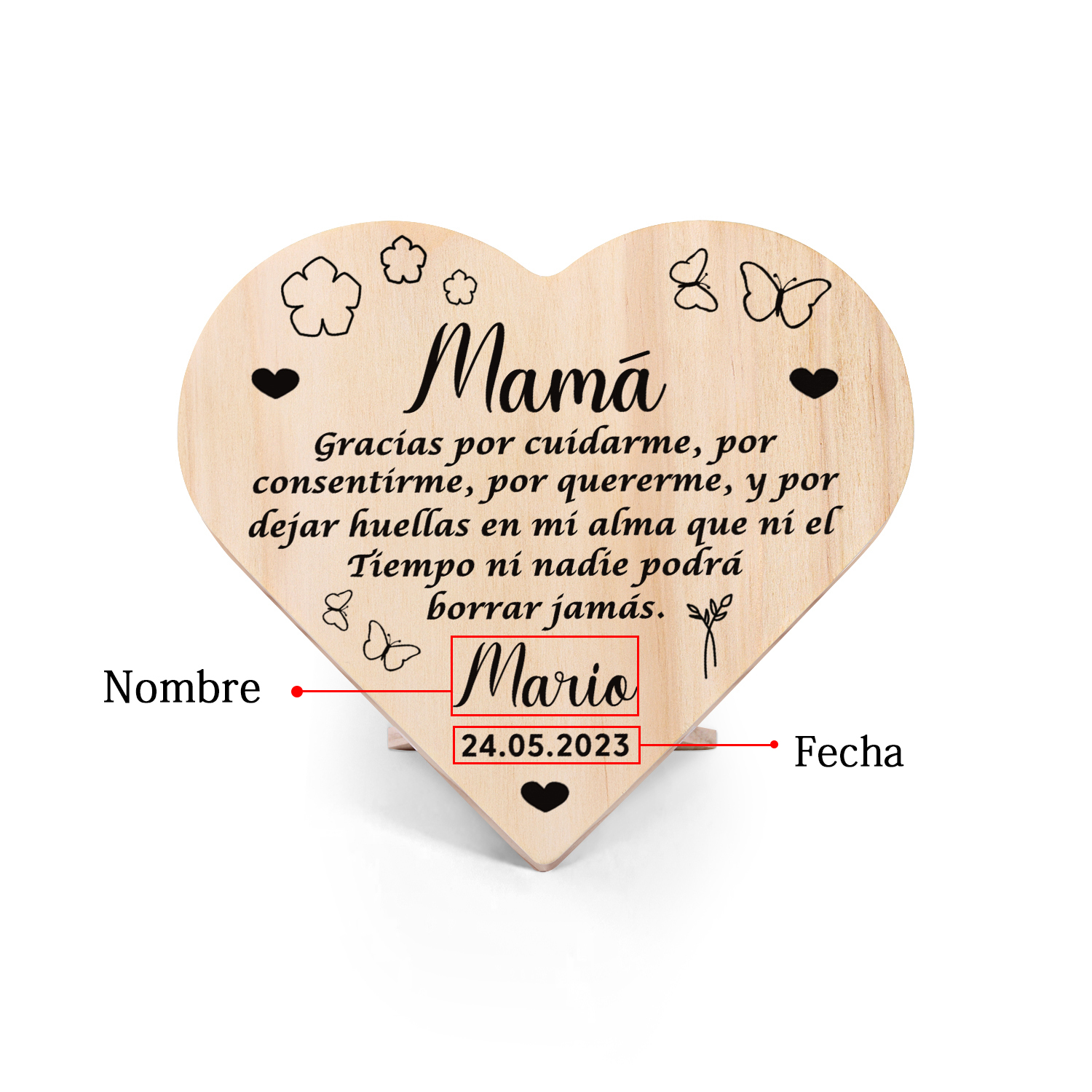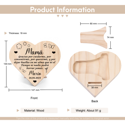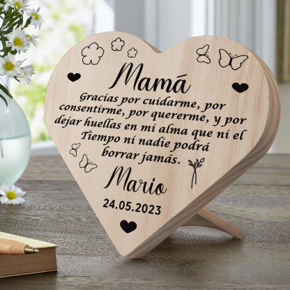 Adorno de madera en forma de corazón para mi mamá personalizado con 1 nombre y fecha