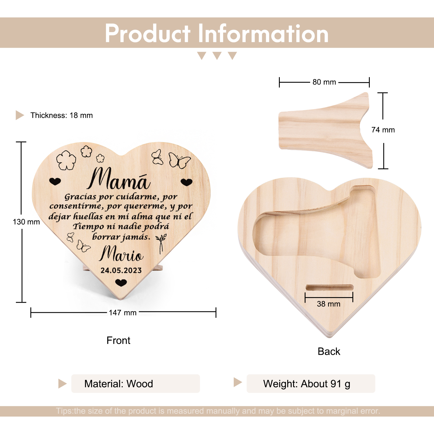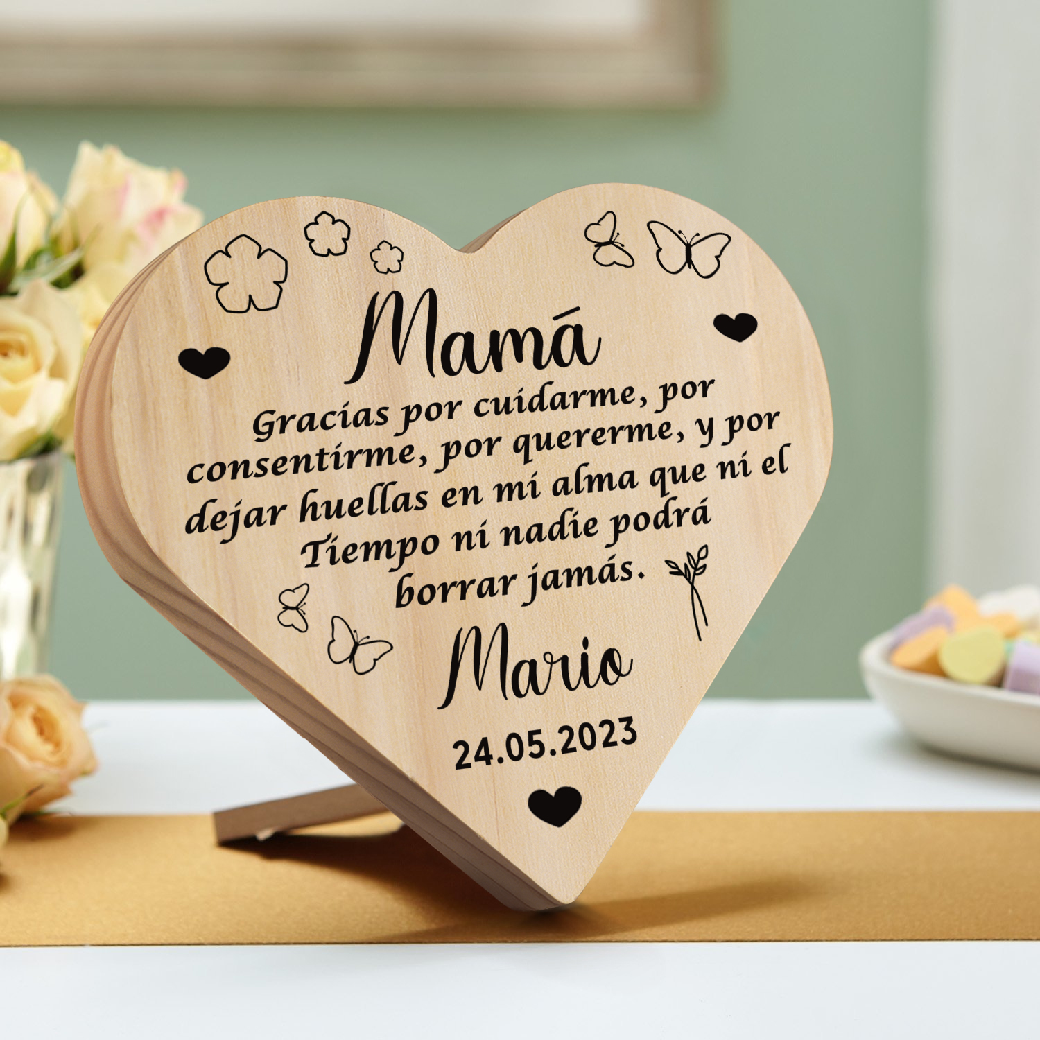 El adorno de madera se puede colocar y decorar en casi cualquier lugar de la casa o como decoración para ocasiones especiales. Hace que tu hogar sea único y muestra tu amor y cuidado.