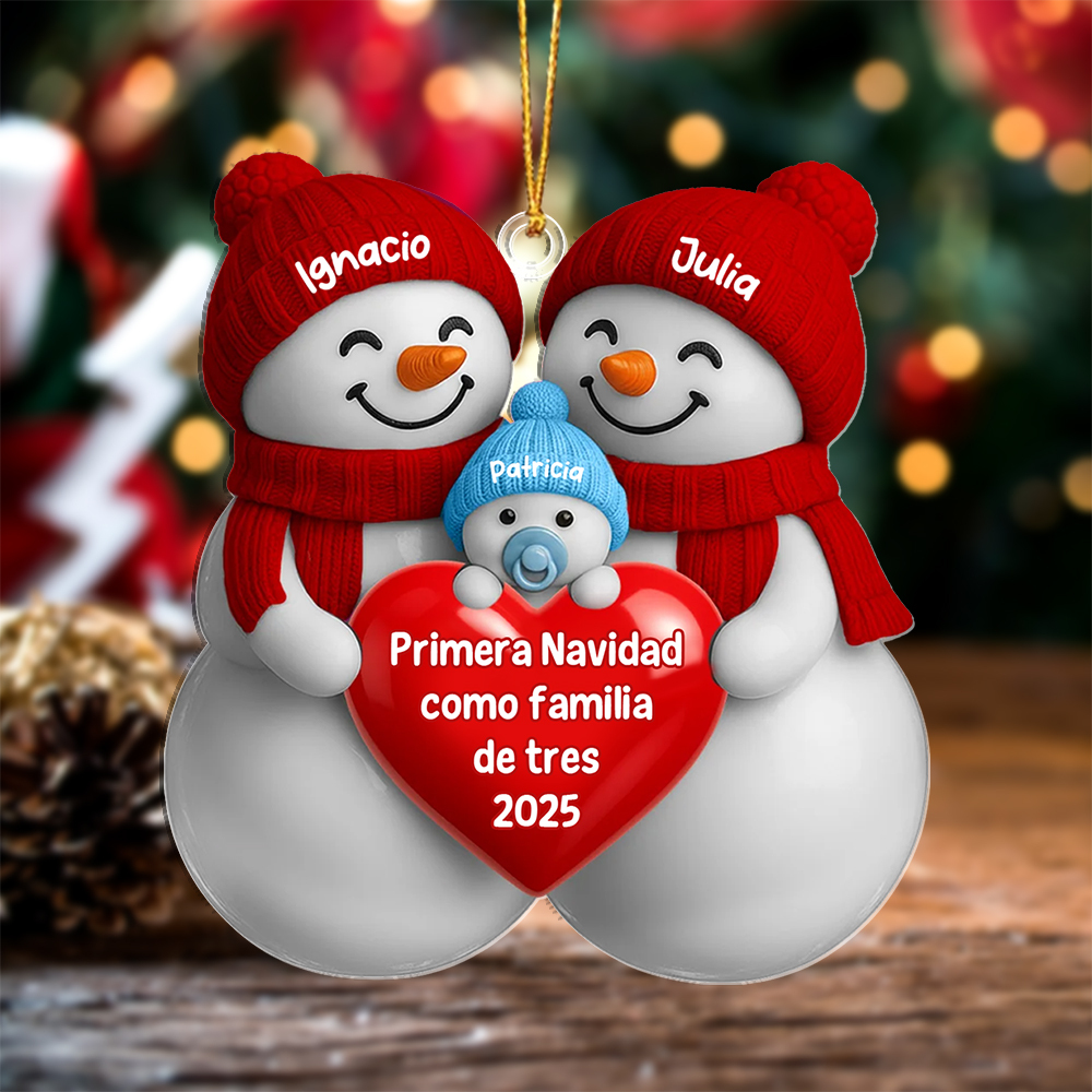 Palabras clave: adorno de Navidad personalizado, decoración del árbol con nombres, primera Navidad del bebé, regalo para padres primerizos, adorno familiar, colgante de muñeco de nieve, decoración de Navidad personalizada