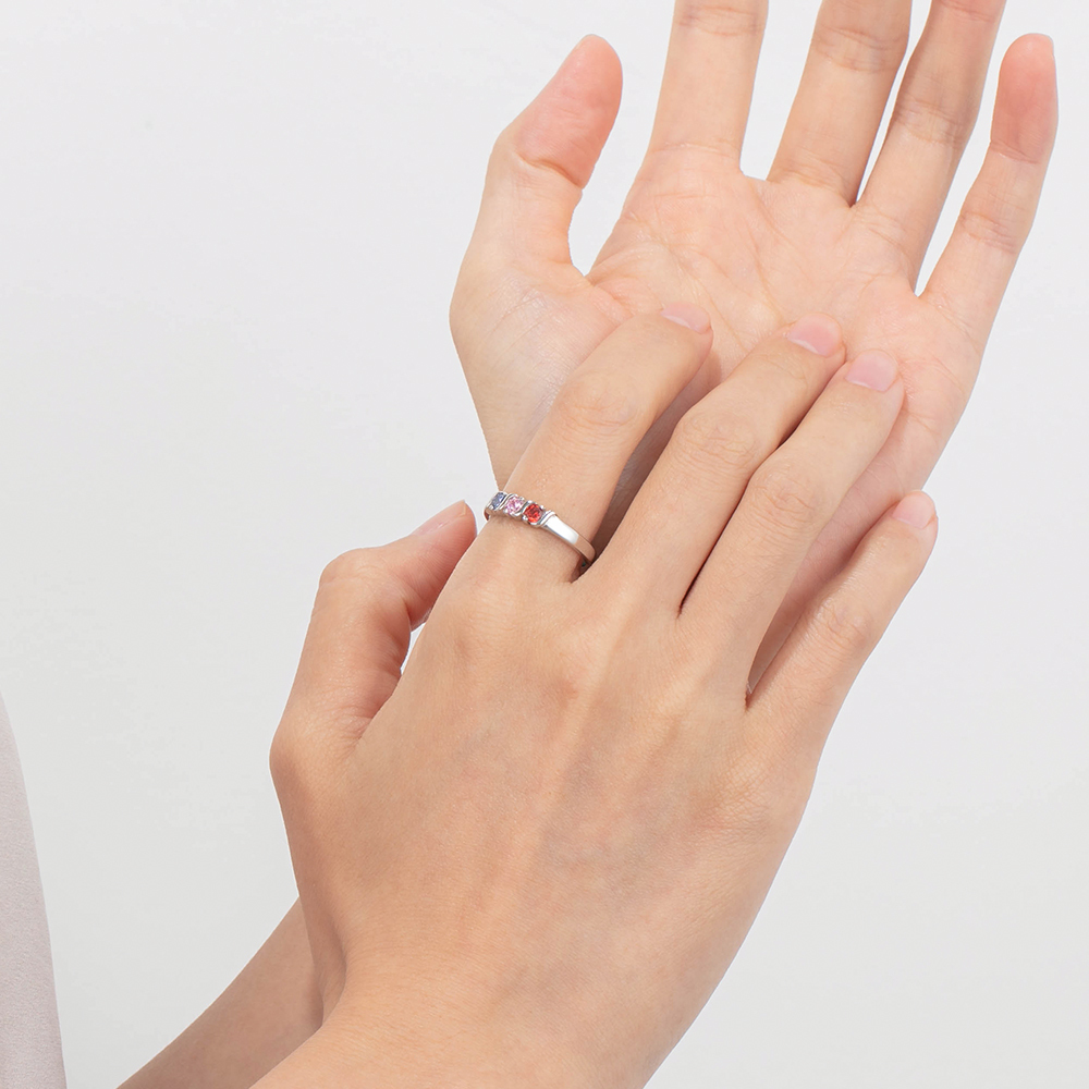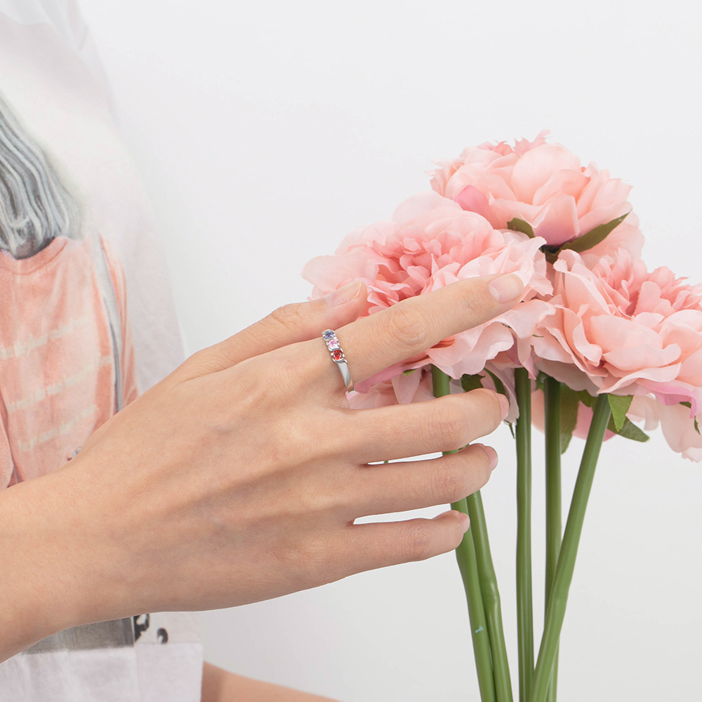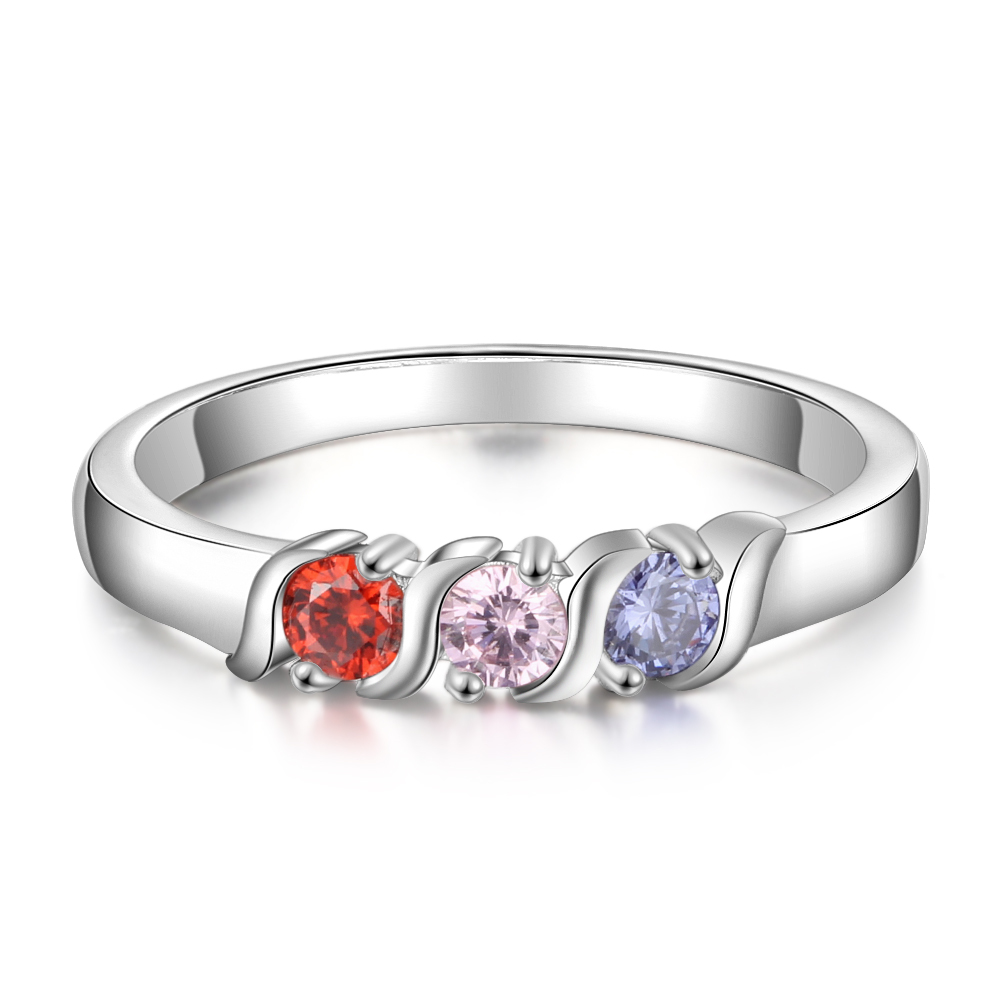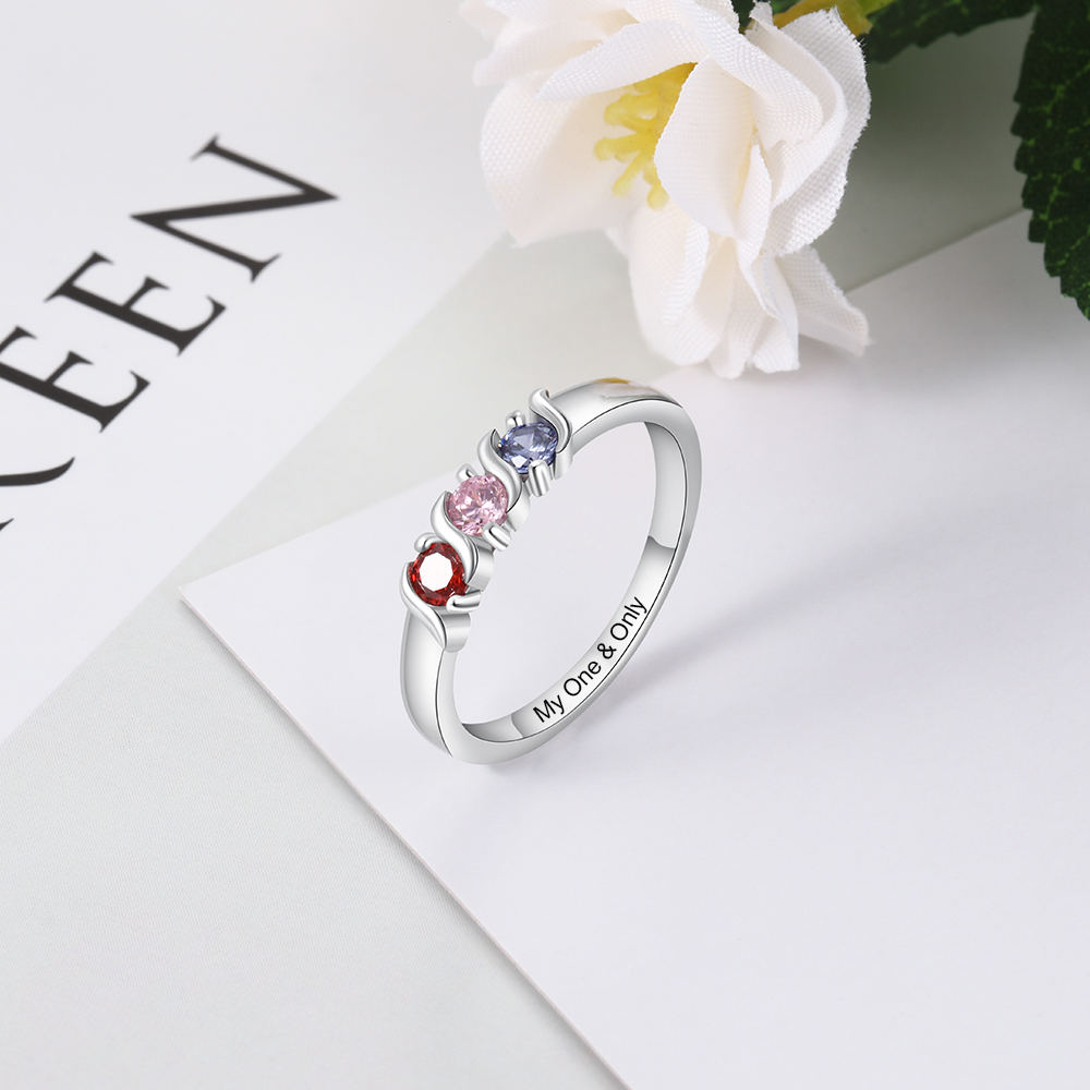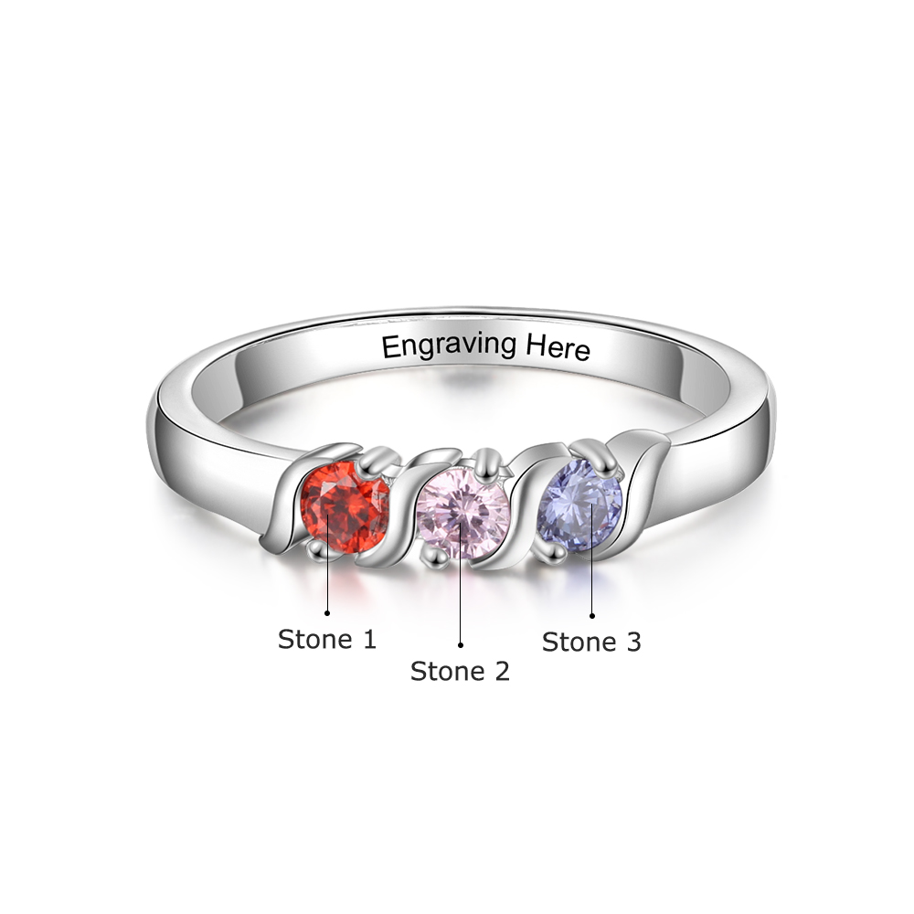 Anillo con nombre personalizado con 3 piedras de nacimiento
