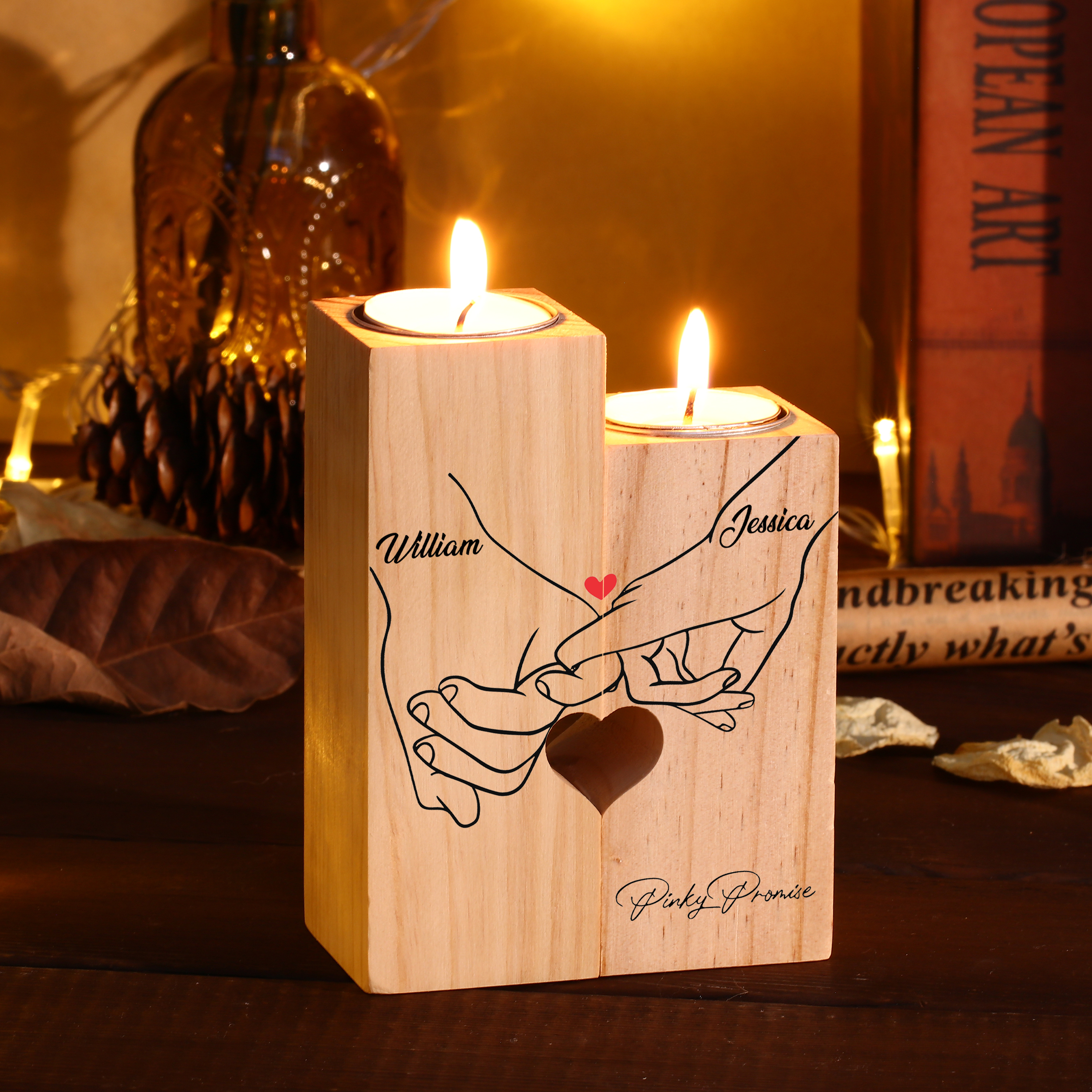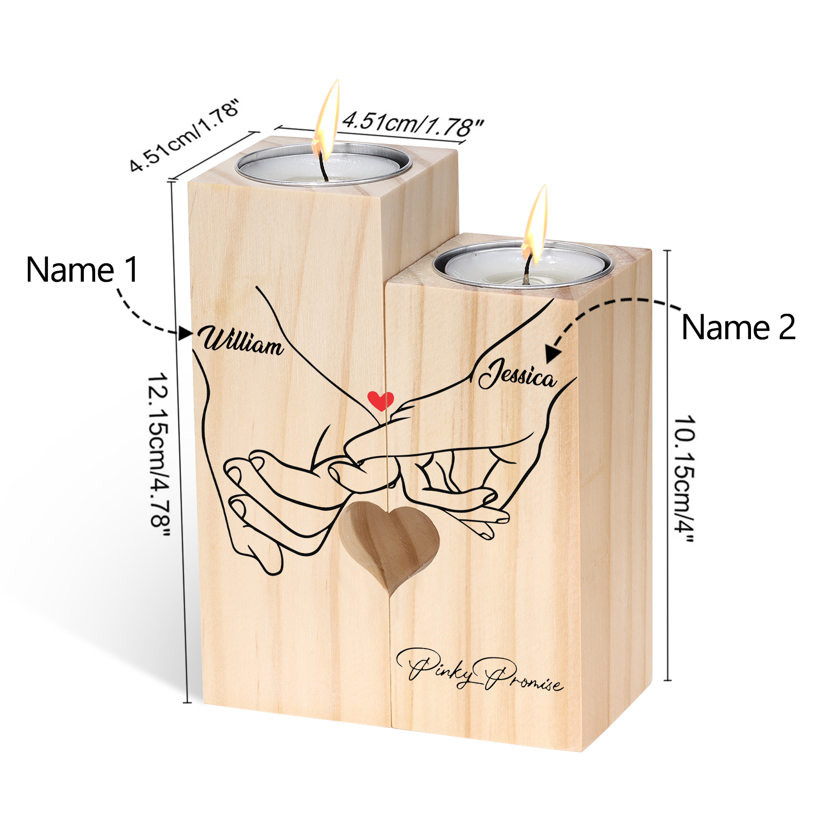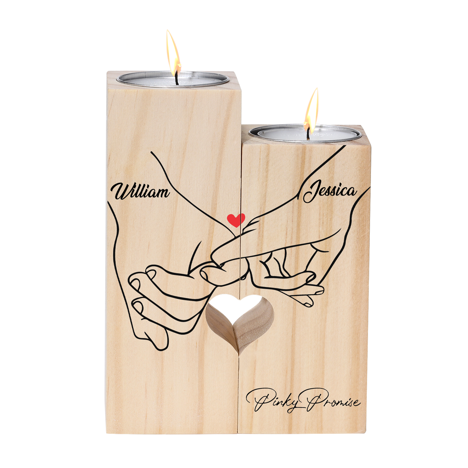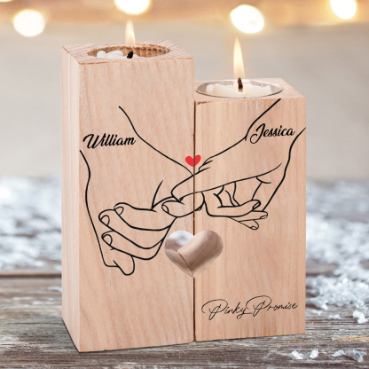 Candelero de madera mano a mano 2 nombres personalizados sin vela