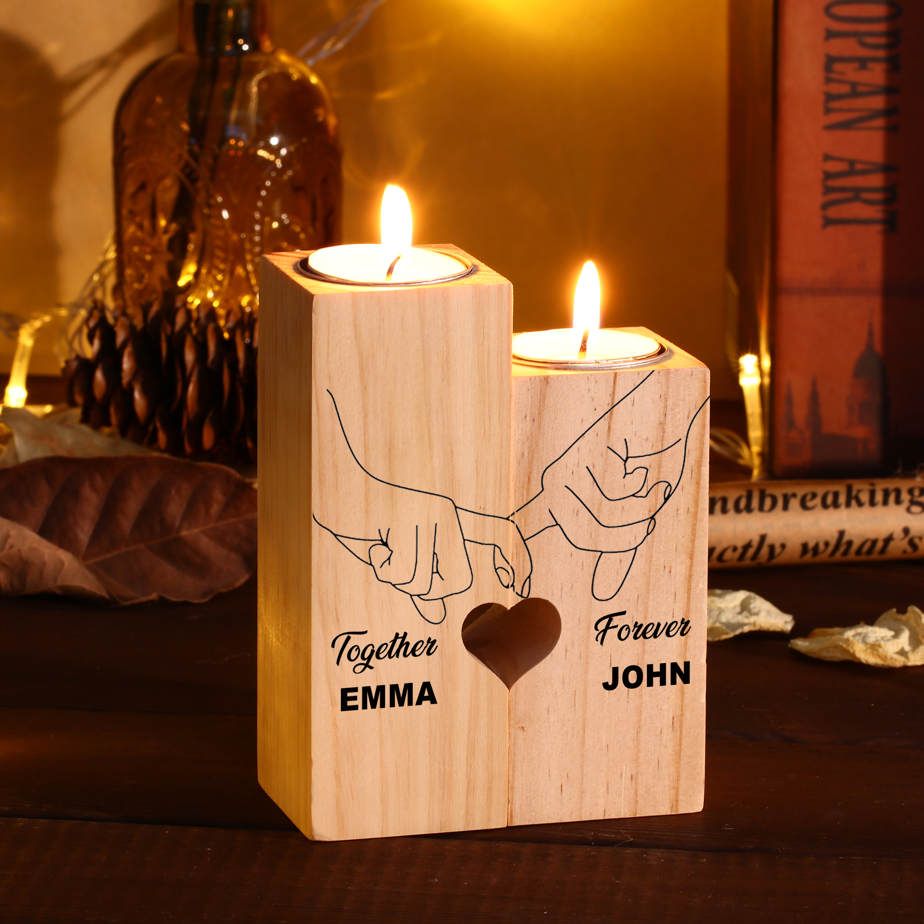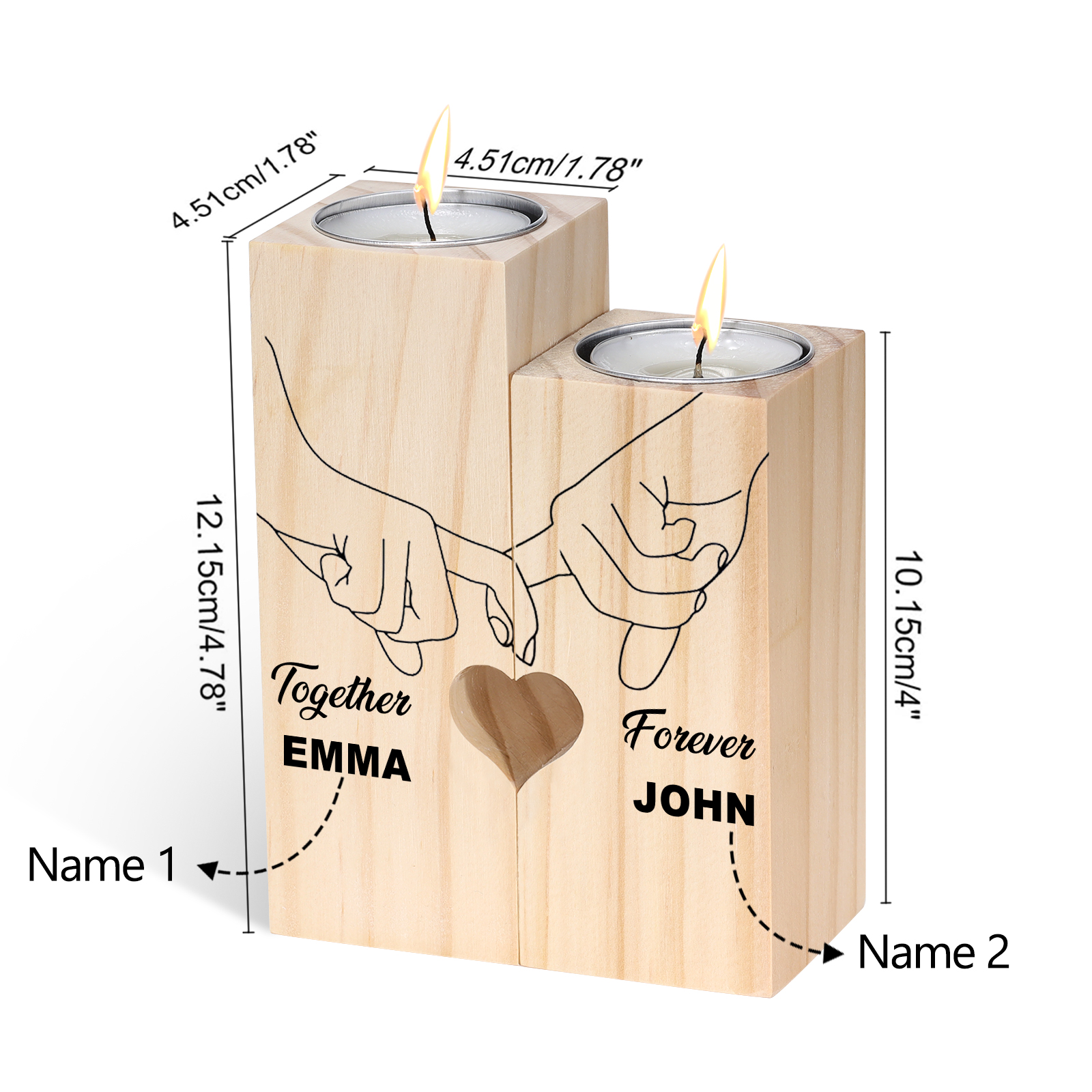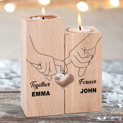 Candelero de madera mano a mano 2 nombres personalizados sin vela