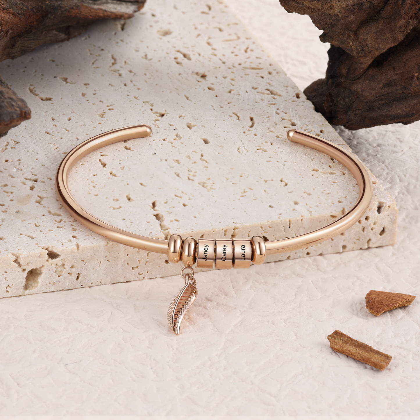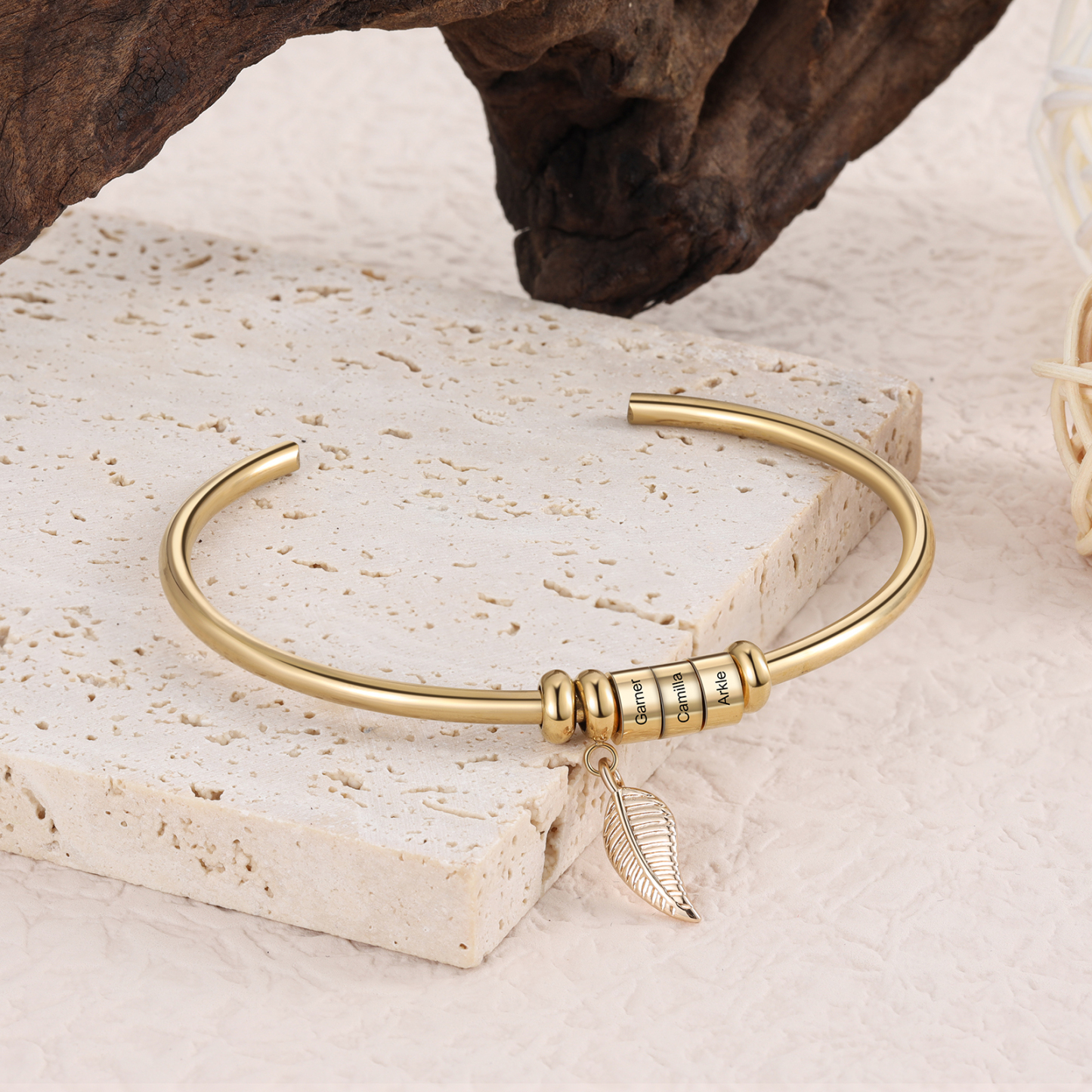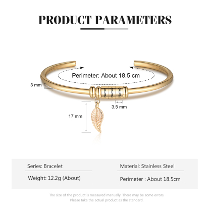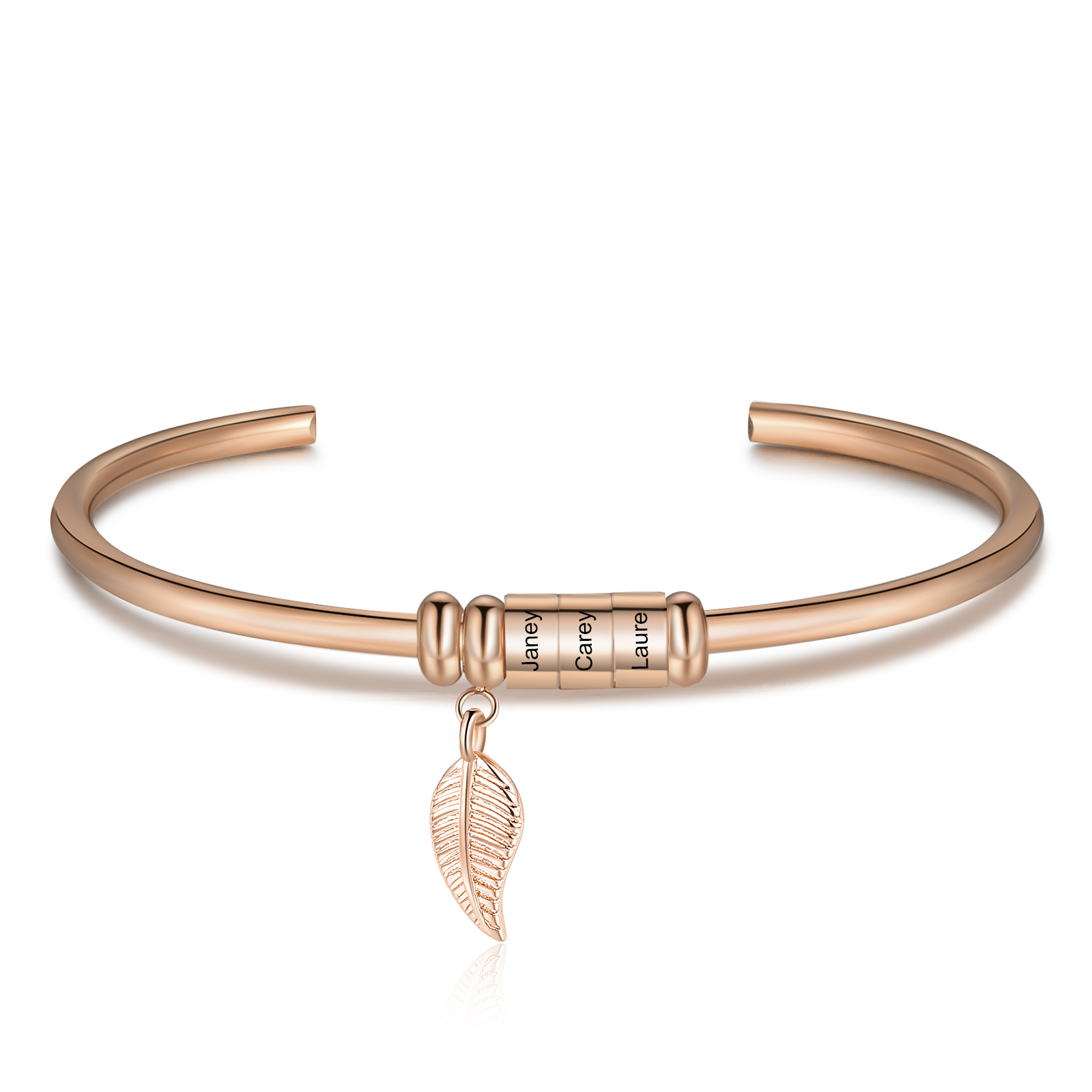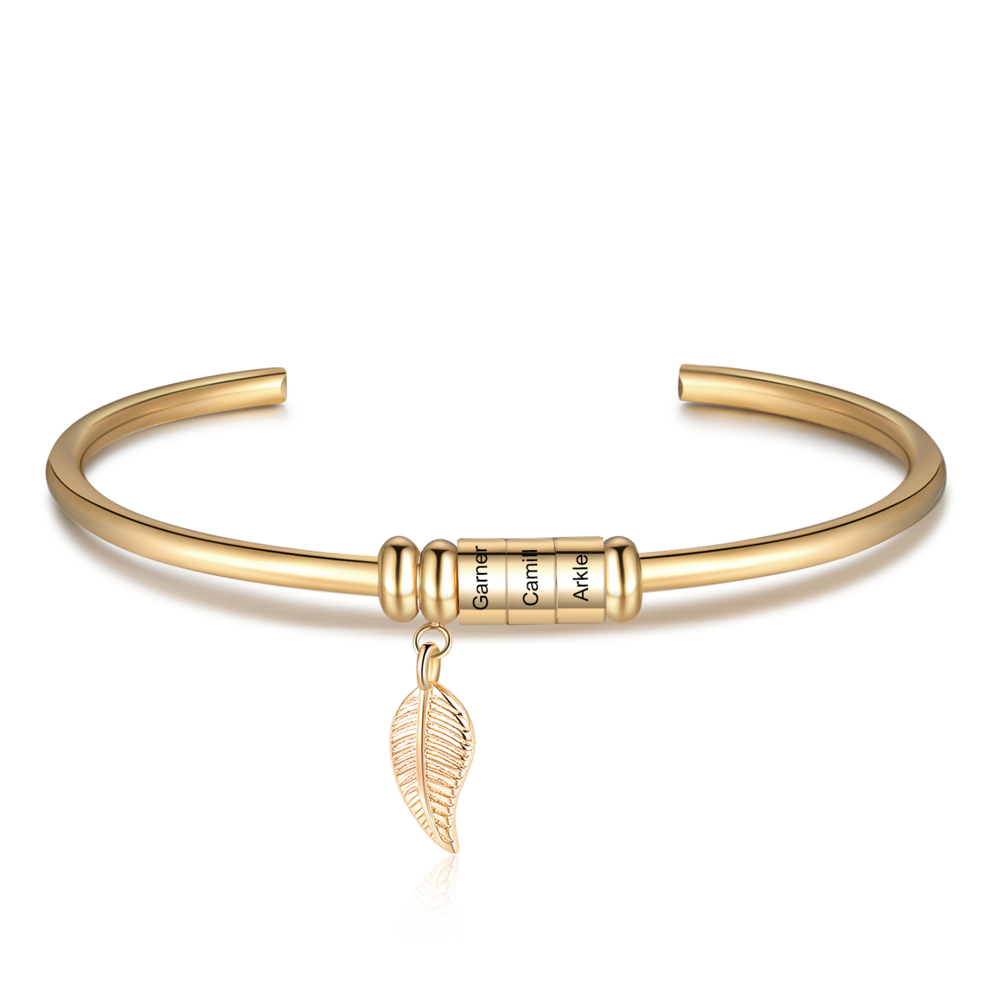 Pulsera para mujer con dije de hoja 3 nombres personalizados