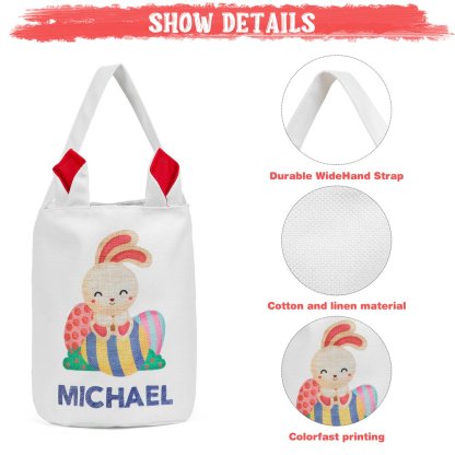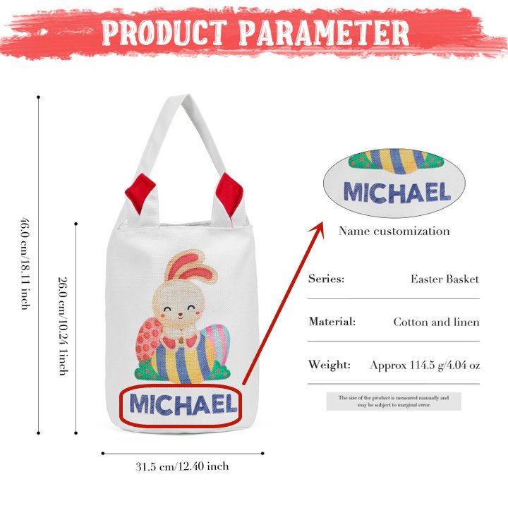 ¿Estás cansado de comprar canastas de Pascua que no duran? Nuestro bolso tote conejito es la combinación perfecta de ternura y resistencia. Está diseñado para durar con detalles clásicos impresos con su personalización. ¡Tus pequeños conejitos serán los más lindos con sus canastas de Pascua personalizadas con orejas de conejo en la gran búsqueda de huevos!