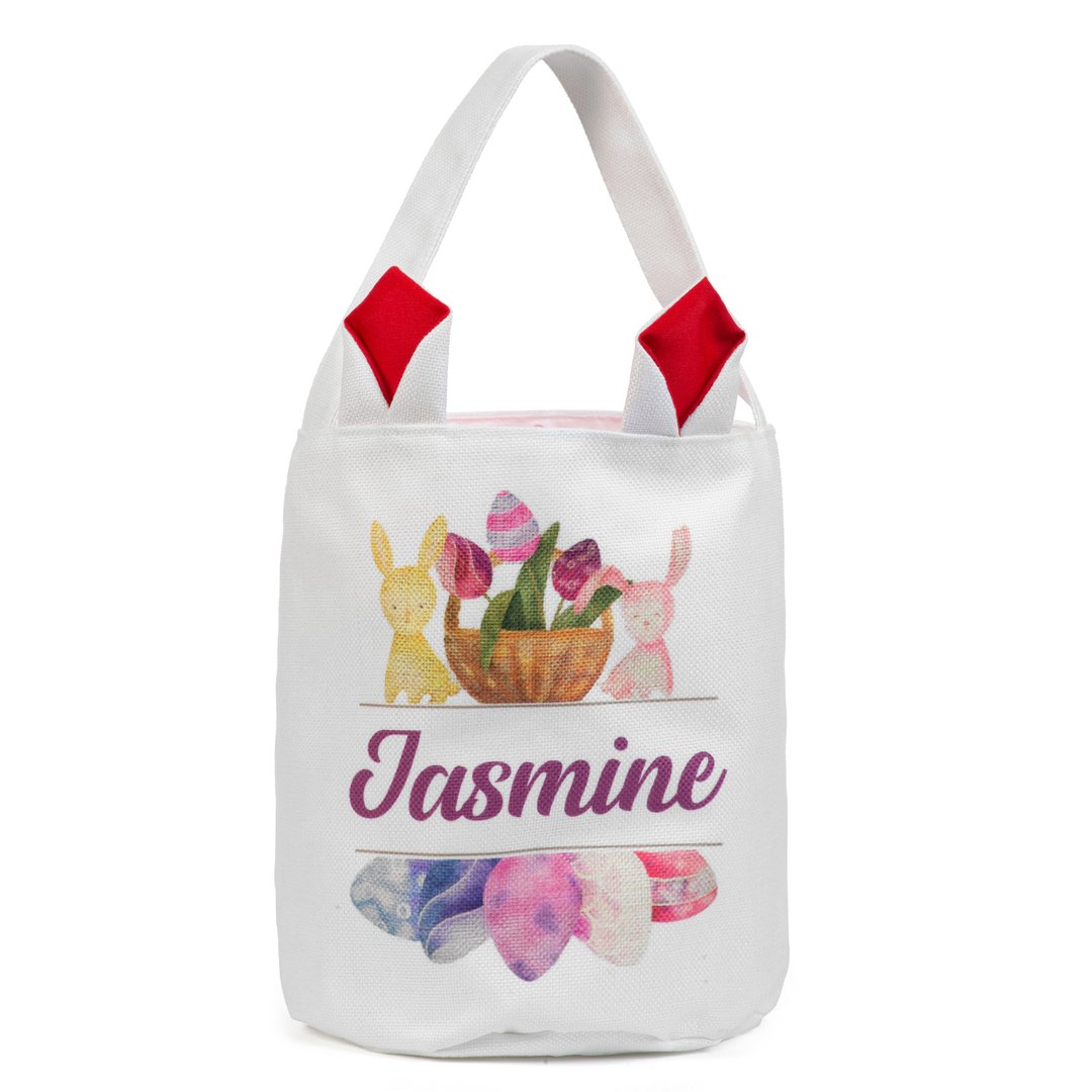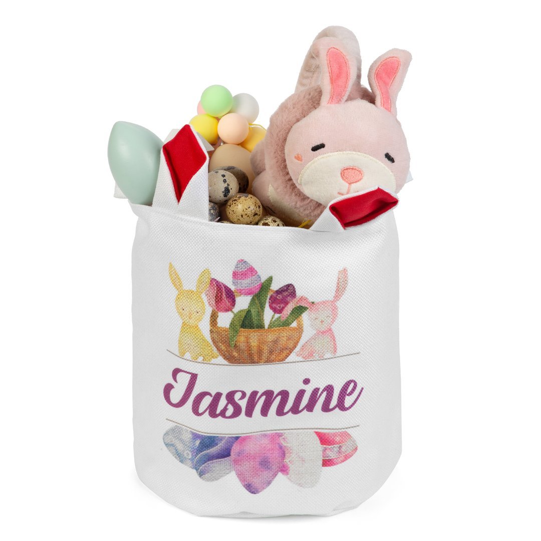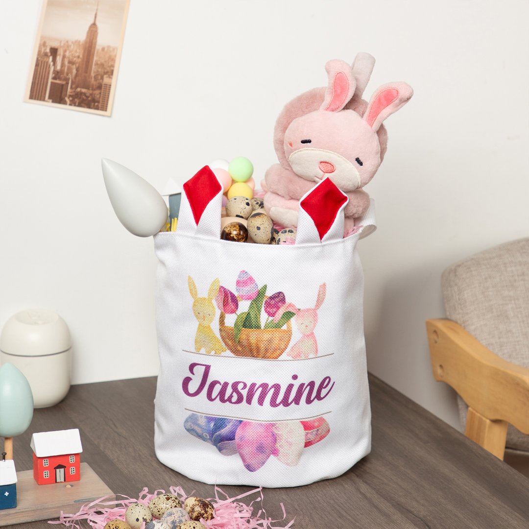 Canasta de Pascua Conejitos de acuarela con nombre personalizado con orejas de conejo