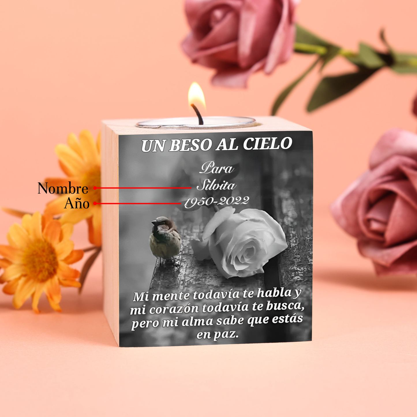 Candelero en memoria de ser querido de madera nombre y año personalizados sin vela