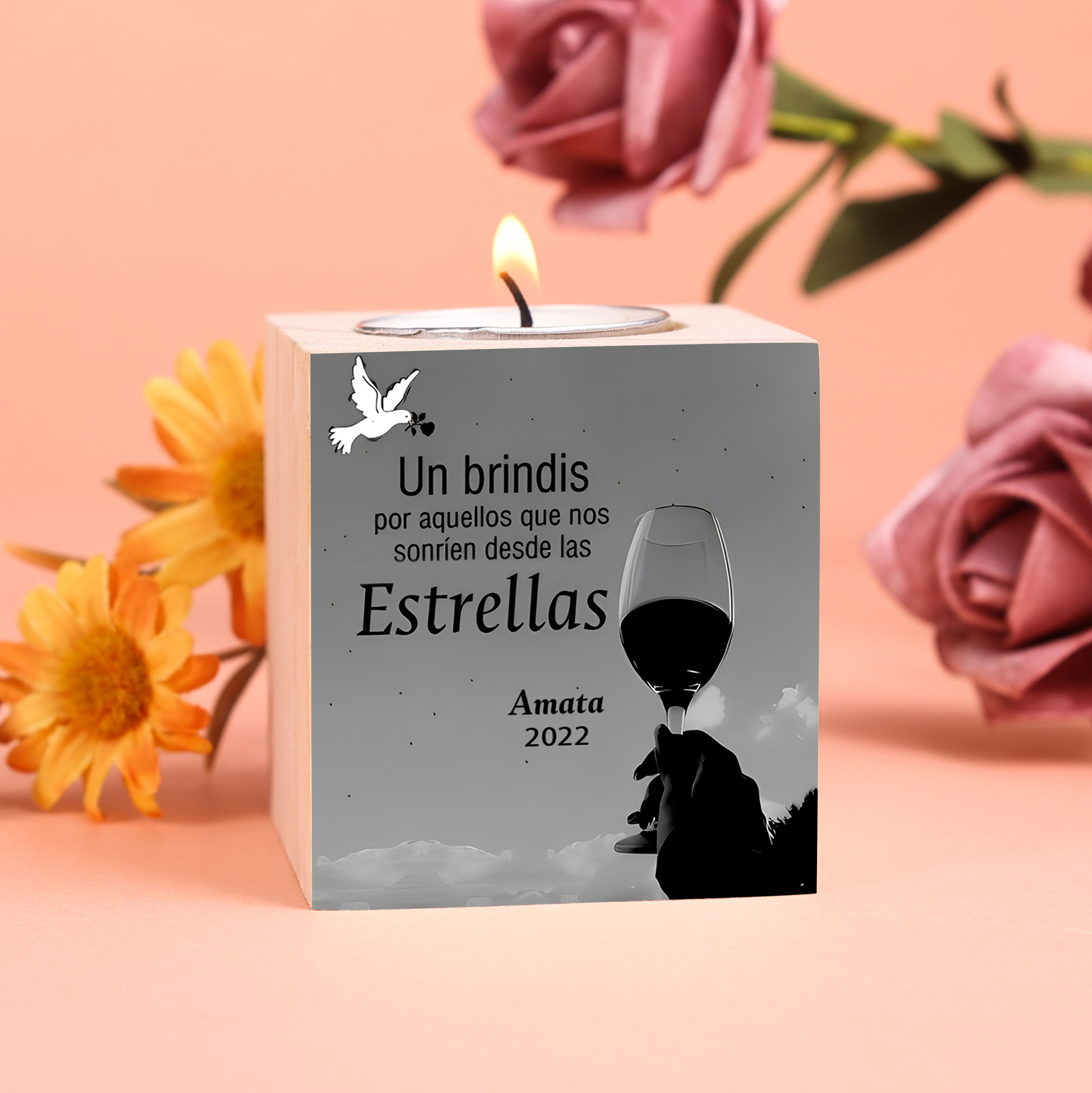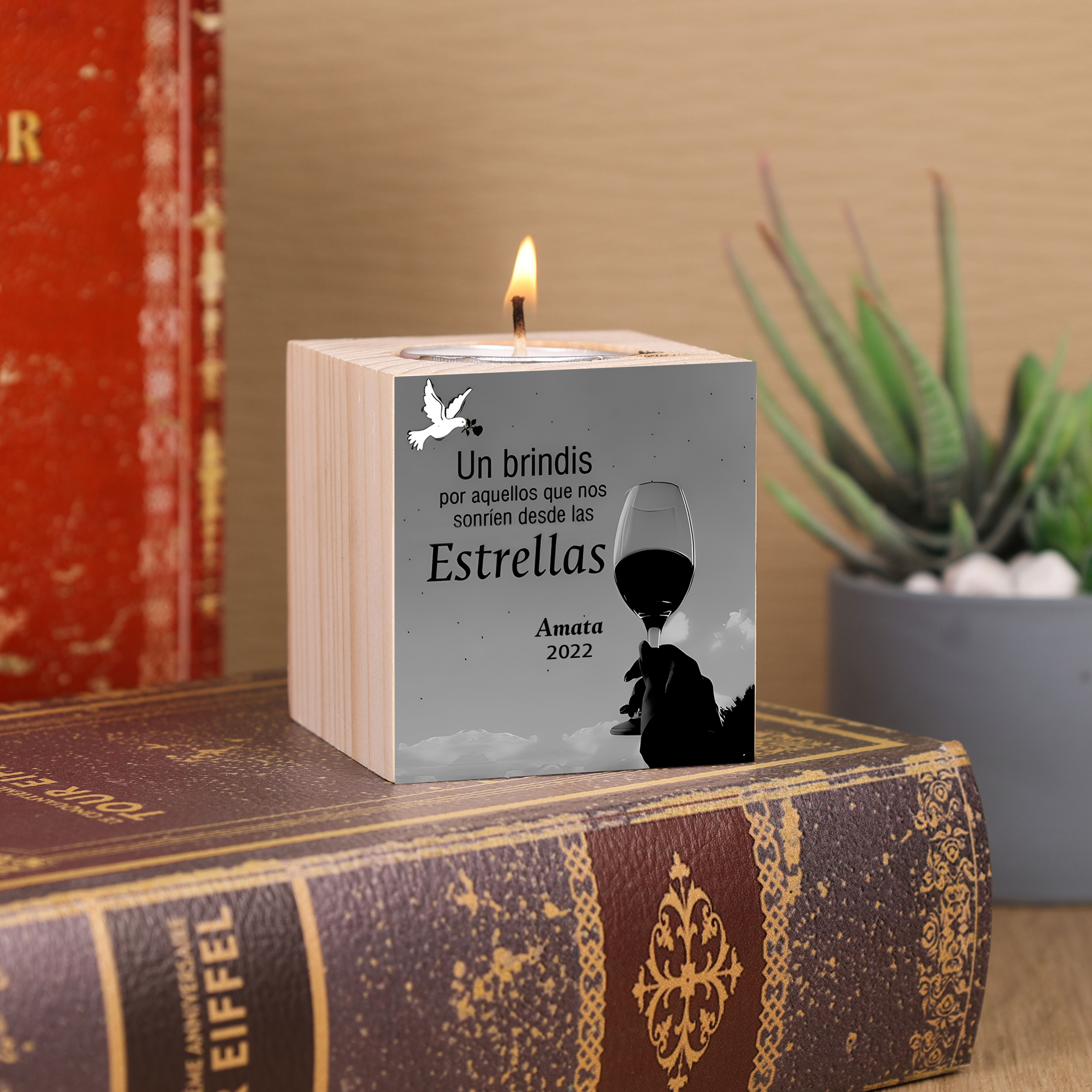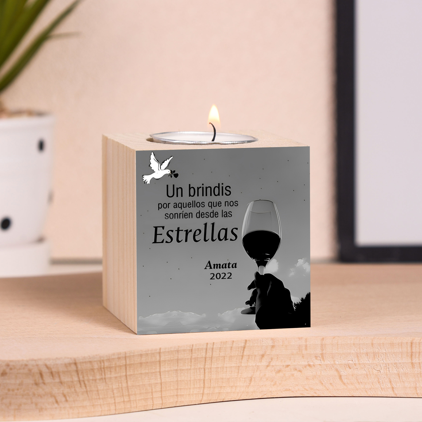 Candelero en memoria de ser querido de madera nombre y año personalizados sin vela
