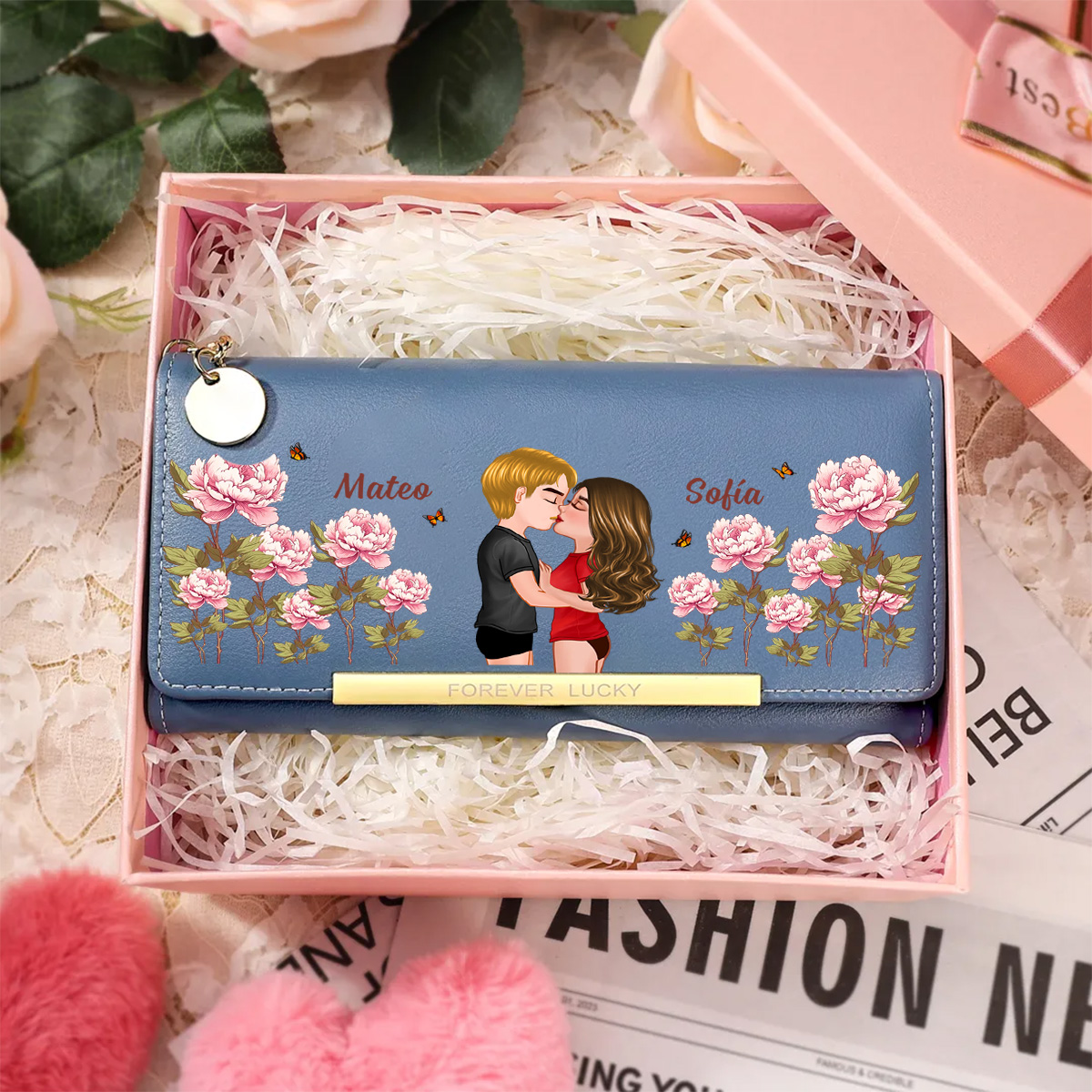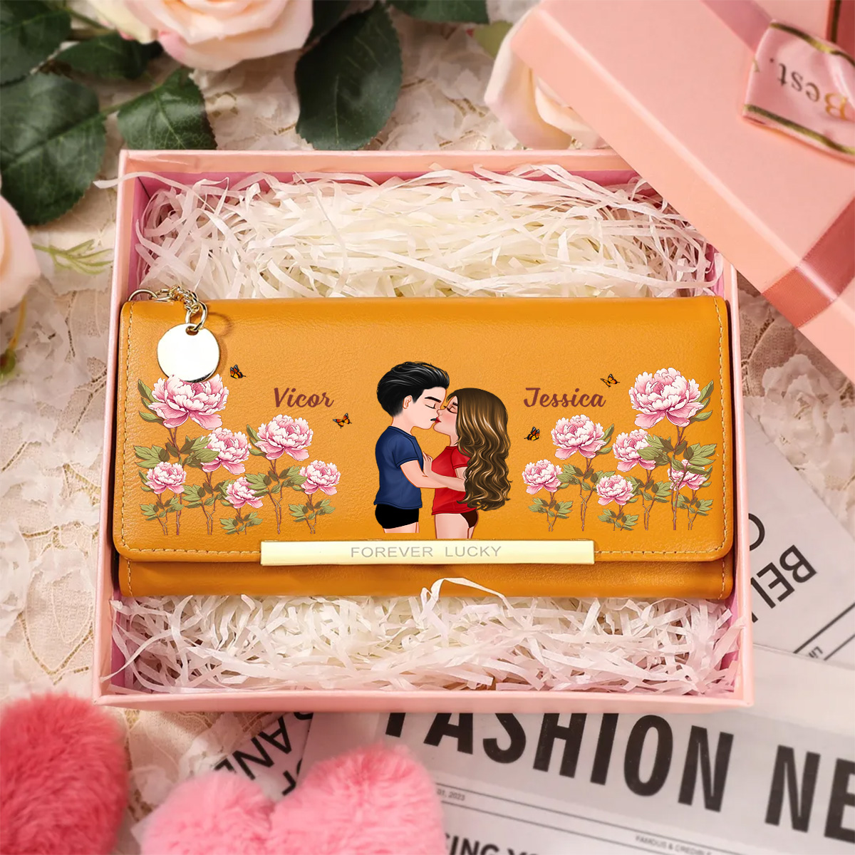 Cartera de mujer de piel sintética con estampado floral personalizado para parejas