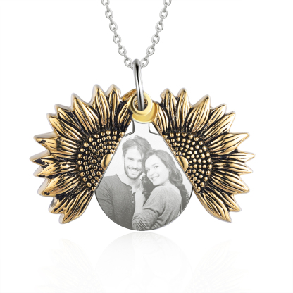 Collar para mujer abierto de girasol personalizado con foto y texto