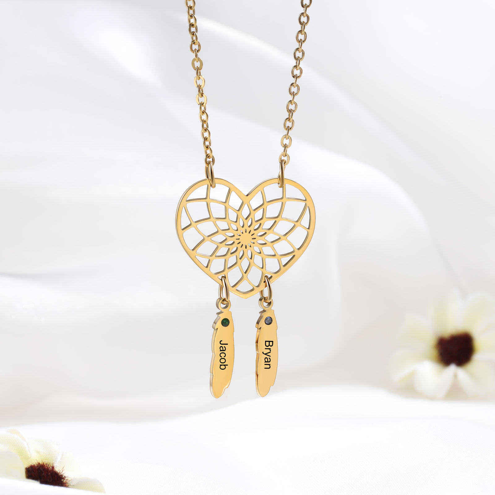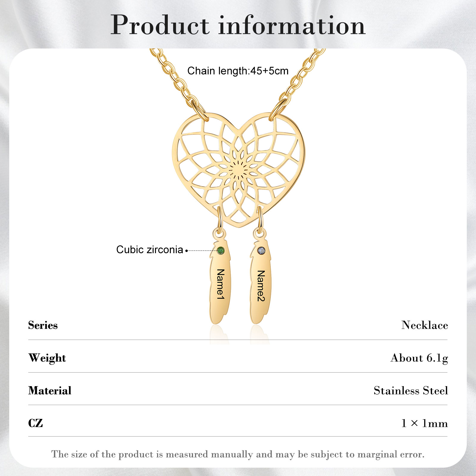 Collar para Mujer Atrapasueños 1 Nombre Personalizado con 1 Piedra de Nacimiento