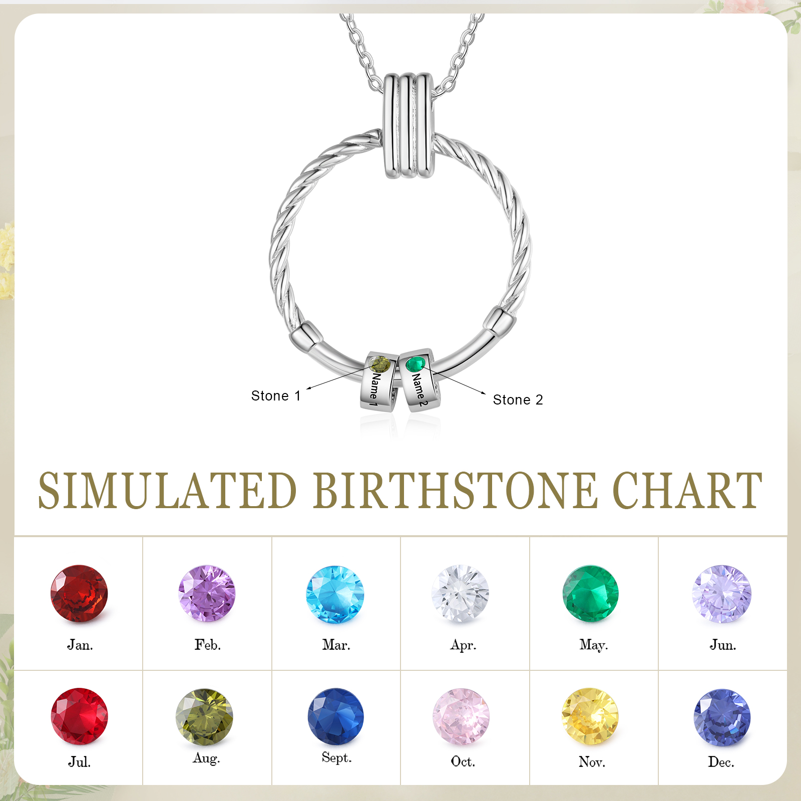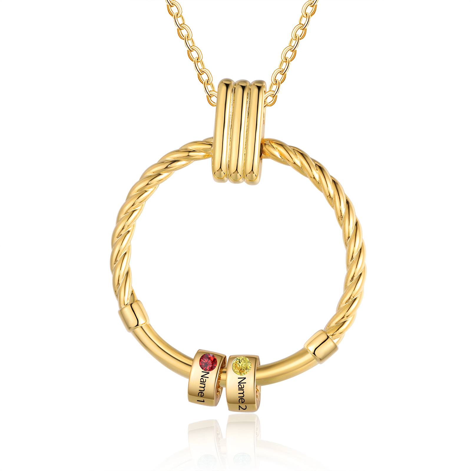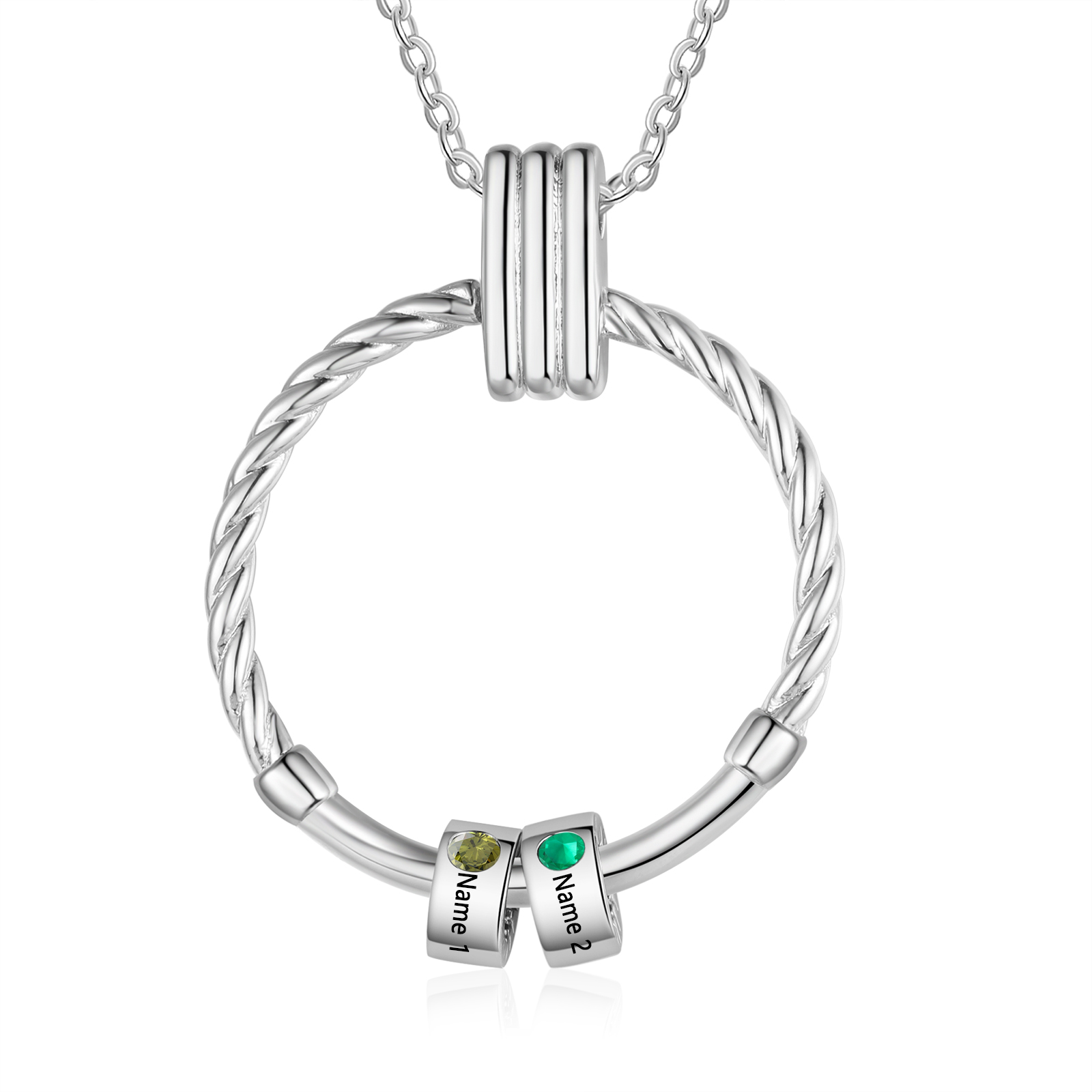 Collar para mujer con colgante con aros de 2 piedras de nacimiento y 2 nombres personalizados