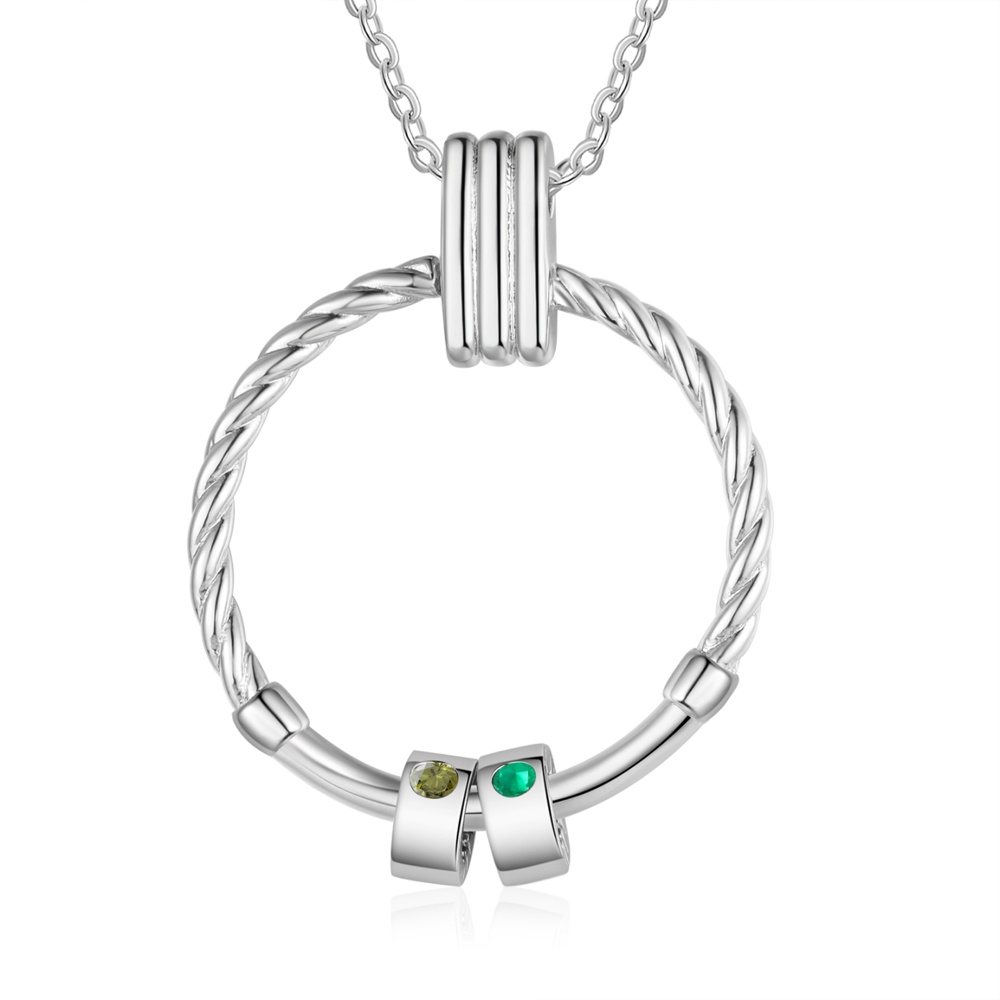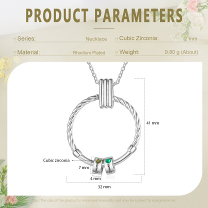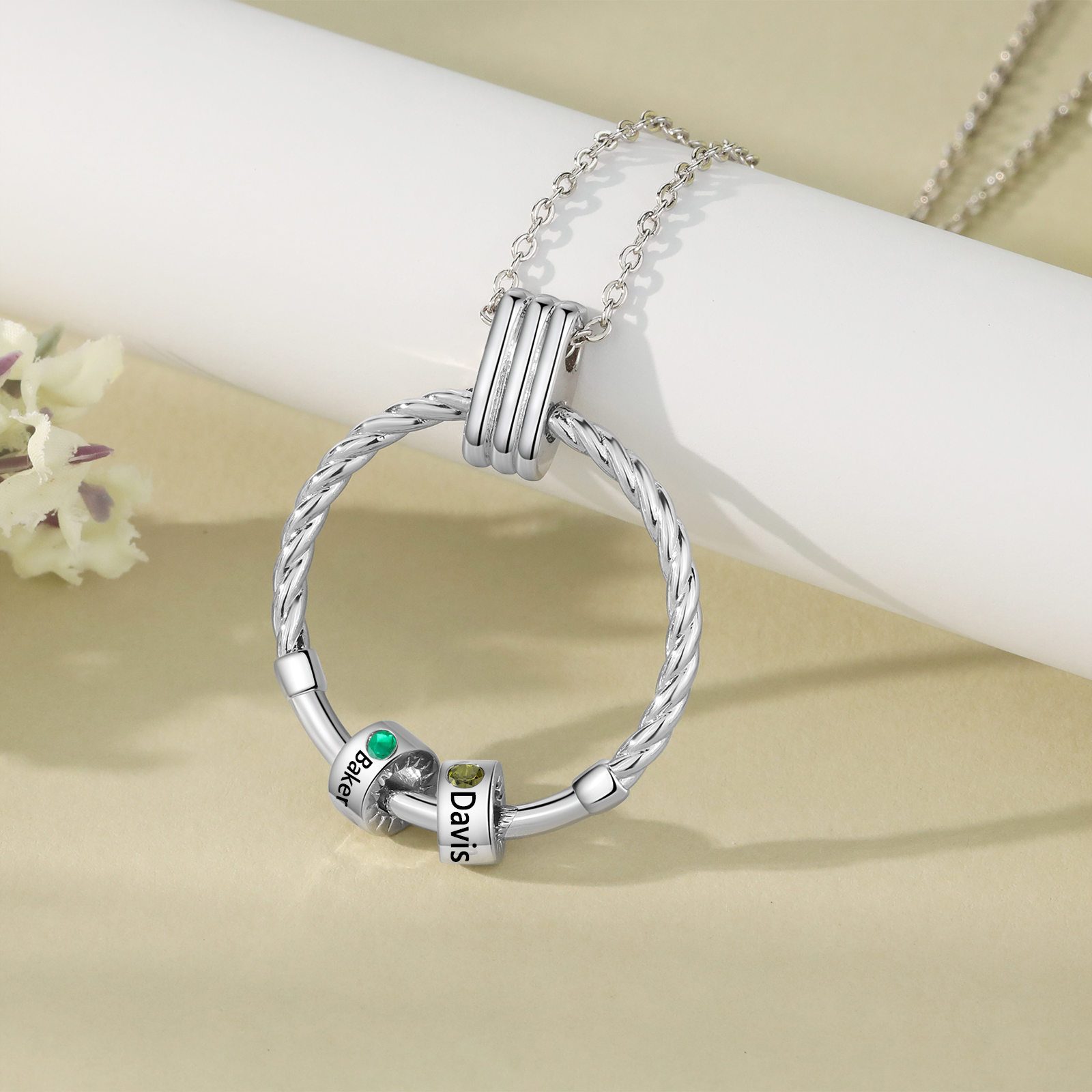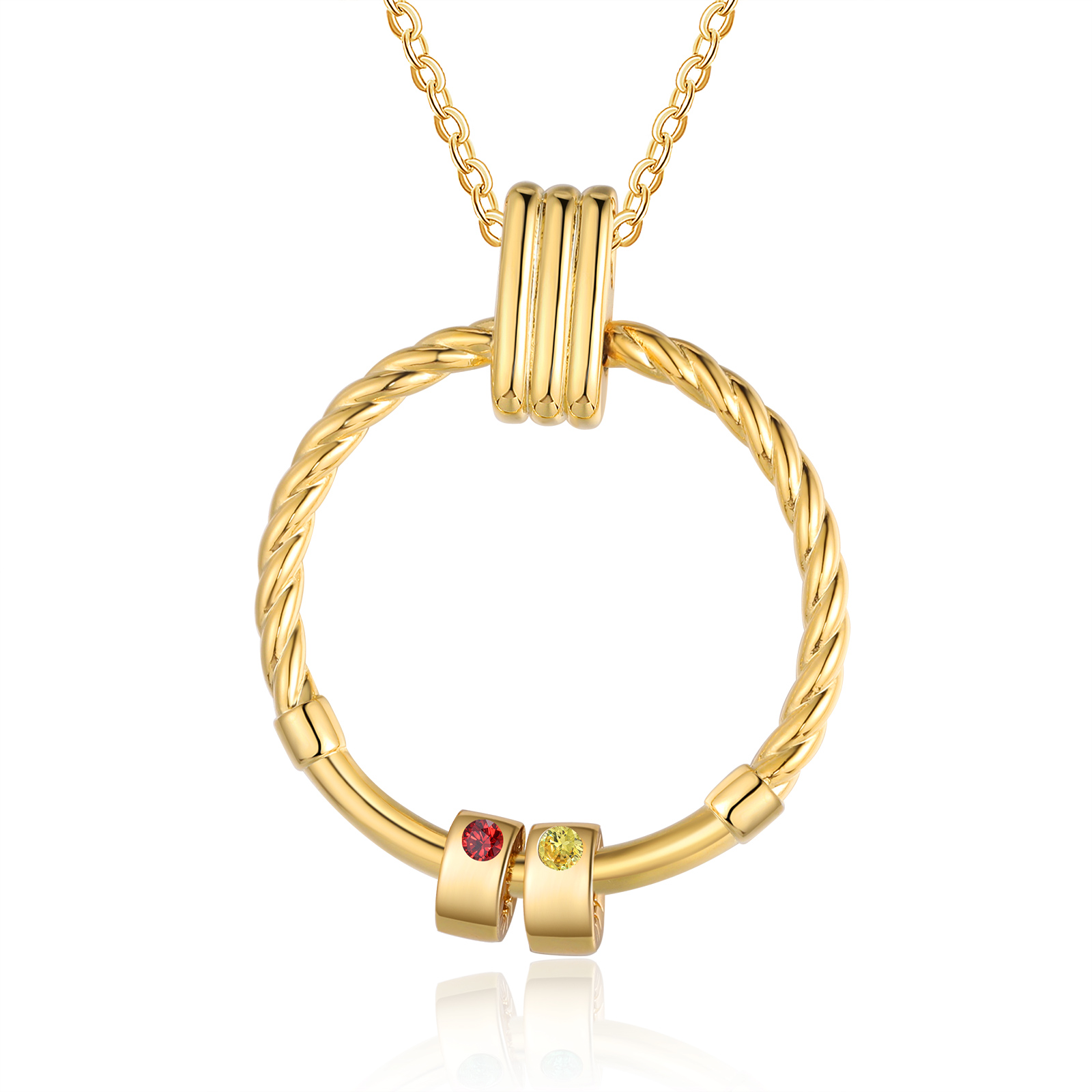 Collar para mujer con colgante con aros de 2 piedras de nacimiento y 2 nombres personalizados