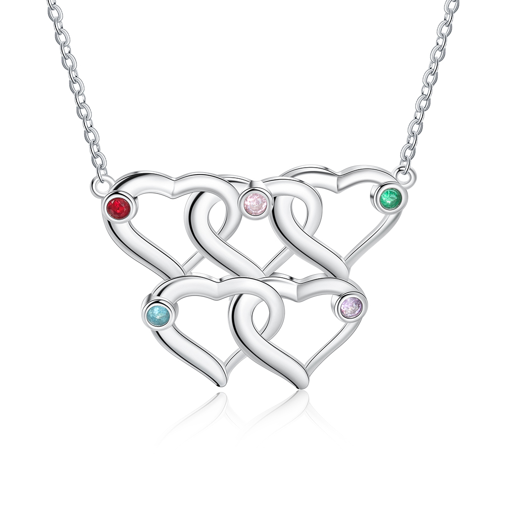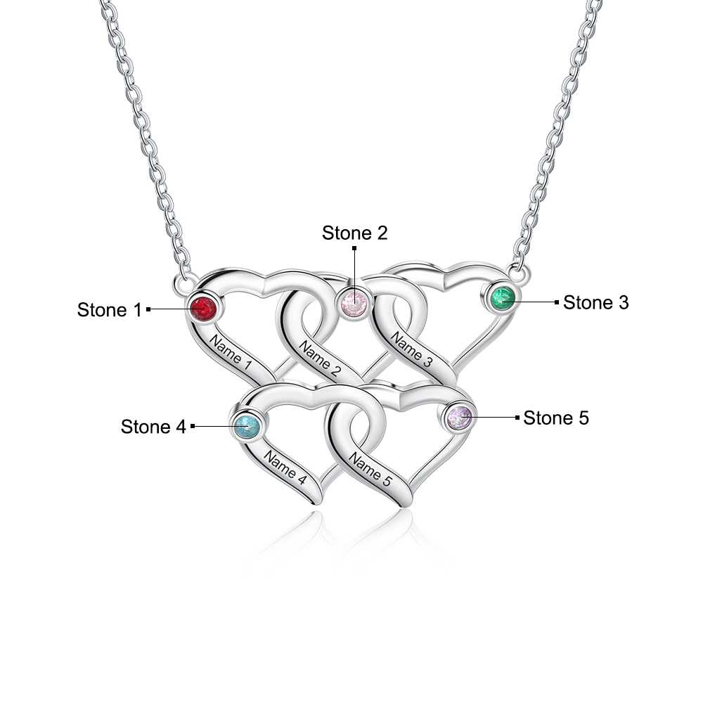 Collar para Mujer con Colgante de 5 Corazones 5 Nombres Personalizados con 5 Piedras de nacimiento