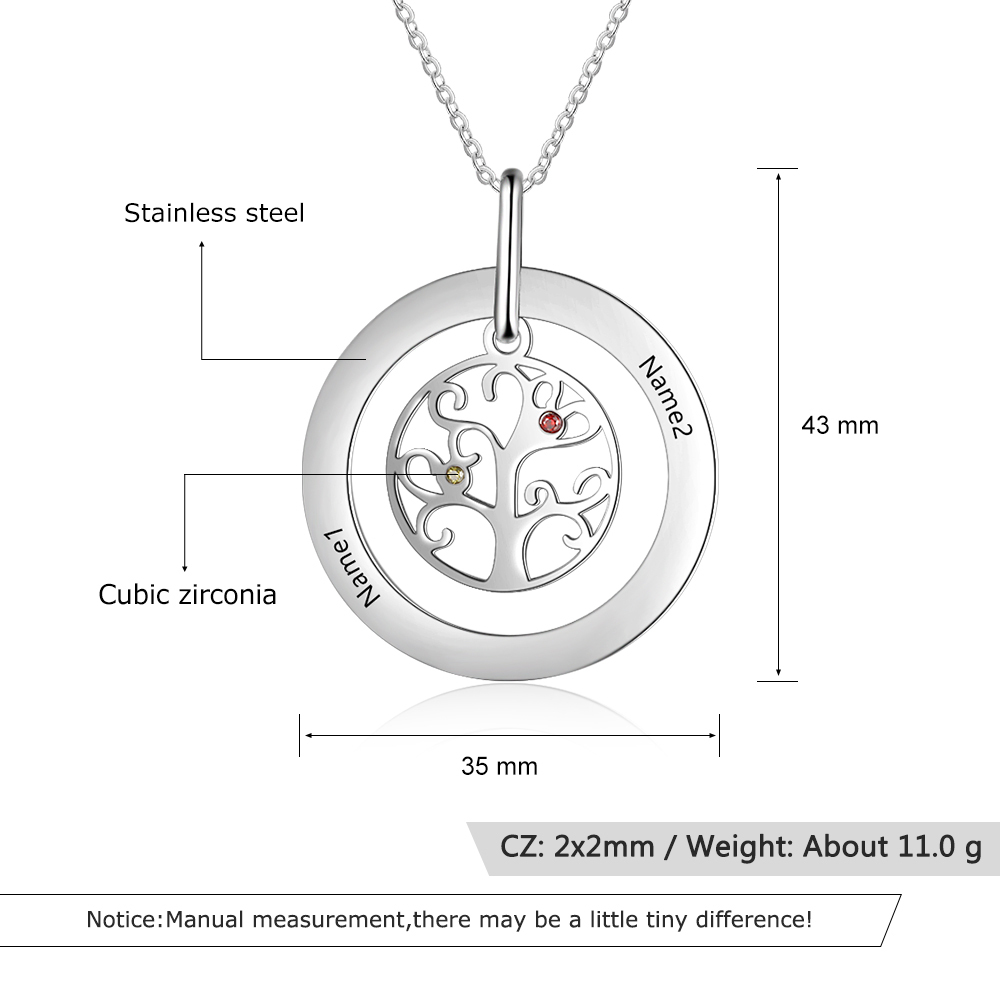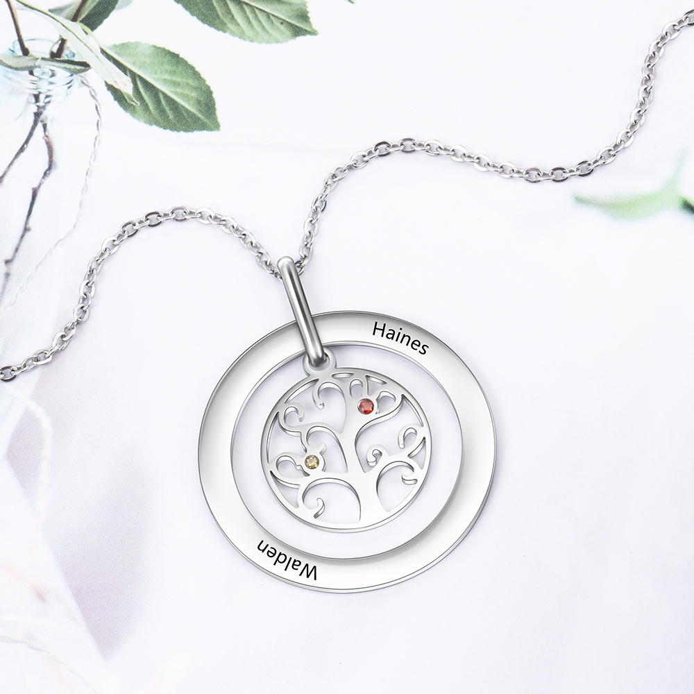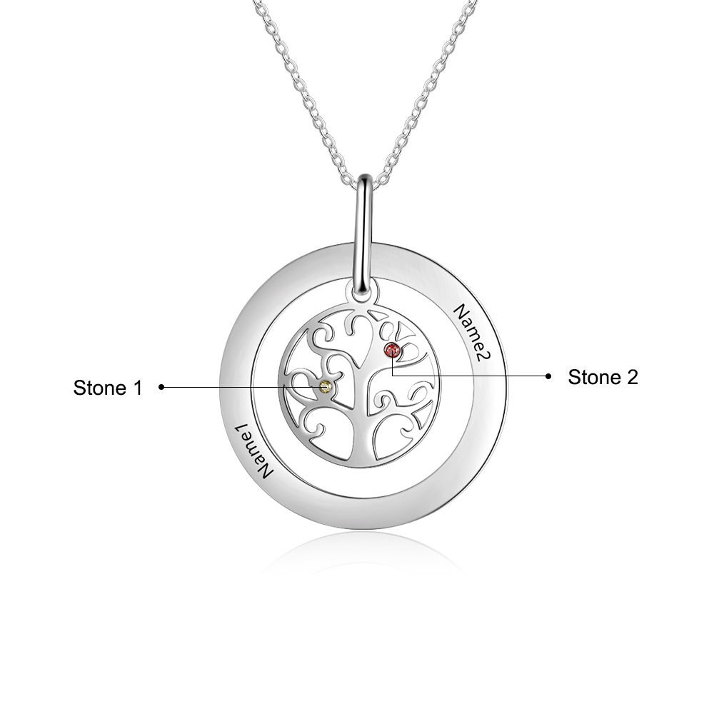 Collar para mujer con colgante de árbol de la vida árbol genealógico 2 nombres y 2 piedras de nacimiento personalizados