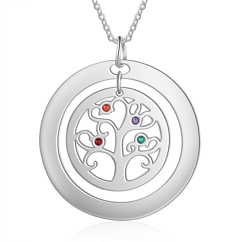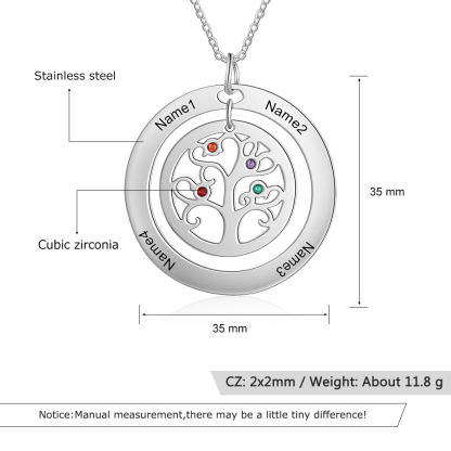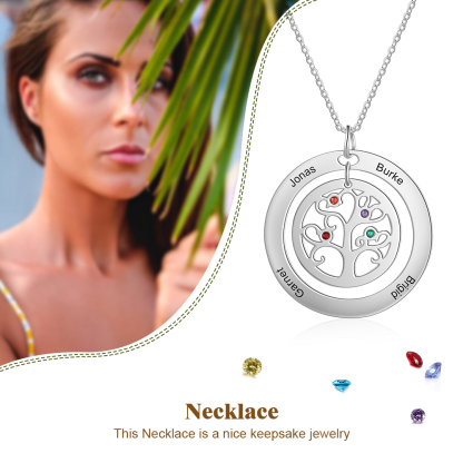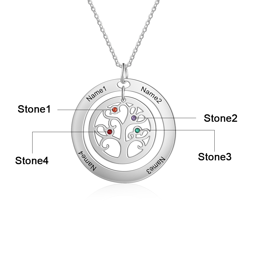 Collar para mujer con colgante de árbol de la vida árbol genealógico 4 nombres y 4 piedras de nacimiento personalizados