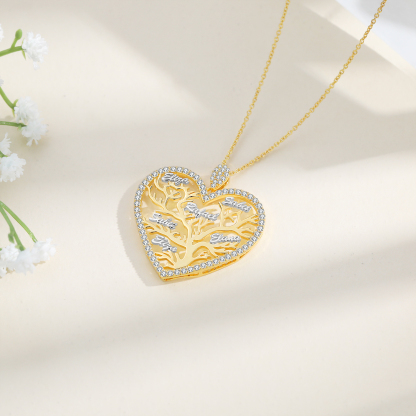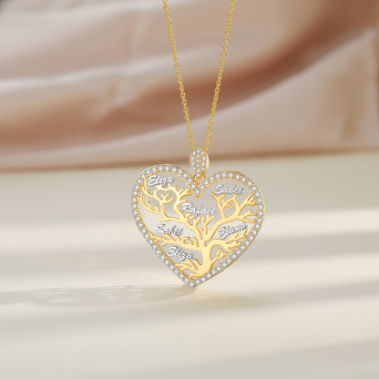Collar para mujer con colgante de árbol de la vida en forma de corazón Árbol Genealógico 6 nombres