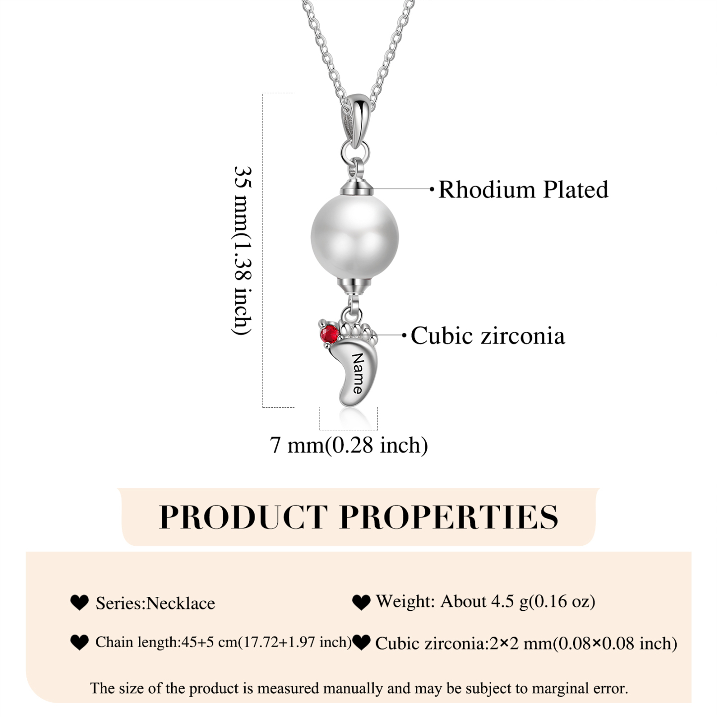 Collar para mujer con colgante de perlas con pies de bebé 1 nombre personalizado con 1 piedra de nacimiento