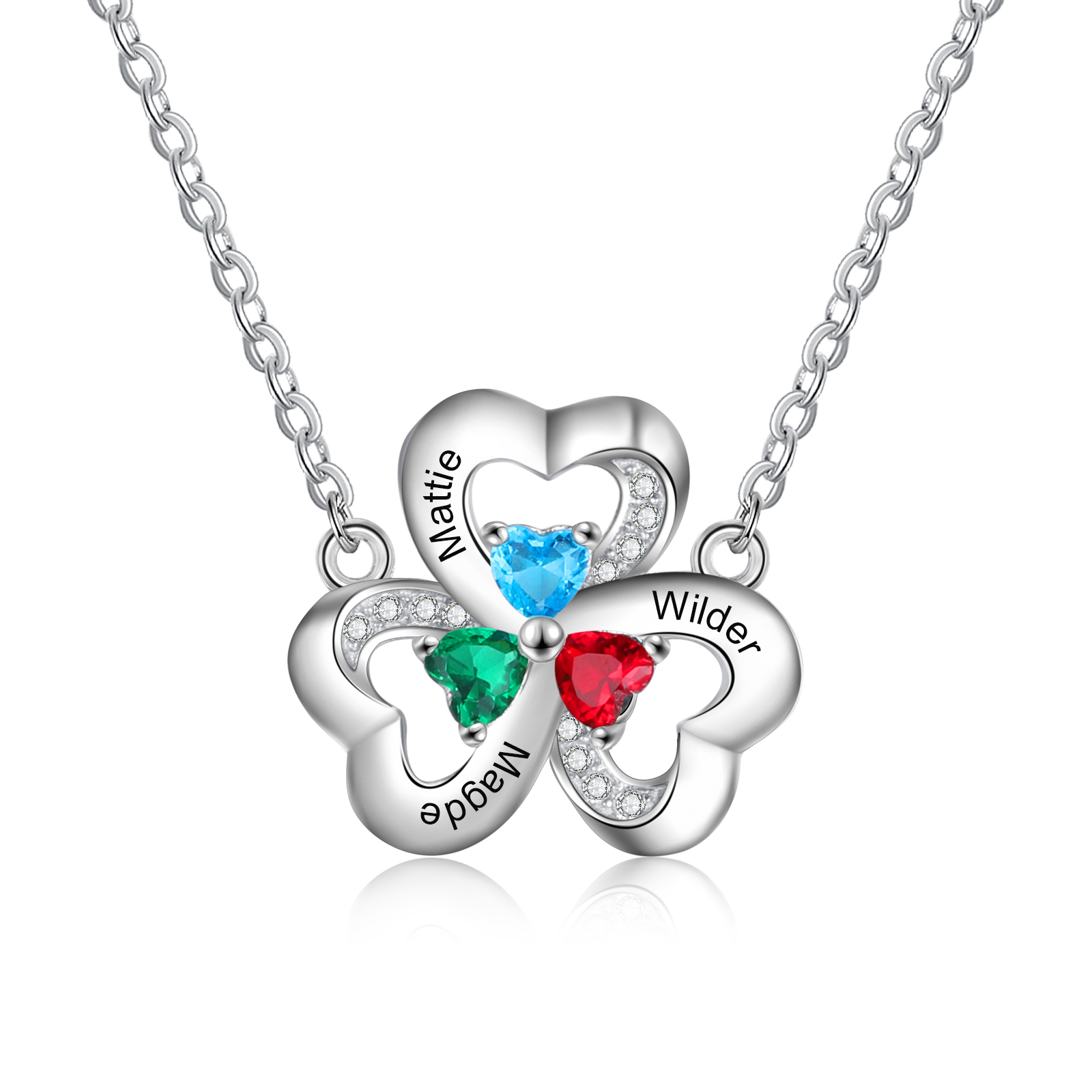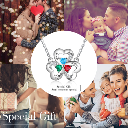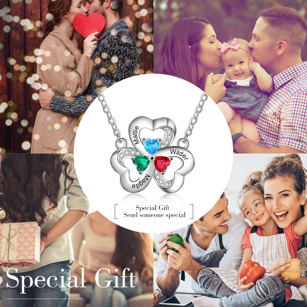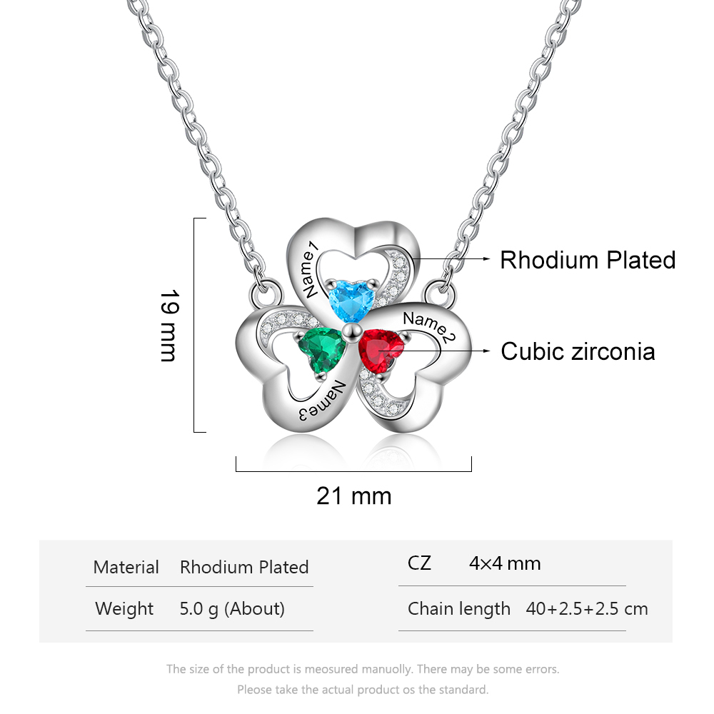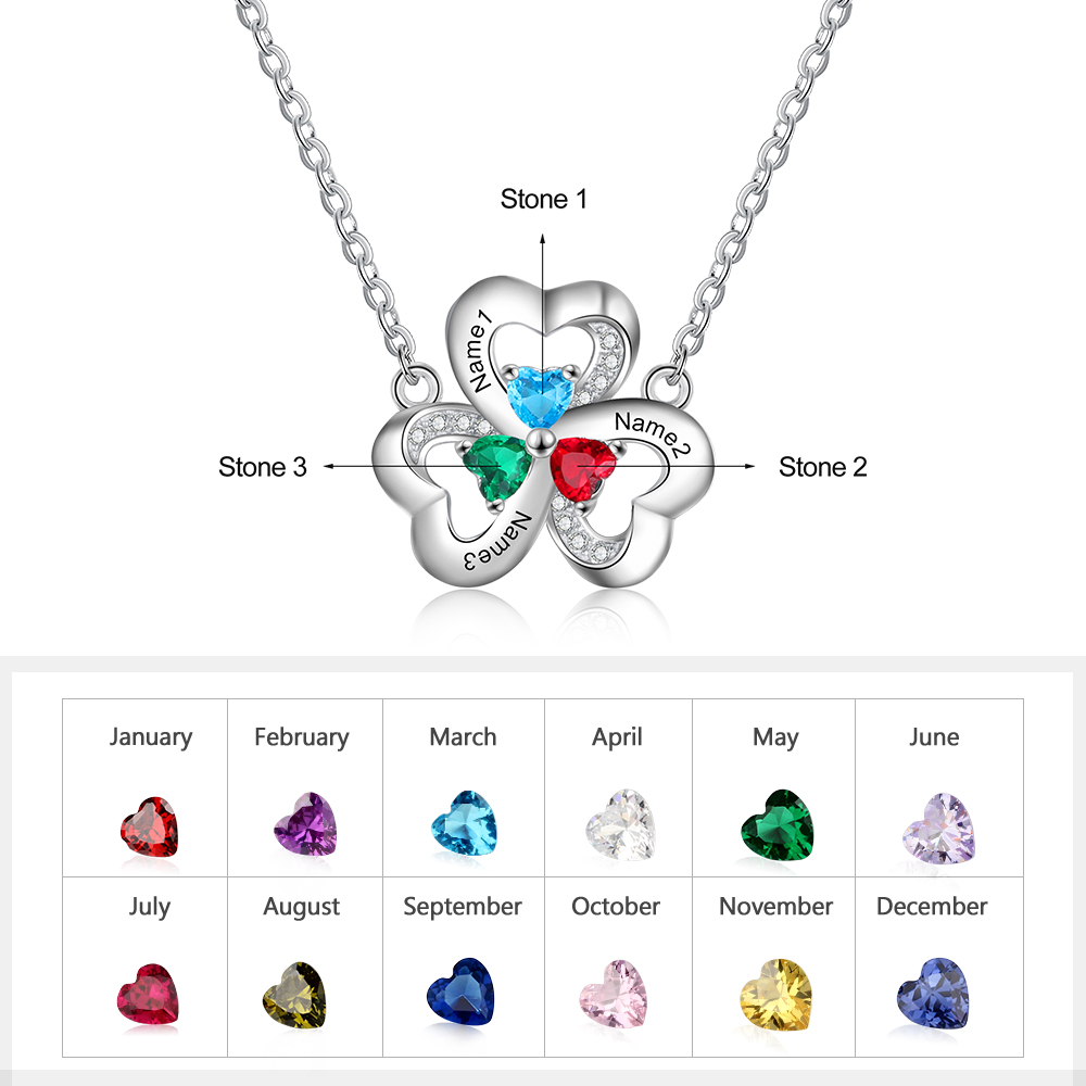 Collar para mujer con colgantes de corazón con 3 nombres personalizados y 3 piedras de nacimiento